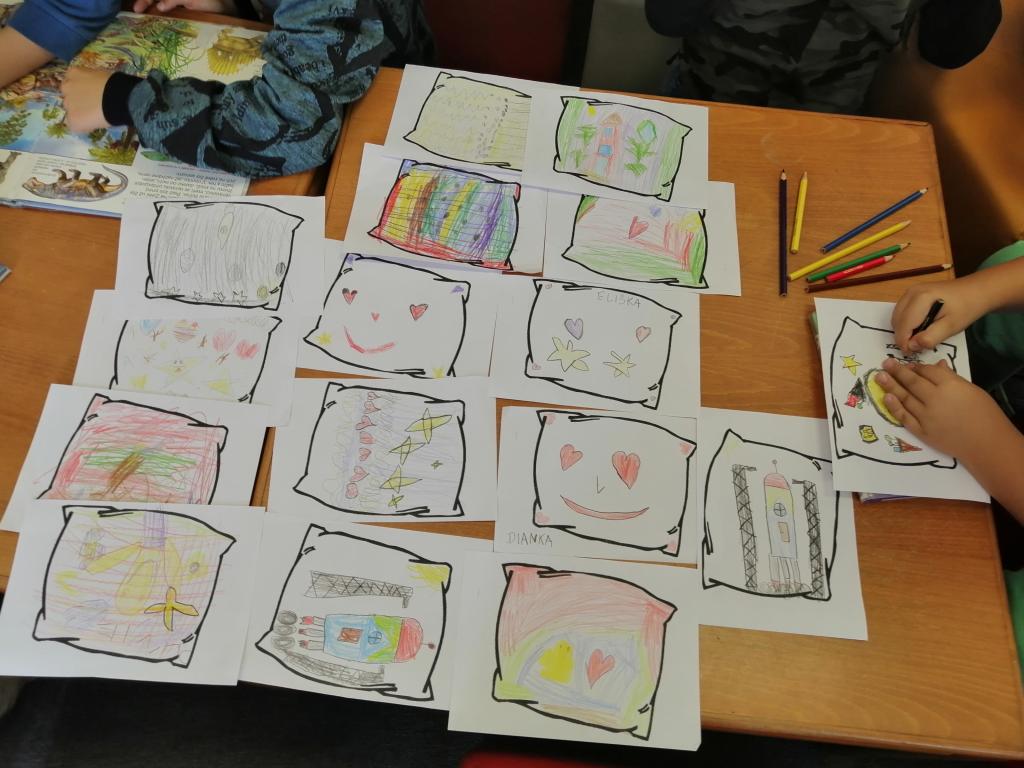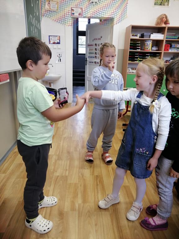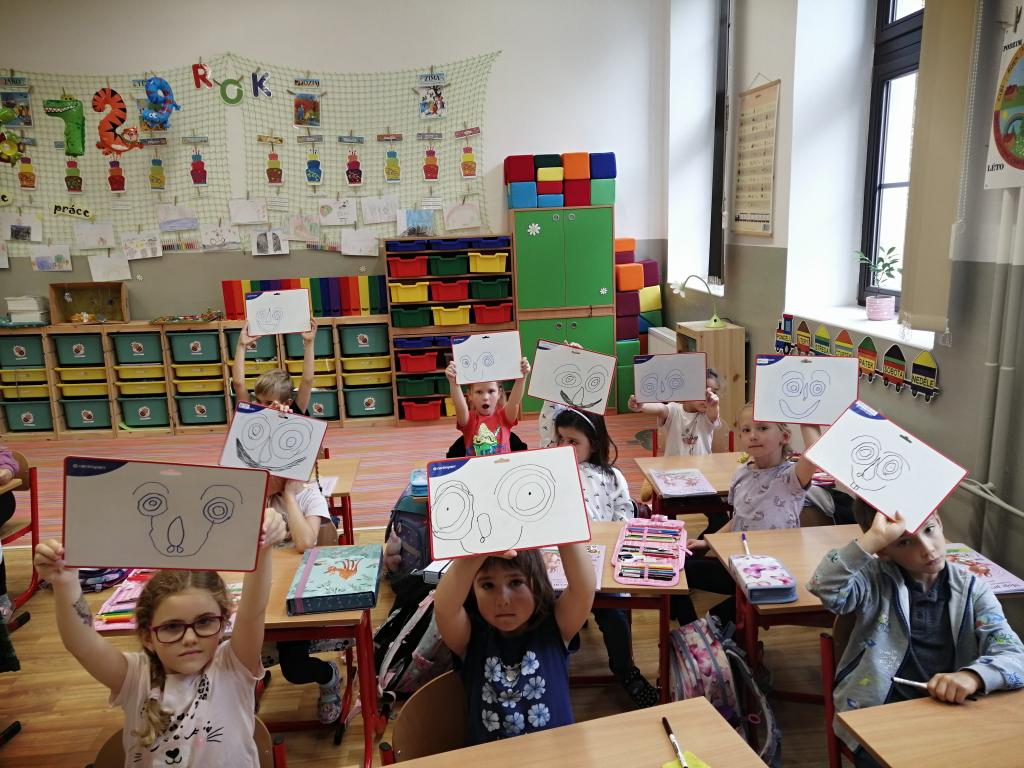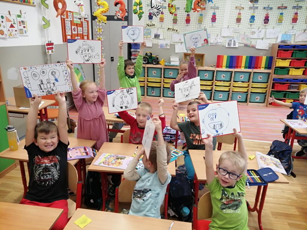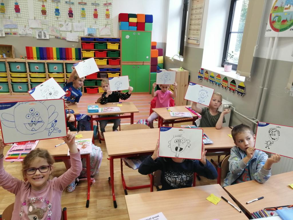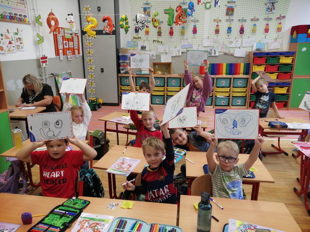 Snažíme se držet správně psací náčiní a umíme kreslit podle zadání. To nás moc baví a vždycky s napětím čekáme, co nám z toho vyjde:-)