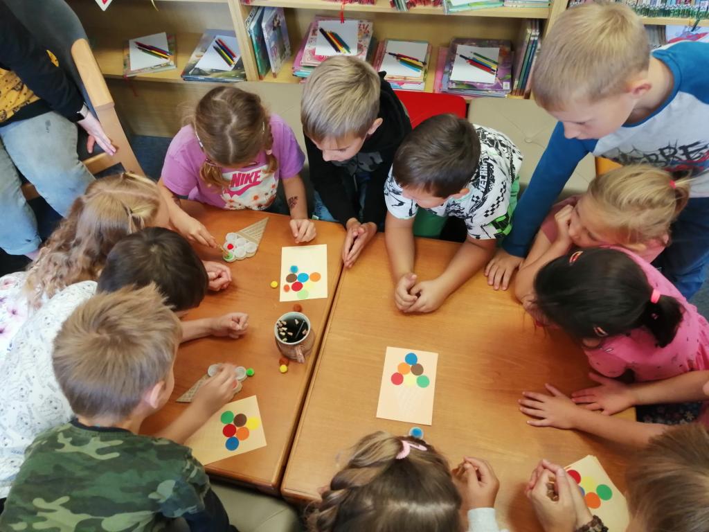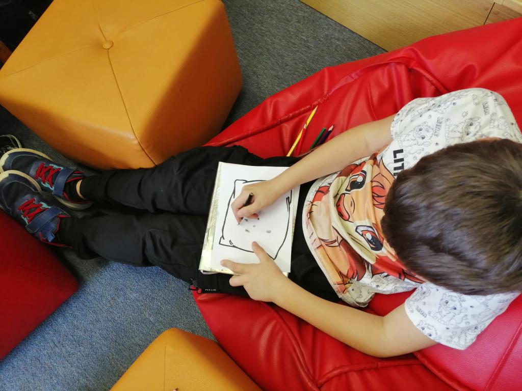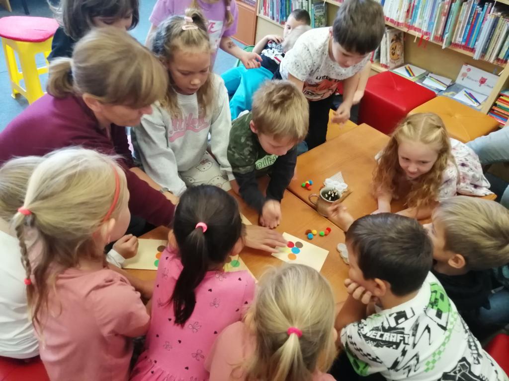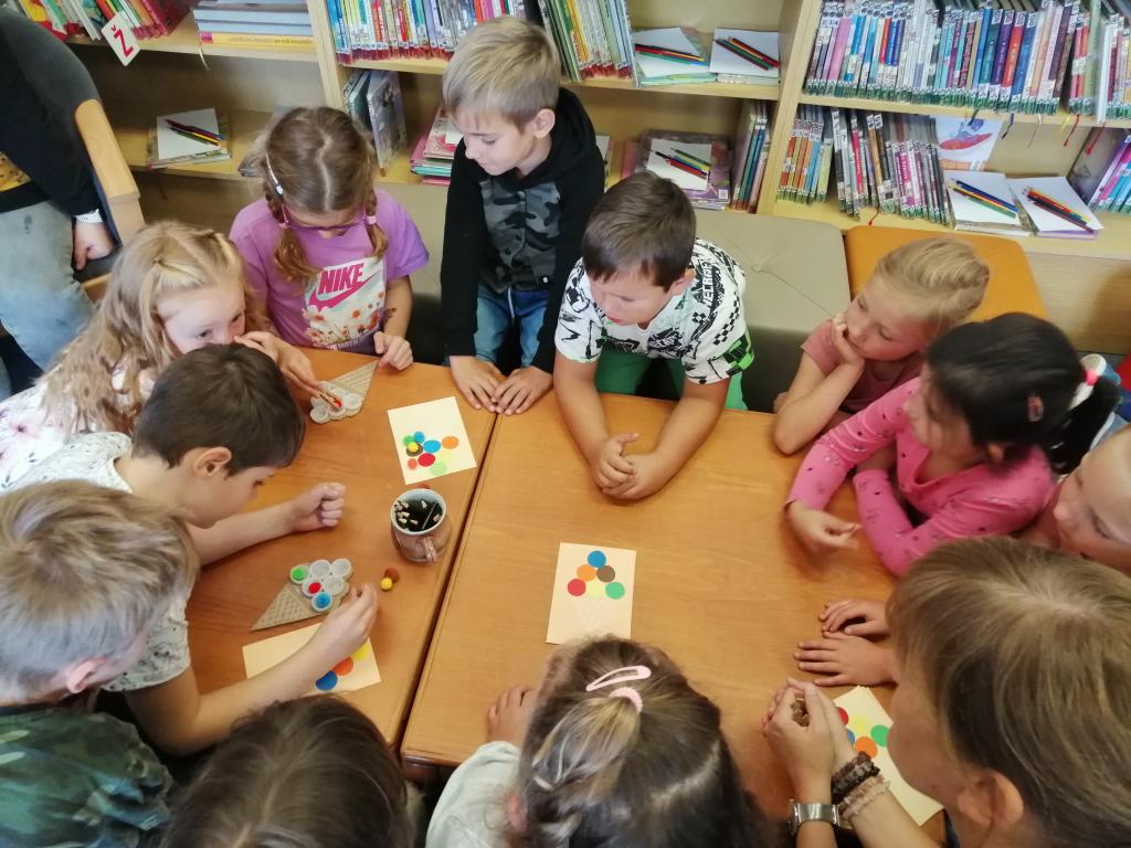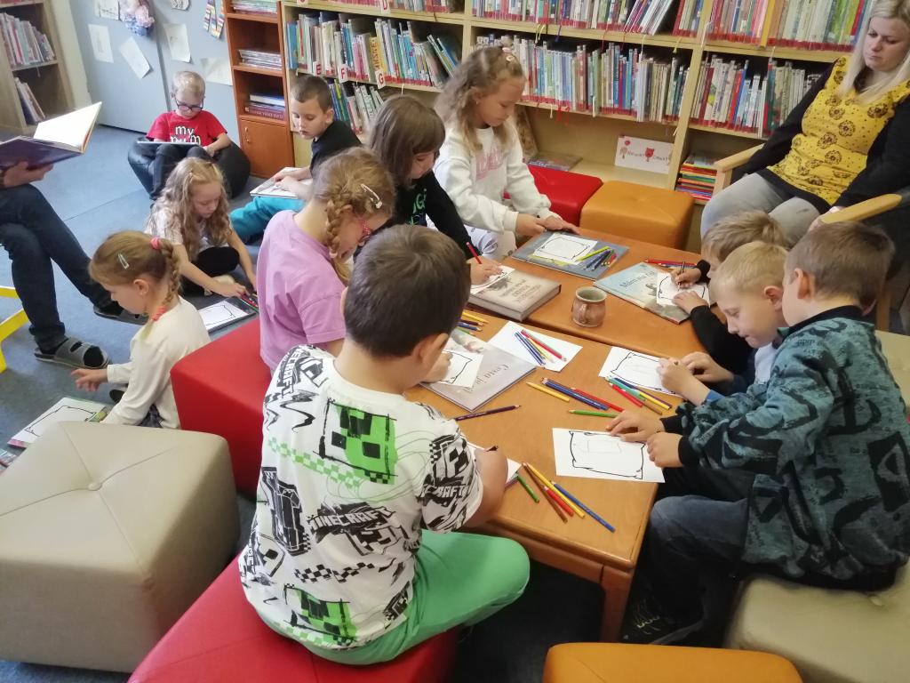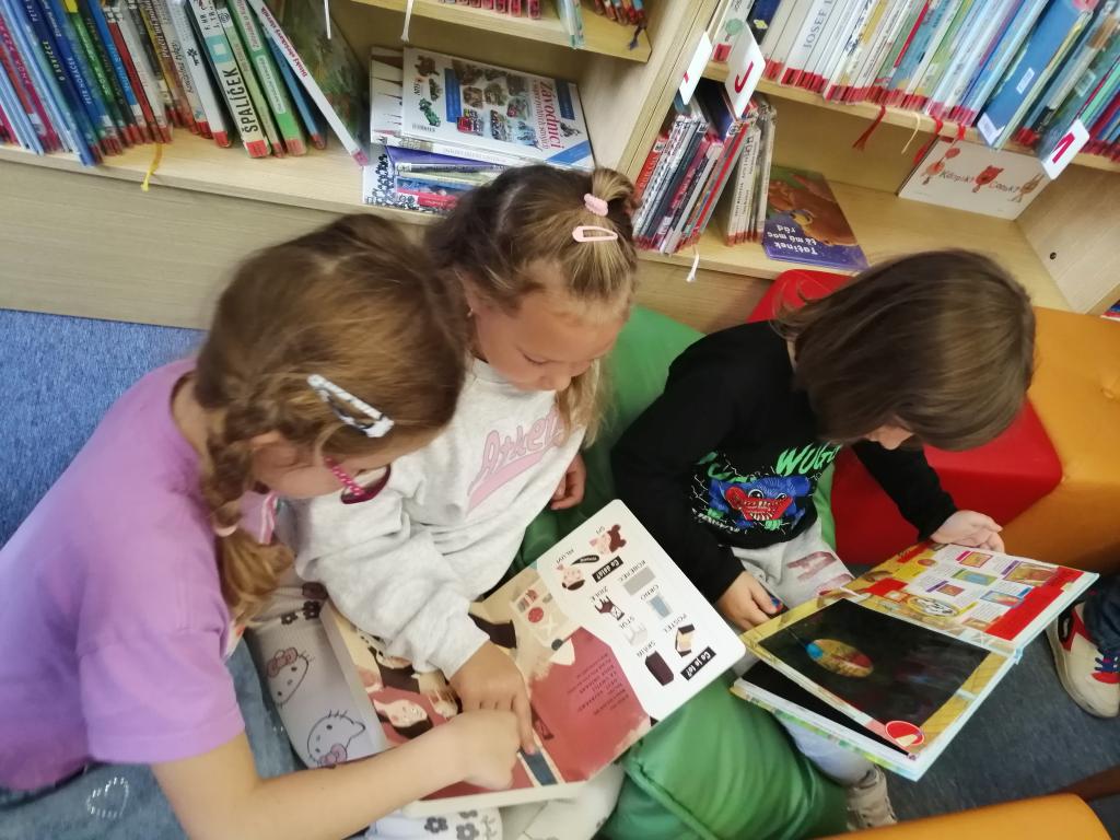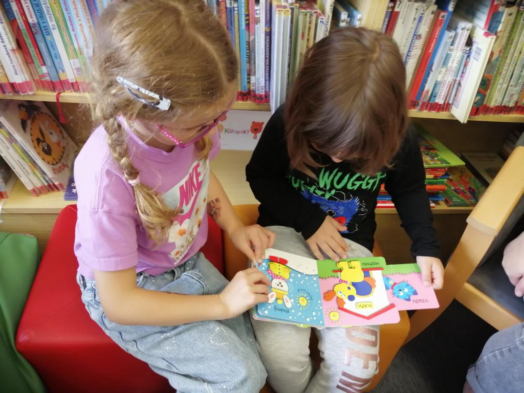 Navštívili jsme také knihovnu. Tam se nám moc líbilo. Někteří z nás to tam znají, jiní tam byli aspoň jednou se školkou. Všichni ale s jistotou známe paní knihovnici, protože ta za námi každý měsíc chodila s programem do školky. Teď už jsme velcí, tak budeme každý měsíc chodit za ní do knihovny my. Zatím ji budeme navštěvovat v provizorní budově knihovny, ale už se těšíme, až bude dostavěna nová budova s většími prostory a budeme chodit tam. A pokud se naučíme číst, jako že my to určitě zvládneme, na konci první třídy nás král Písmenkové říše pasuje na čtenáře.