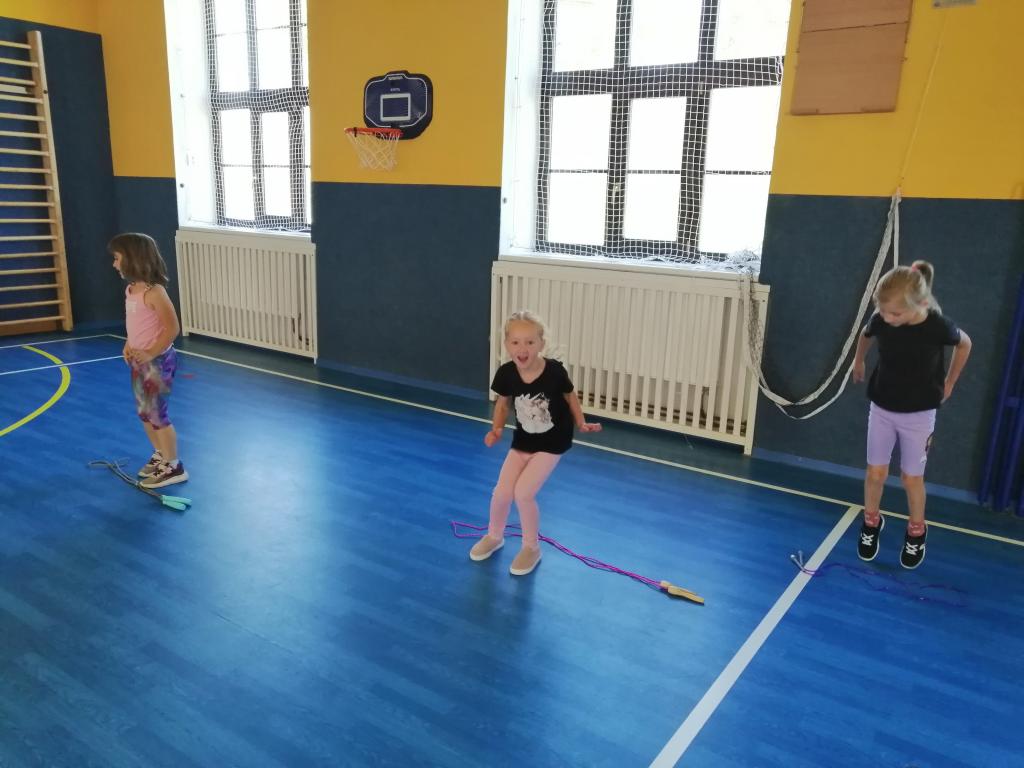 Celý týden jsme zakončili opět v tělocvičně, tentokrát při setkání se švihadlem. Zpevňovali jsme si kotníky a trénovali dopady na špičky. Někdo už zvládl i první přeskoky přes švihadlo. Věříme, že se nám to podaří za ten rok natrénovat a příští rok už budeme skákat přes švihadlo jak mistři světa (nebo alespoň mistři školy;-)).