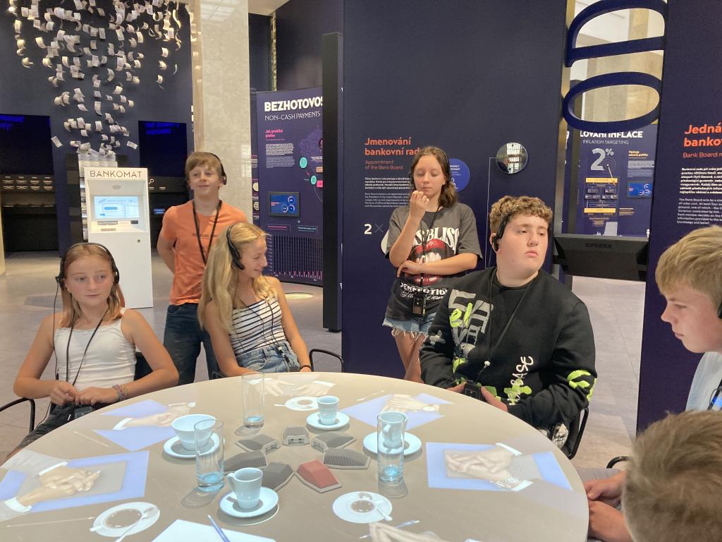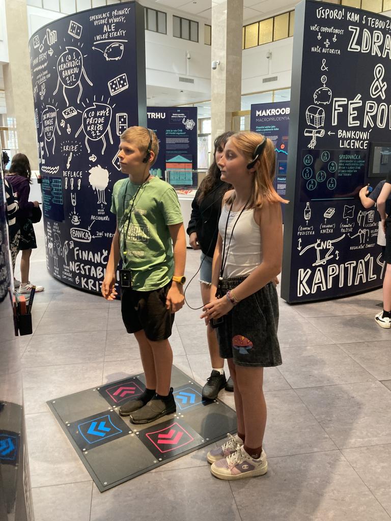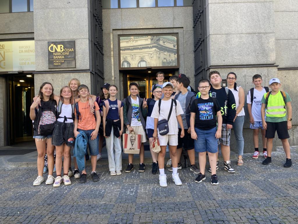 Navštívili jsme Českou národní banku, kde jsme absolvovali edukativní program inanční gramotnosti s názvem: Za měnou. Byl pro nás připraven skvěle provedený program, který jsme si i náramně užili. V Praze jsme stihli i prohlédnout Staroměstský orloj, Prašnou bránu, projít Václavák, dát si něco dobrého na zub a zažít i dobrodružství při zpáteční cestě vlakem.