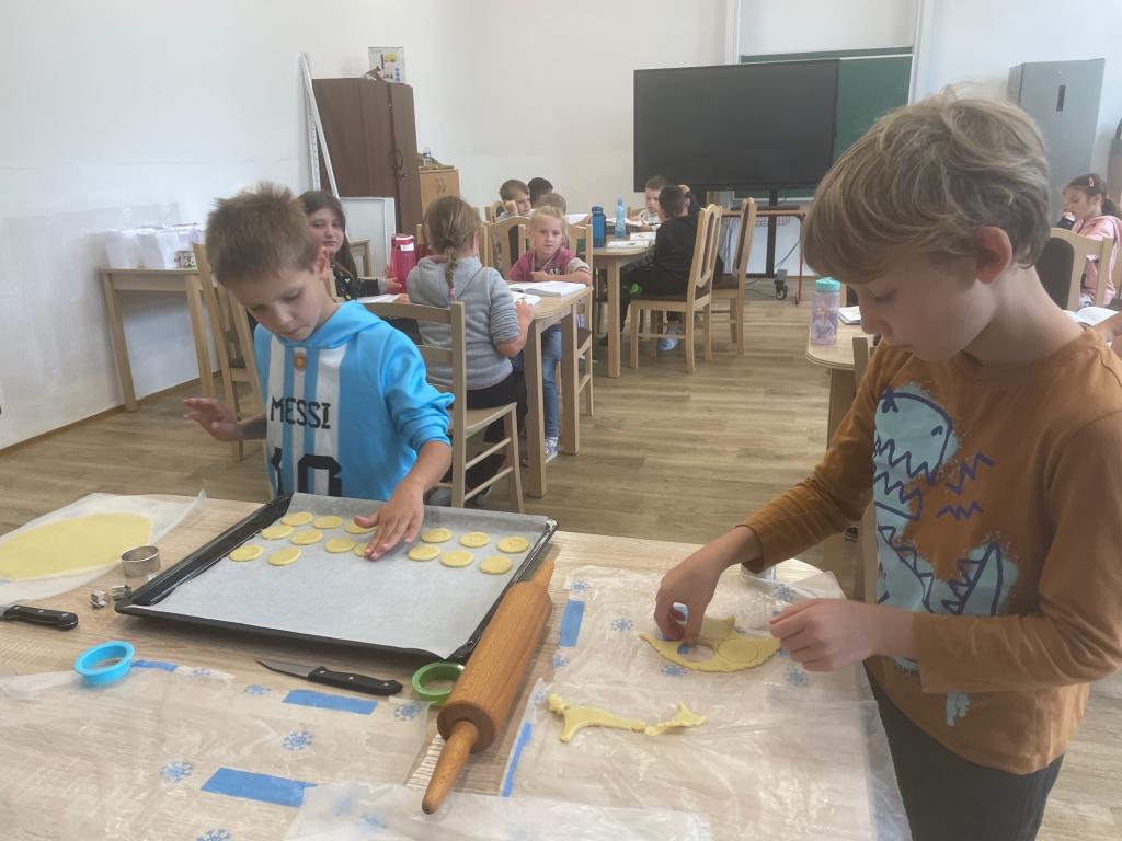 Pak následovala výzdoba třídy, nácvik prezentace, příprava stanovišť, abychom byli připraveni na první návštěvu.