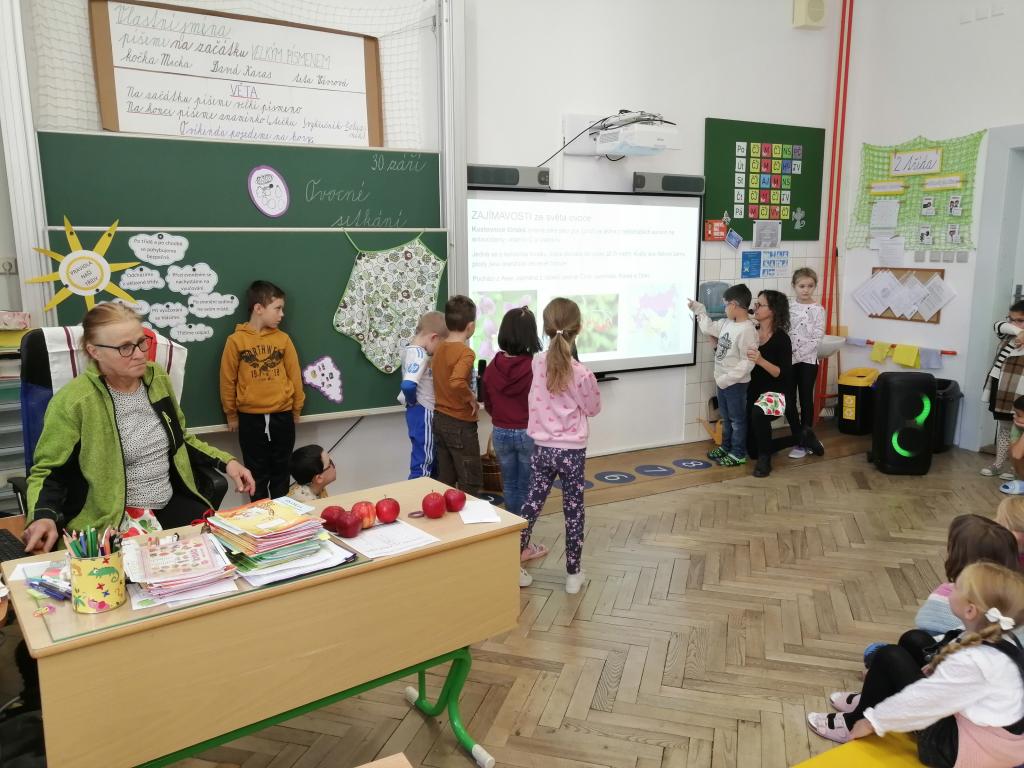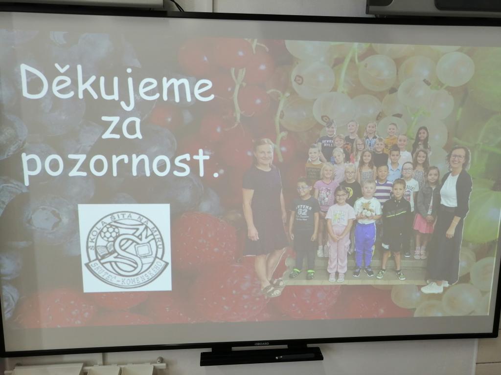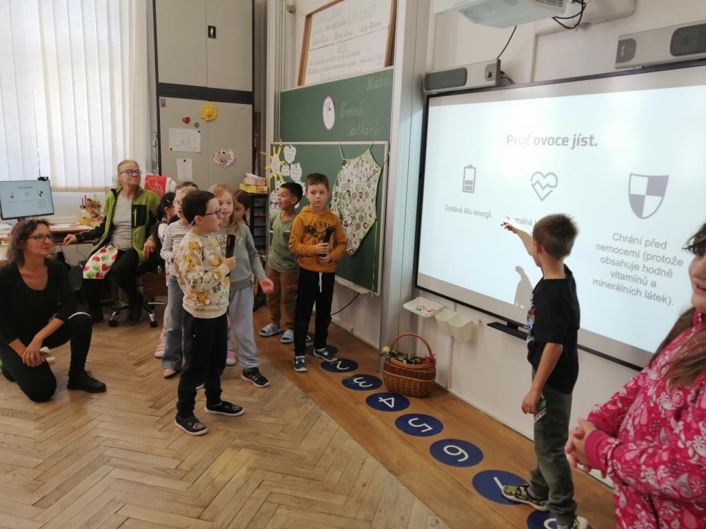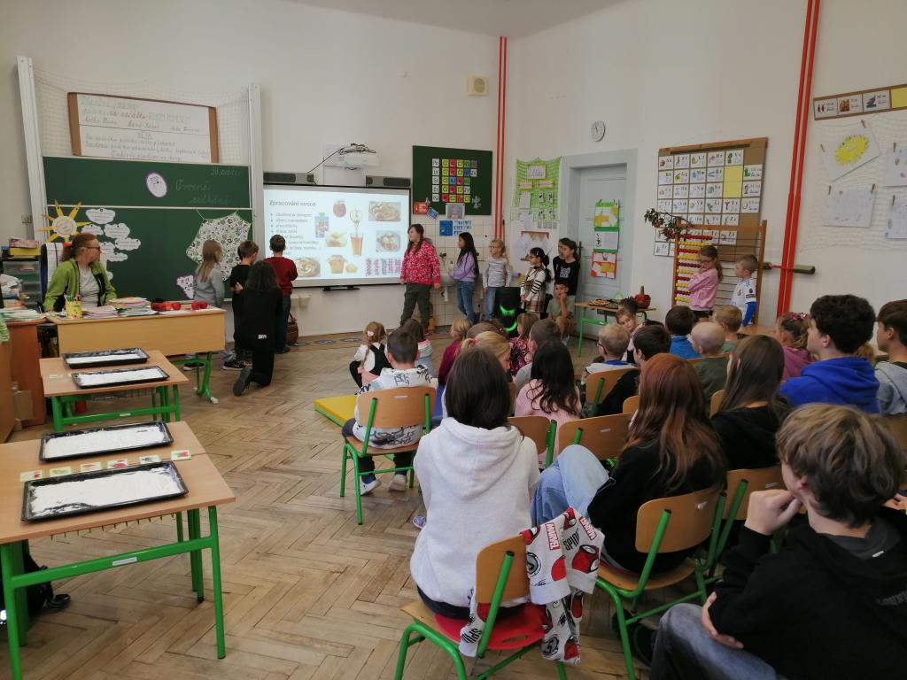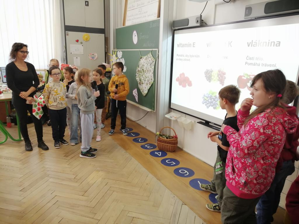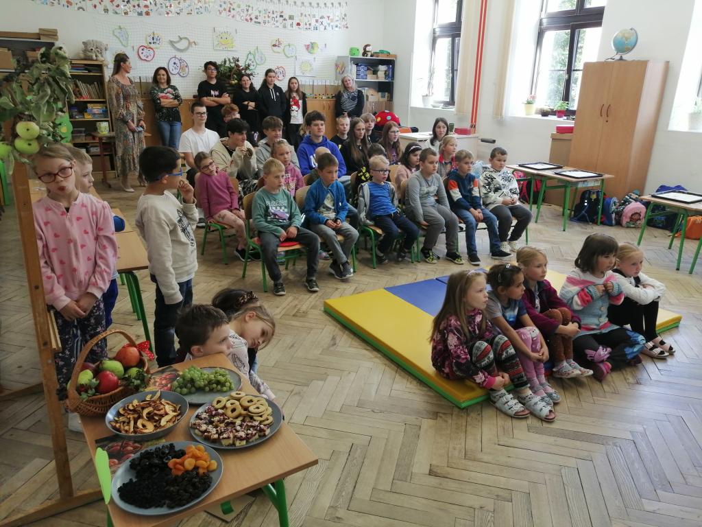 Pátý týden ve škole jsme začali programem u druháčků. Dozvěděli jsme spoustu zajímavých informací o ovoci, zahráli jsme si naučné hry, zkusili si poznávačku rostlin a hlavně jsme měli možnost okusit ochutnávku jak čerstvého a sušeného ovoce, tak i například pečených pokrmů z ovoce. Druháčkům i jejich paní učitelce moc děkujeme.
