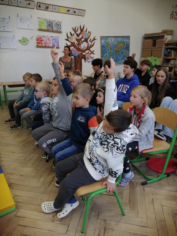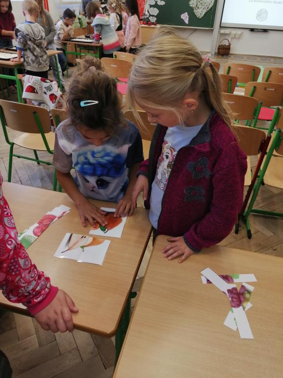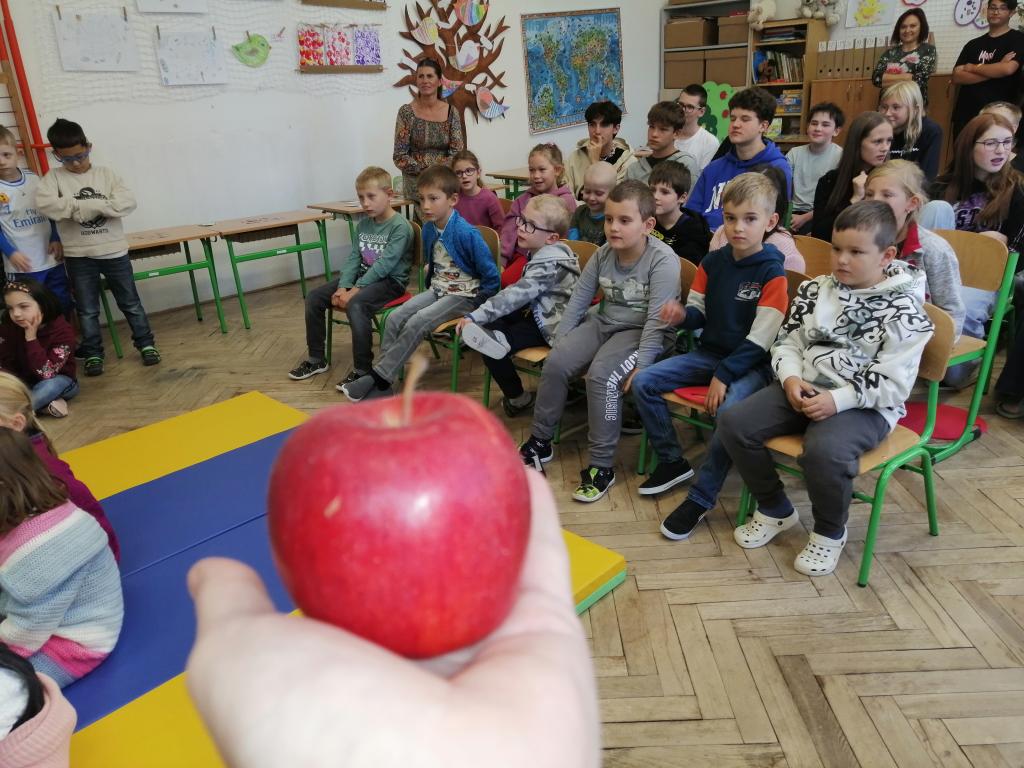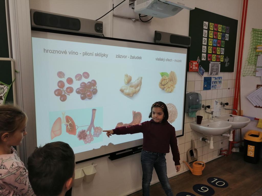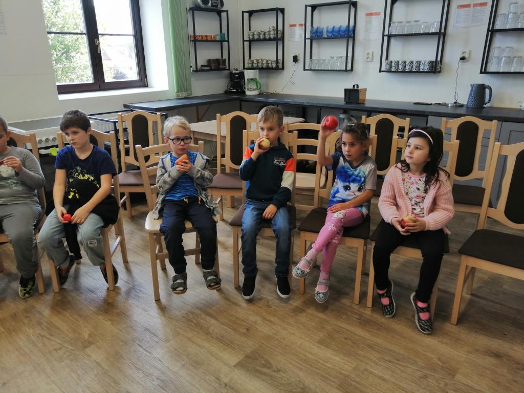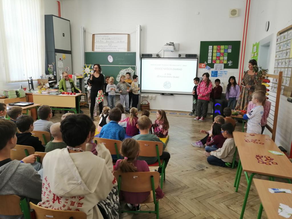 Pátý týden ve škole jsme začali programem u druháčků. Dozvěděli jsme spoustu zajímavých informací o ovoci, zahráli jsme si naučné hry, zkusili si poznávačku rostlin a hlavně jsme měli možnost okusit ochutnávku jak čerstvého a sušeného ovoce, tak i například pečených pokrmů z ovoce. Druháčkům i jejich paní učitelce moc děkujeme.