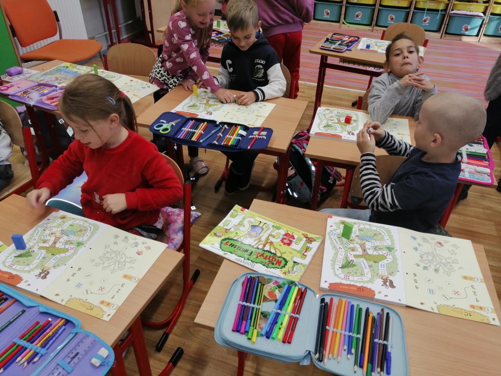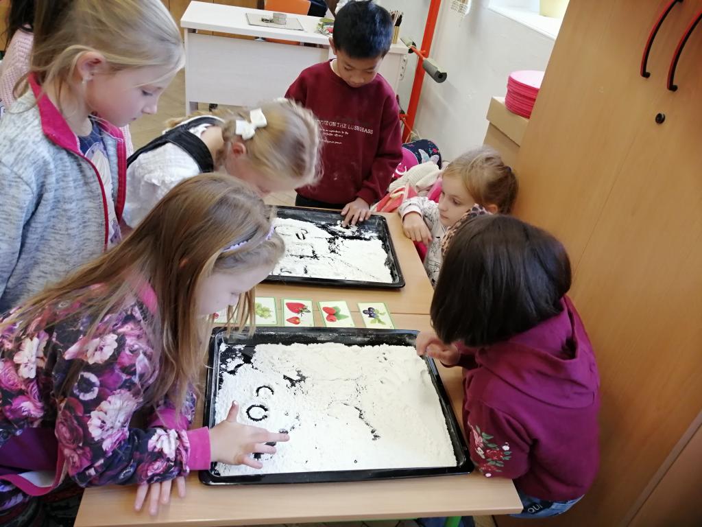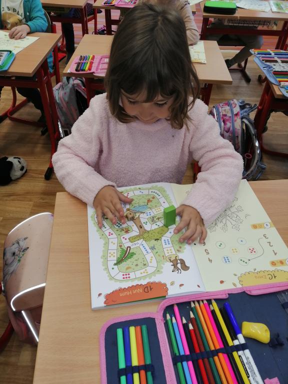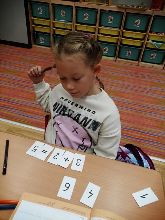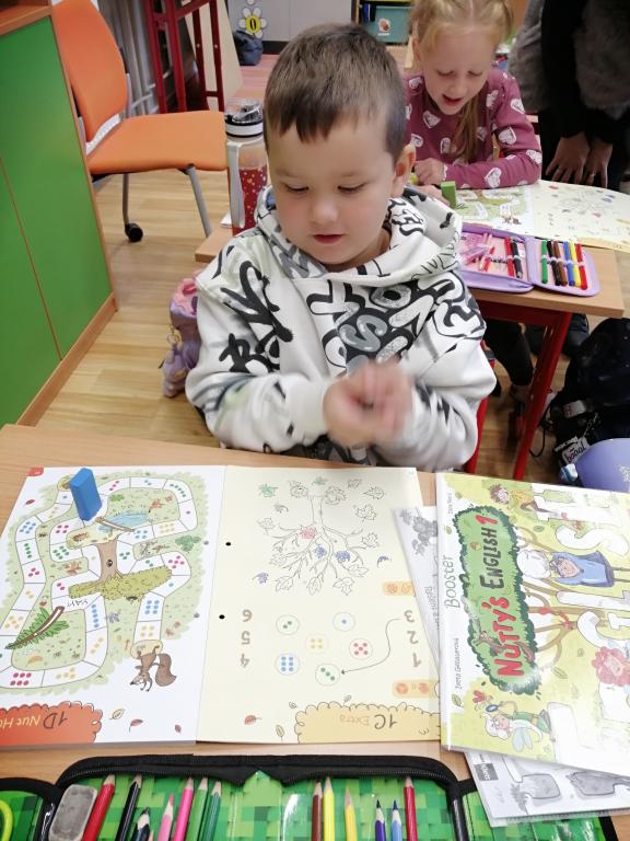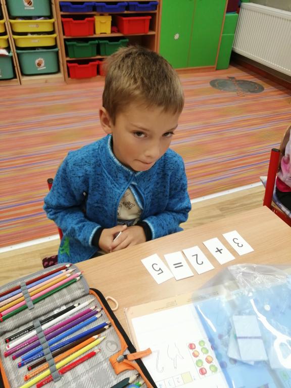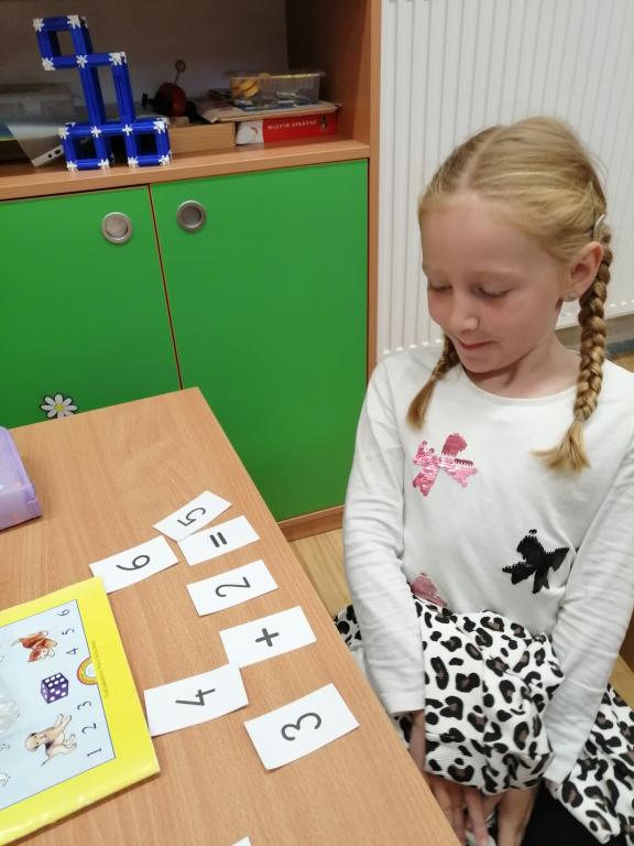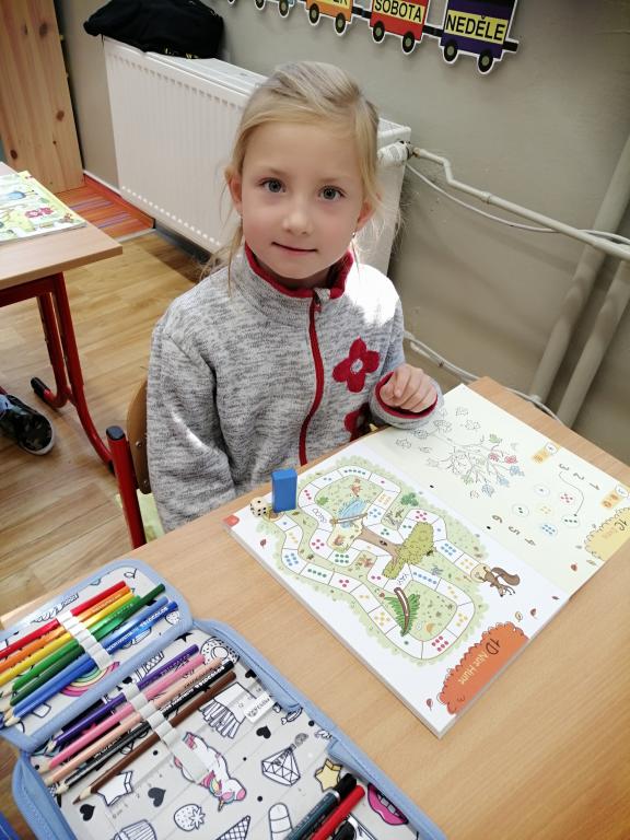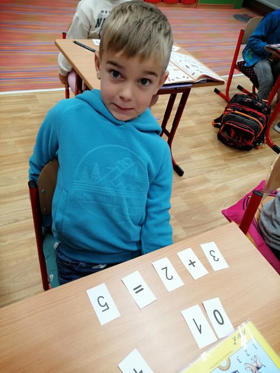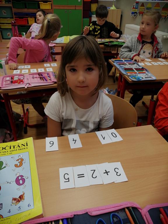 V matematice už umíme sestavit příklady, v českém jazyce nám přibylo další písmenko a v angličtině už umíme s veverkou Nuty počítat, díky čemuž jsme si i s ní mohli zahrát hru.