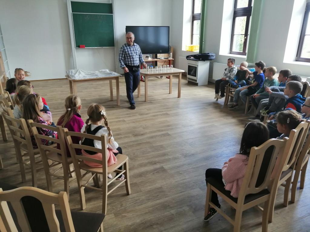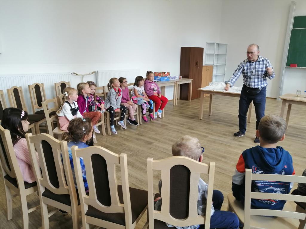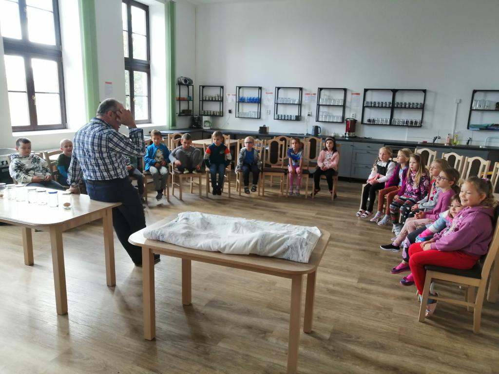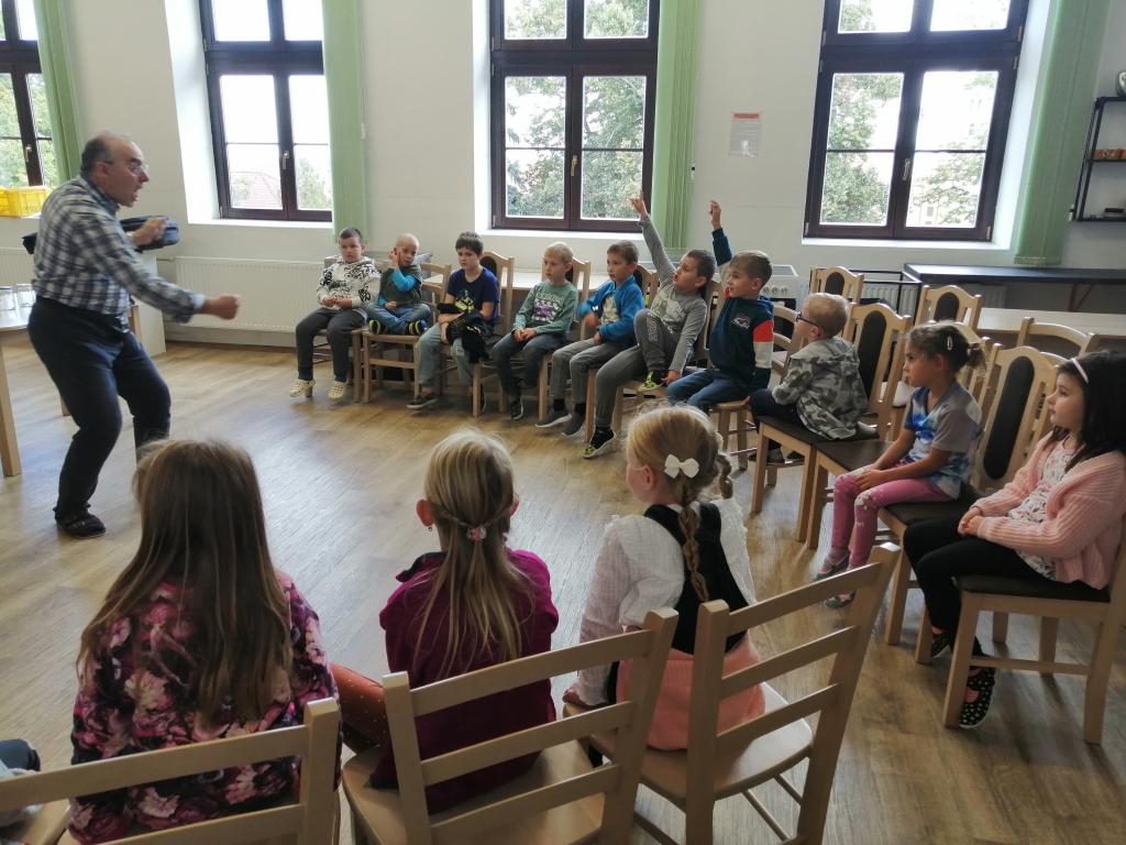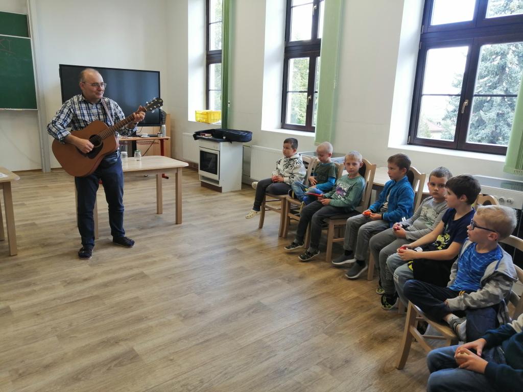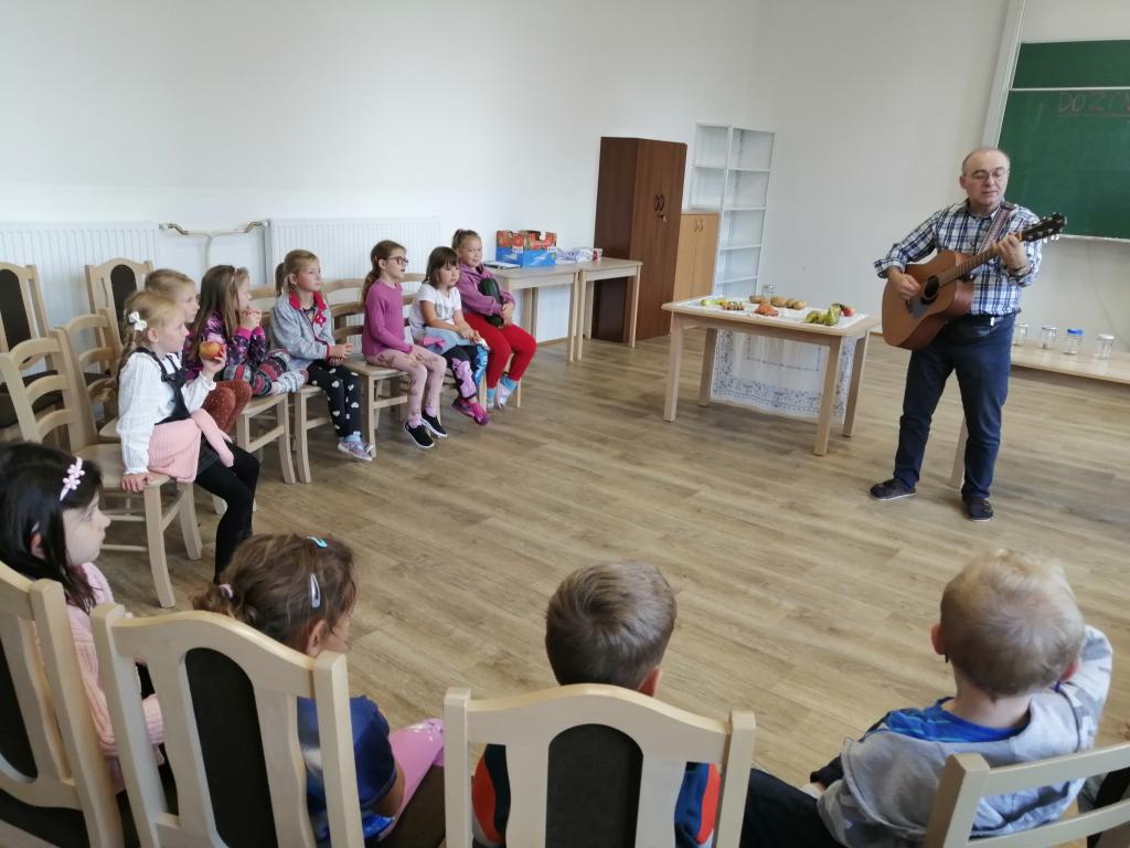Svým programem o jídle nás obohatil i P. Matula. Dozvěděli jsme se, z čeho se vypěstují různé plody, s kterými se můžeme setkat na zahrádce, a jak je lze zužitkovat. Na závěr jsme si zazpívali písničku.