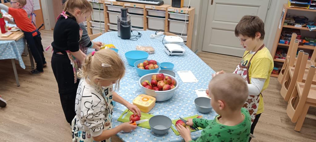 Dnes jsme si udělali celozrnné tousty se sýrem a šunkou a čerstvý jablečný mošt.