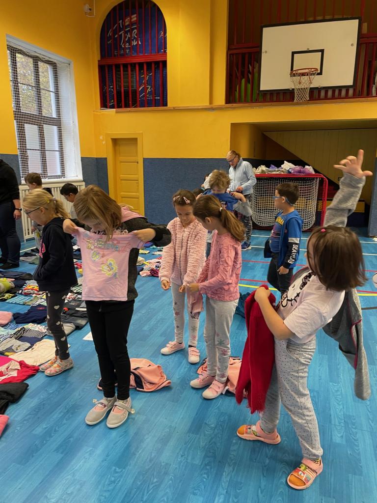 Ptaly se na velikost, zda jim to padne, jestli jim to sluší. Někdo myslel s výběrem i na sourozence. Komu oblečení nebylo, snažil se urovnat a dát zpět na místo.