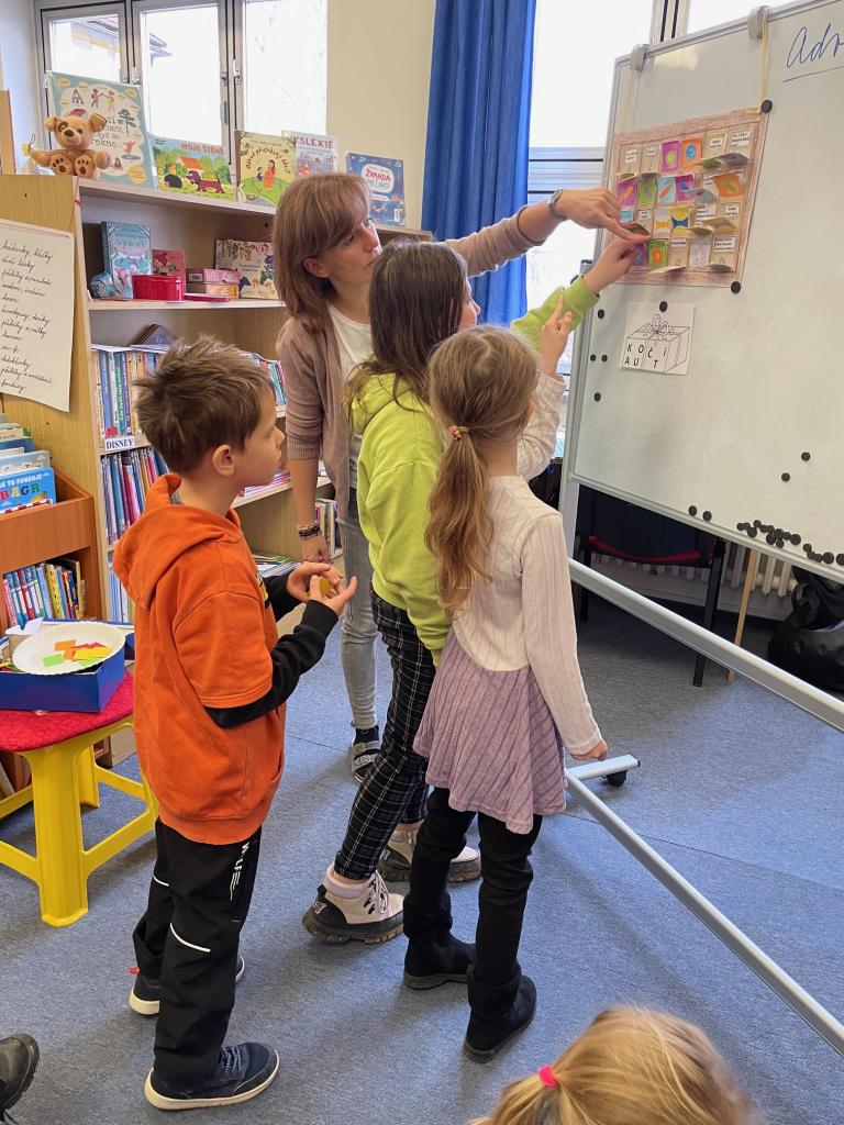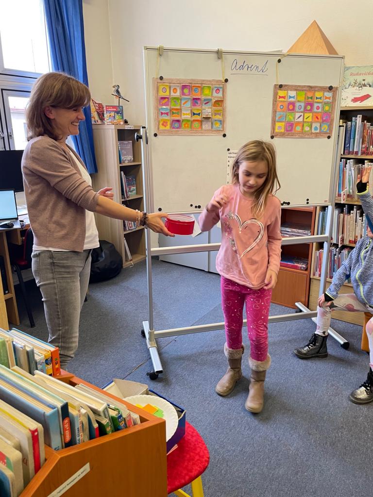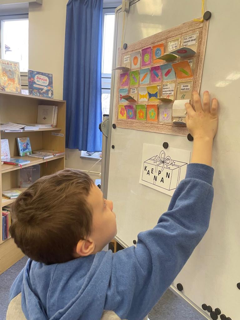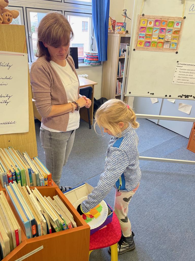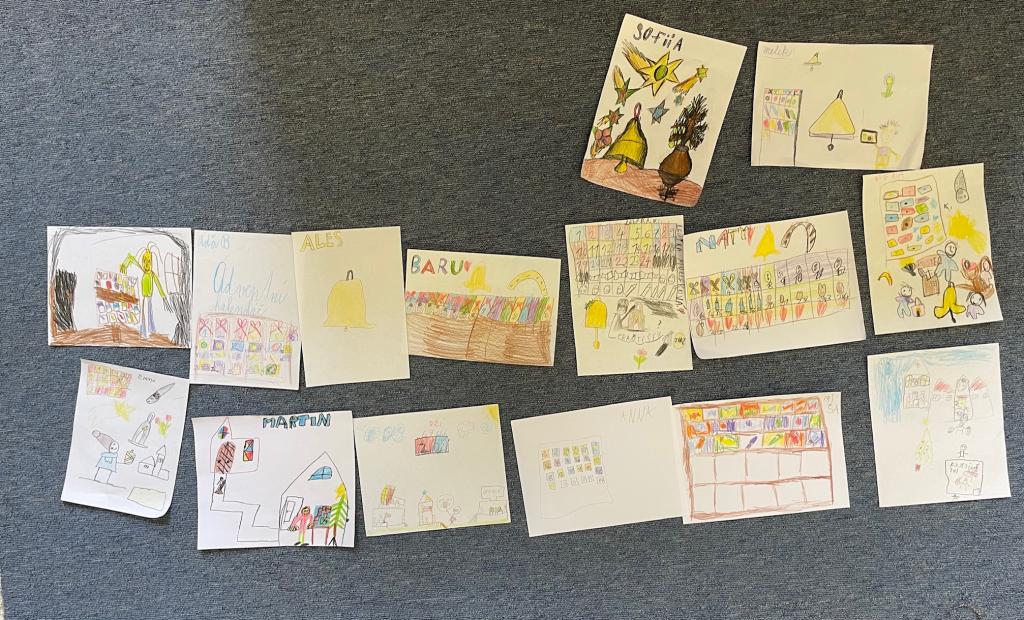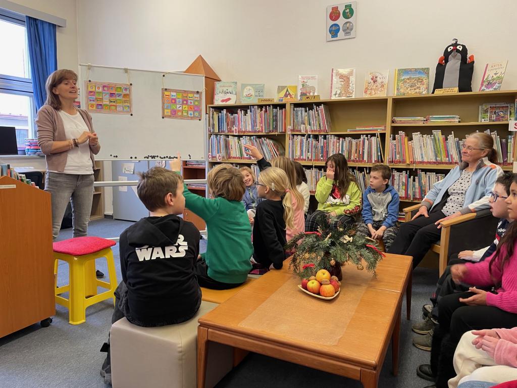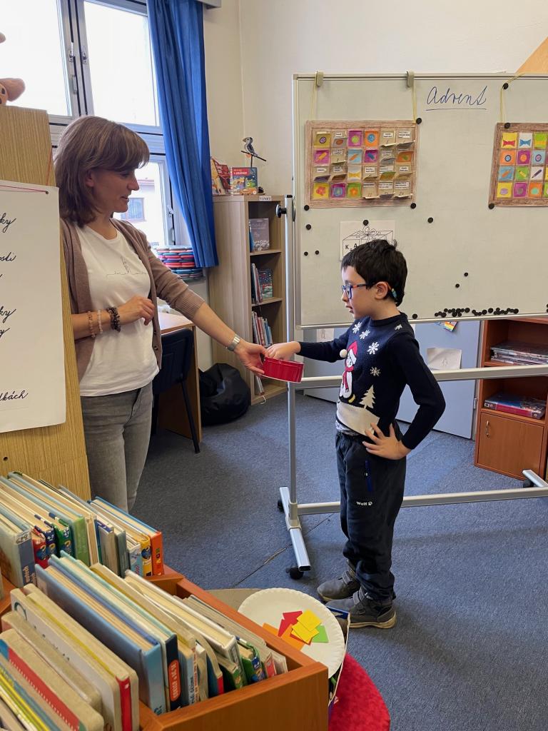 Příběh o Vánocích, adventní kalendář plný úkolů a koled, krelení, prohlížení, vypravování. Taková byla naše poslení návštěva v náhradních prostorách knihovny.