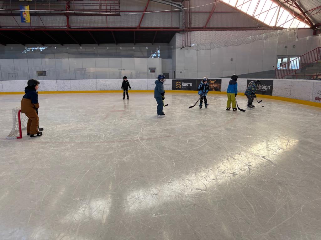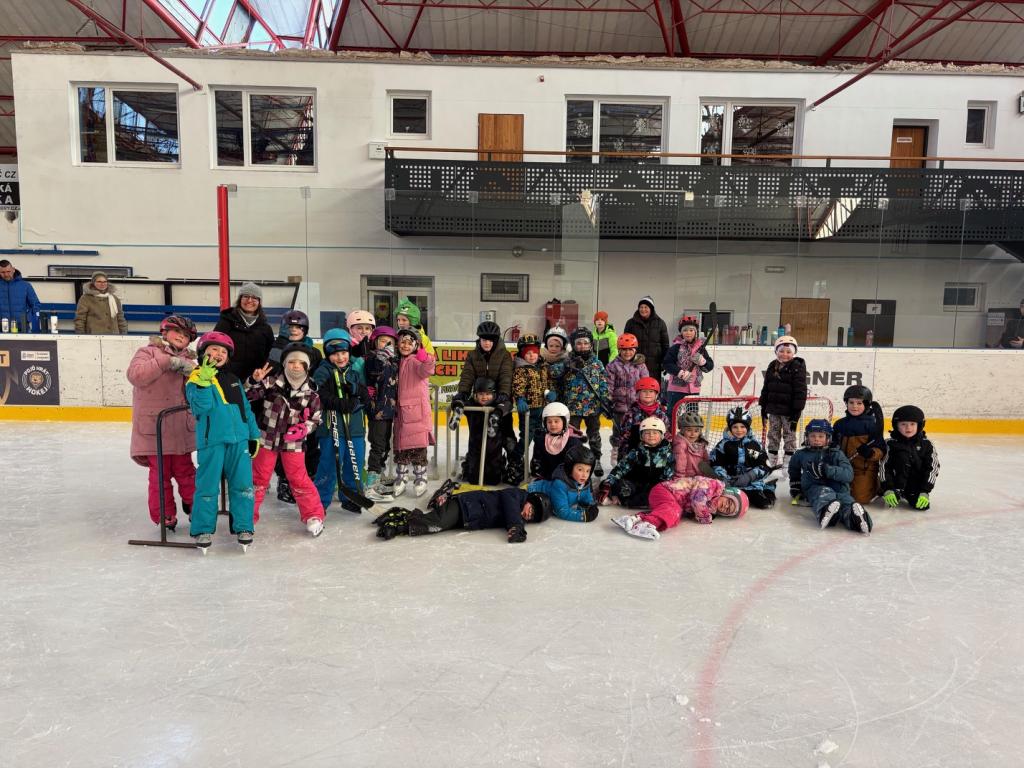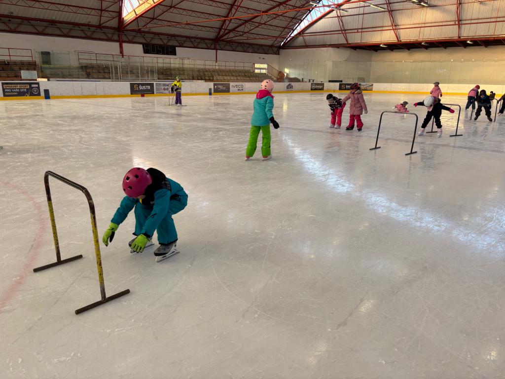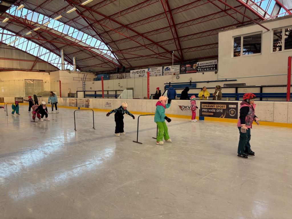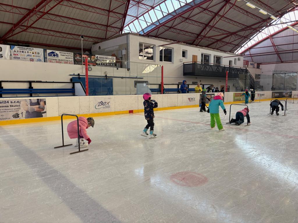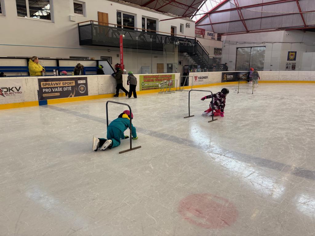 Poděkování pomocníkům - maminky, tatínkové opět v akci při vázání bruslí.