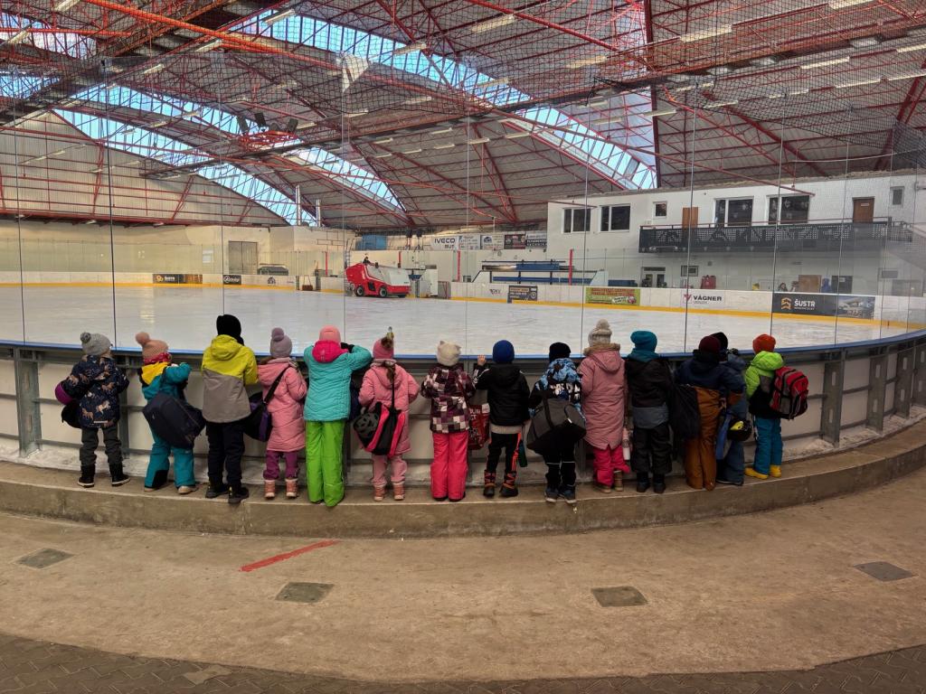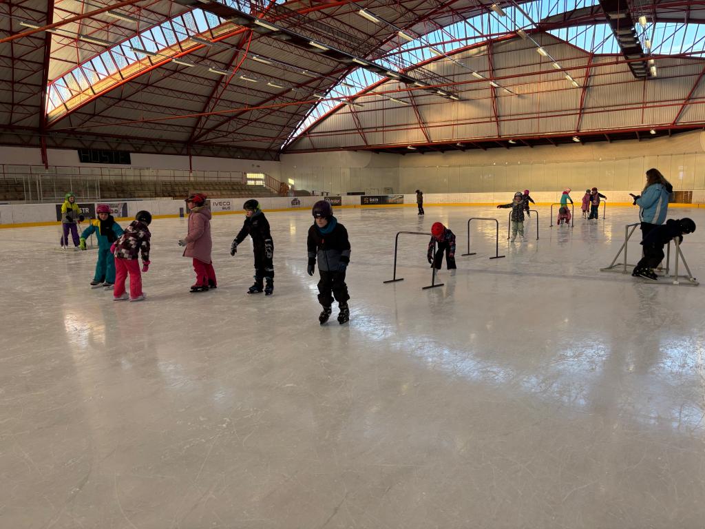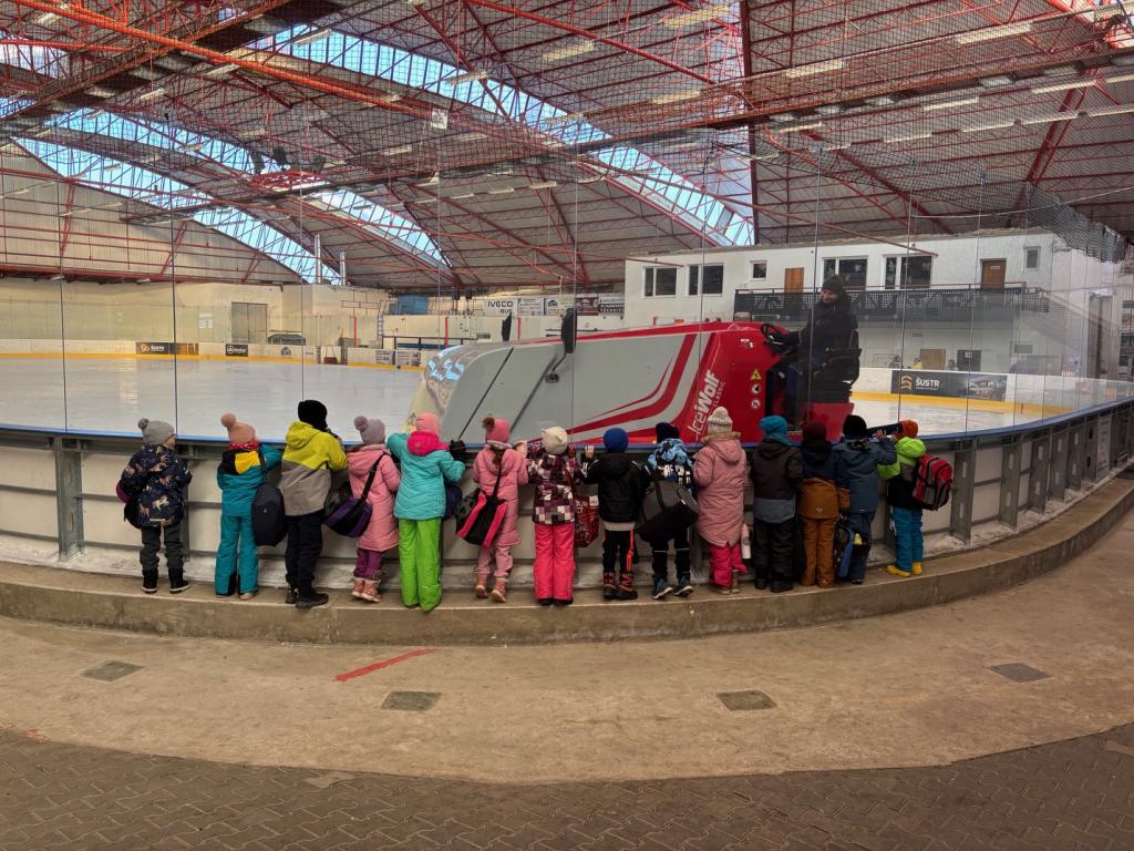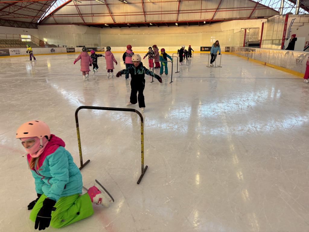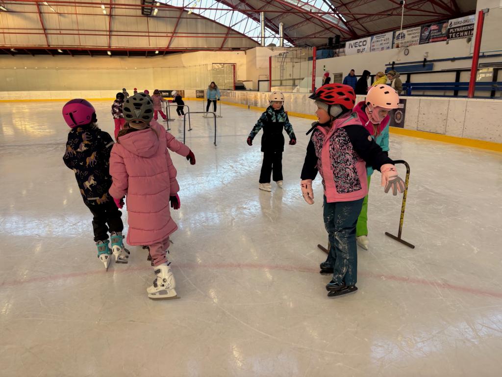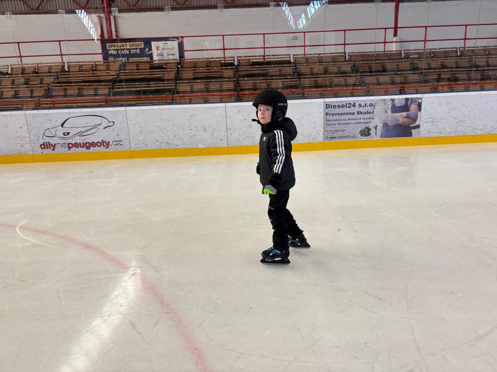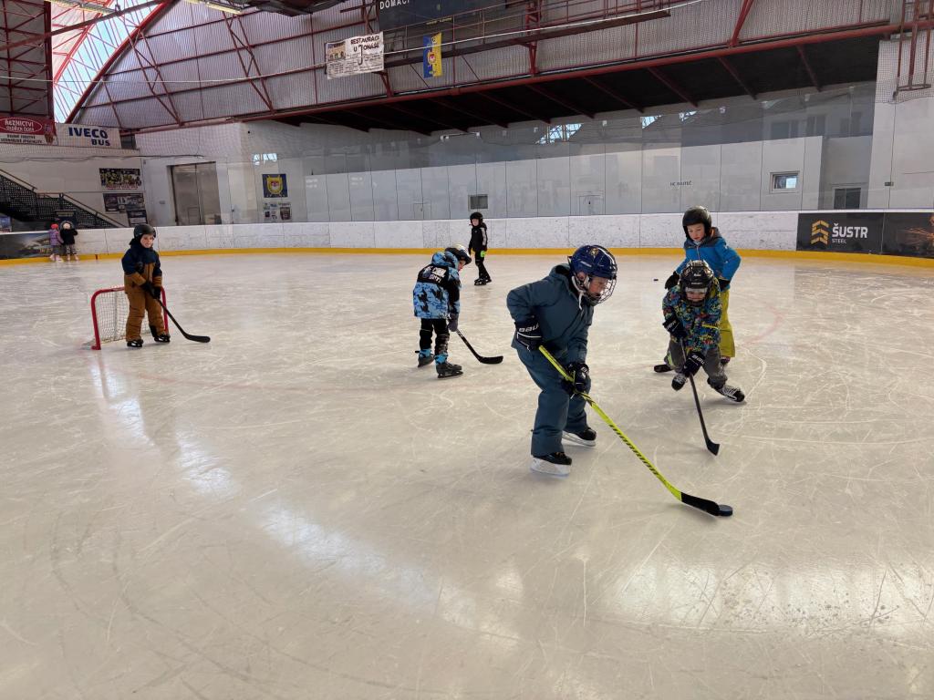 Poděkování pomocníkům - maminky, tatínkové opět v akci při vázání bruslí.