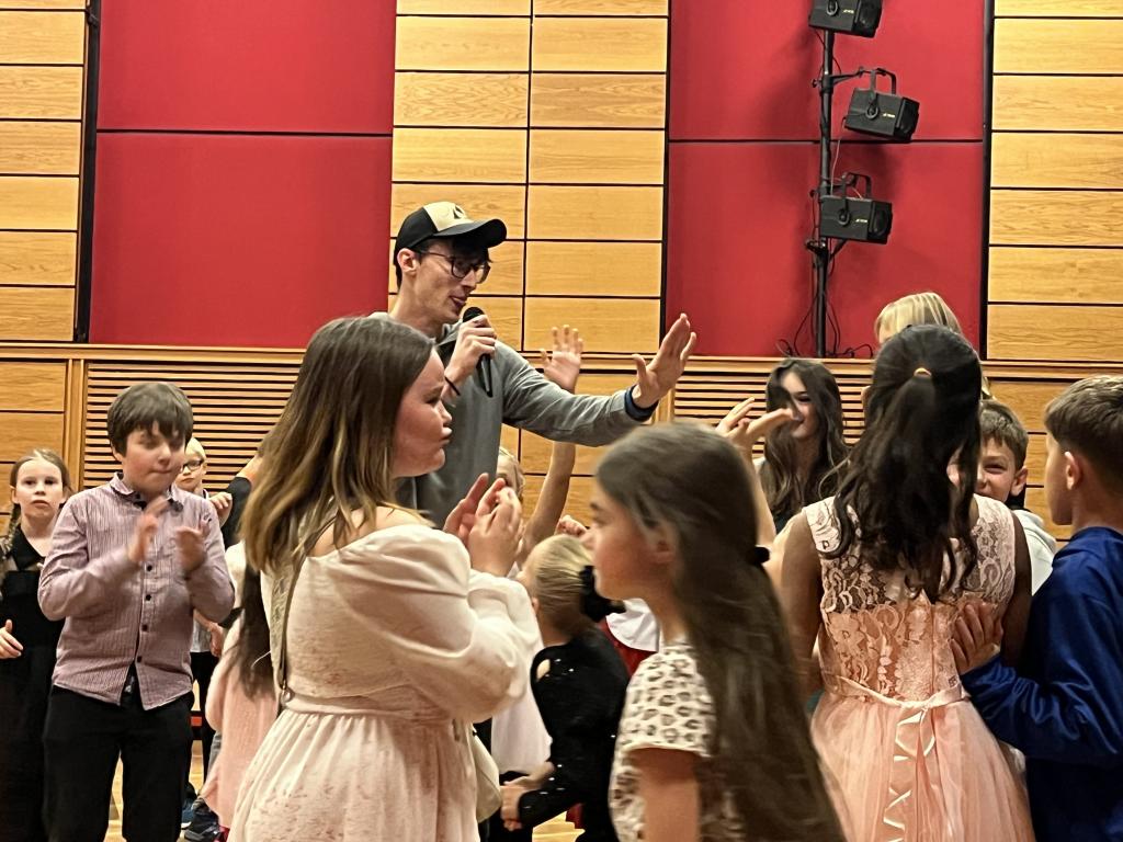 Jako překvapení nám přišel zazpívat bývalý žák naší školy Jan Bureš - dětem se moc líbil a po jeho minikoncertu šel tančit a