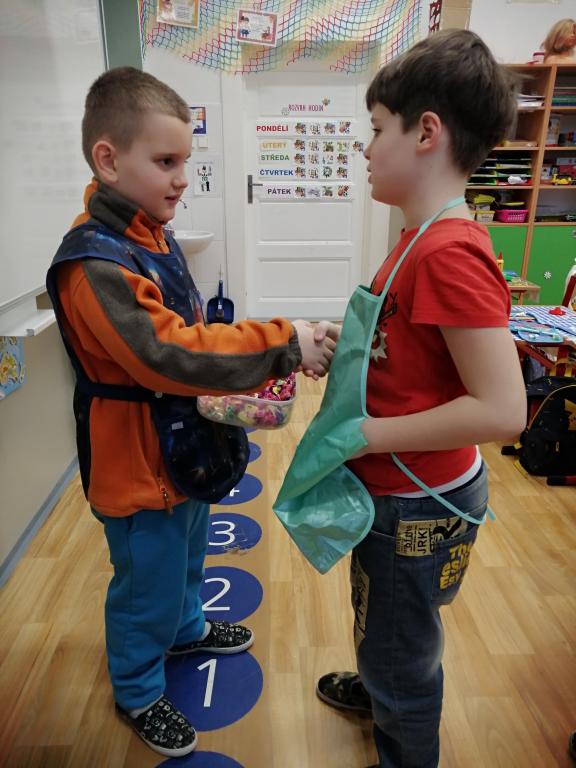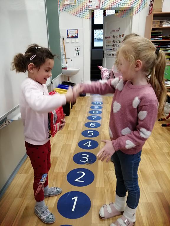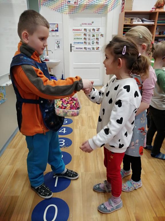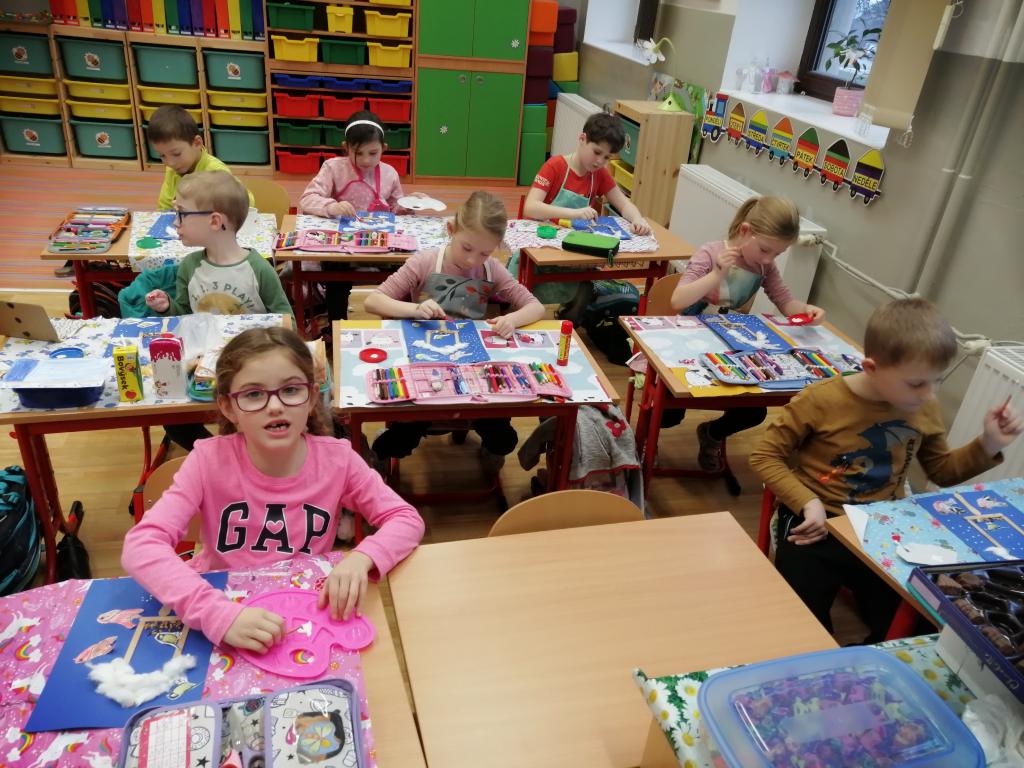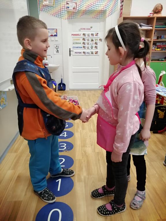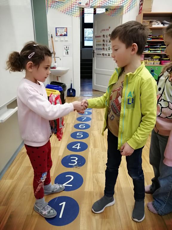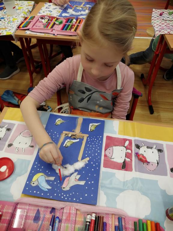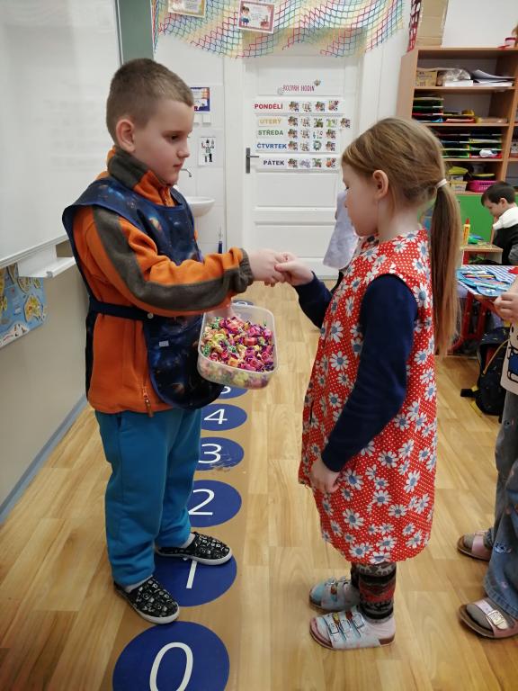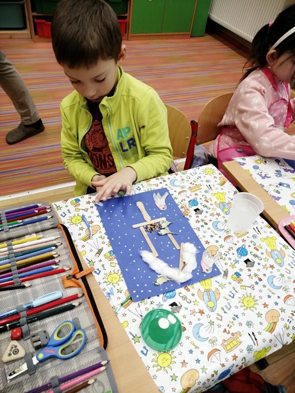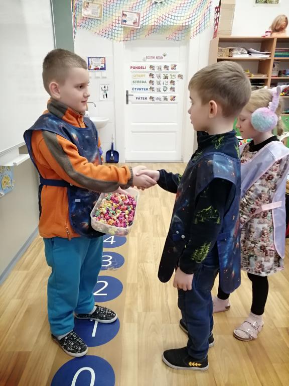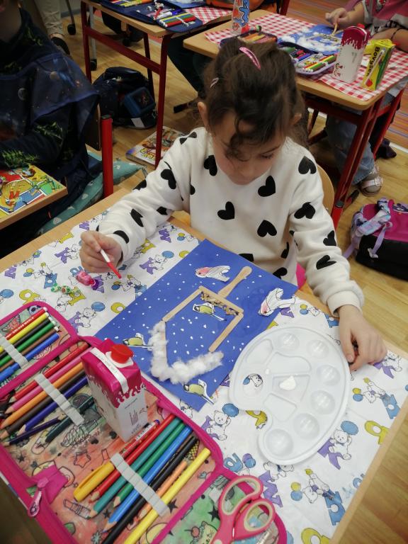 I v následujících dnech jsme si povídali o zvířatech. Na řadě byla ta zvířata, která tu žijí ve volné přírodě v zimě. Zopakovali jsme si ptáky, kteří tu v zimě zůstávají a sledovali jsme je živě přes webkameru. Vyrobili jsme i krmítka, do nichž jsme nezapomněli dát zobání. I o něm jsme si povídali a zkoumali, co všechno je vhodné dát do krmítka. Poslouchali jsme hlasy ptáků a zkoušeli je určovat. Dále jsme se zaměřili na stopy zvířat ve sněhu. Nechyběla ani tematická pohádka O sojce, která nakrmila celý les.