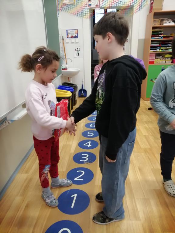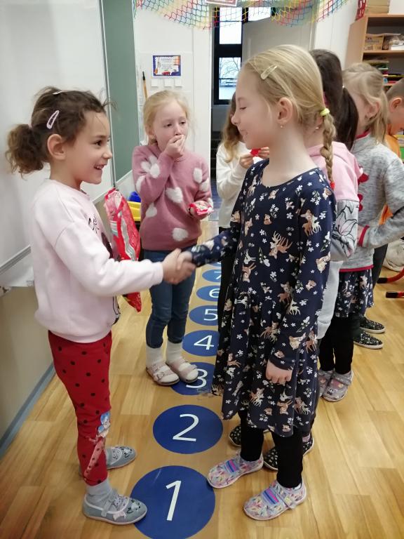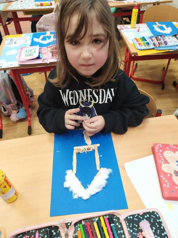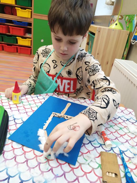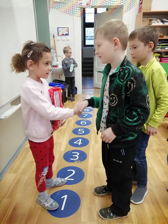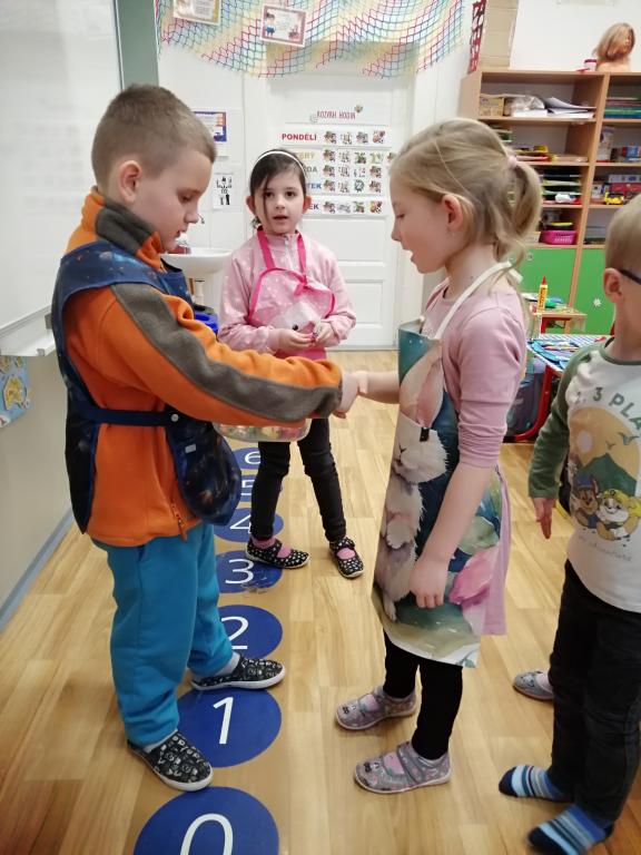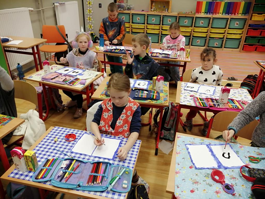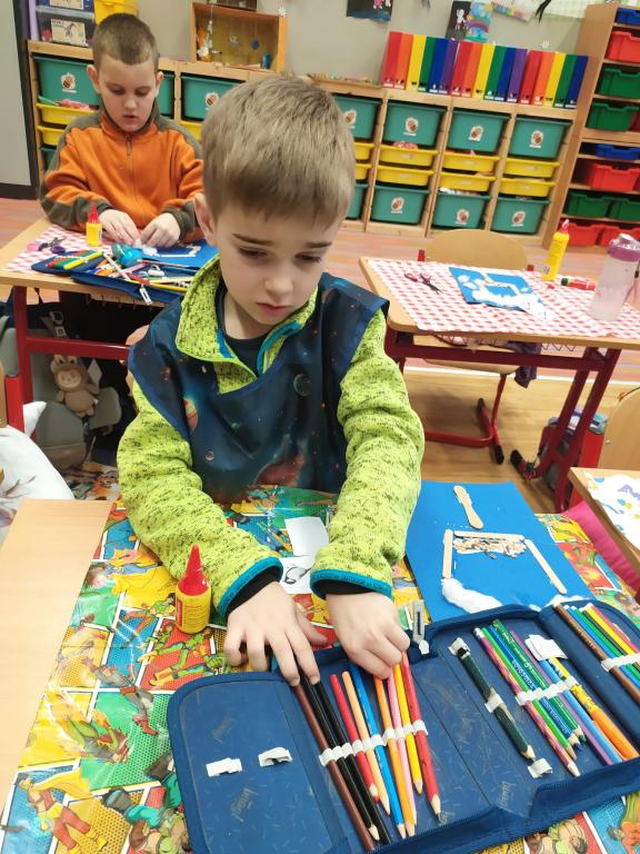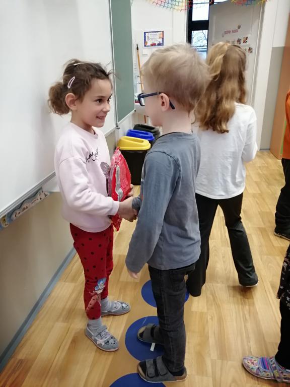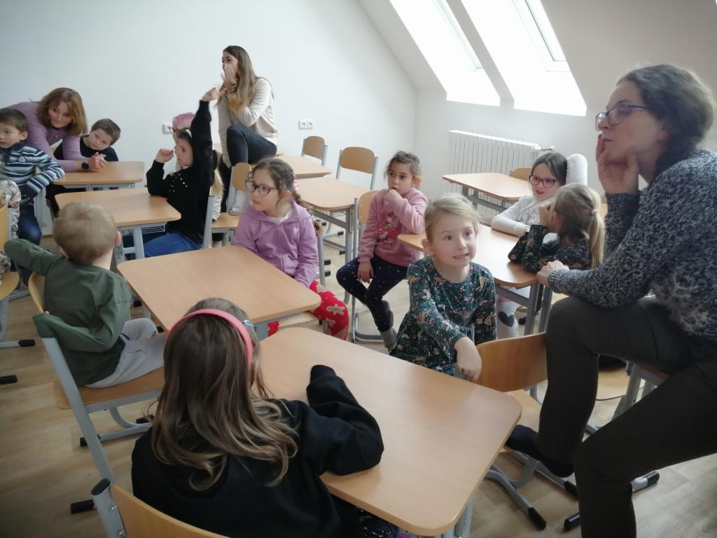 I v následujících dnech jsme si povídali o zvířatech. Na řadě byla ta zvířata, která tu žijí ve volné přírodě v zimě. Zopakovali jsme si ptáky, kteří tu v zimě zůstávají a sledovali jsme je živě přes webkameru. Vyrobili jsme i krmítka, do nichž jsme nezapomněli dát zobání. I o něm jsme si povídali a zkoumali, co všechno je vhodné dát do krmítka. Poslouchali jsme hlasy ptáků a zkoušeli je určovat. Dále jsme se zaměřili na stopy zvířat ve sněhu. Nechyběla ani tematická pohádka O sojce, která nakrmila celý les.