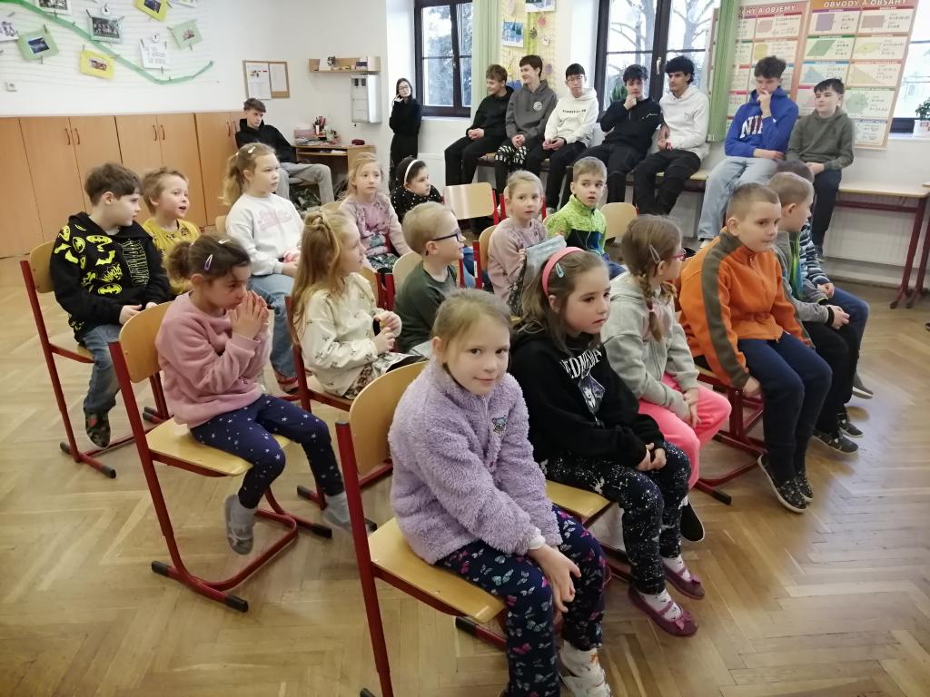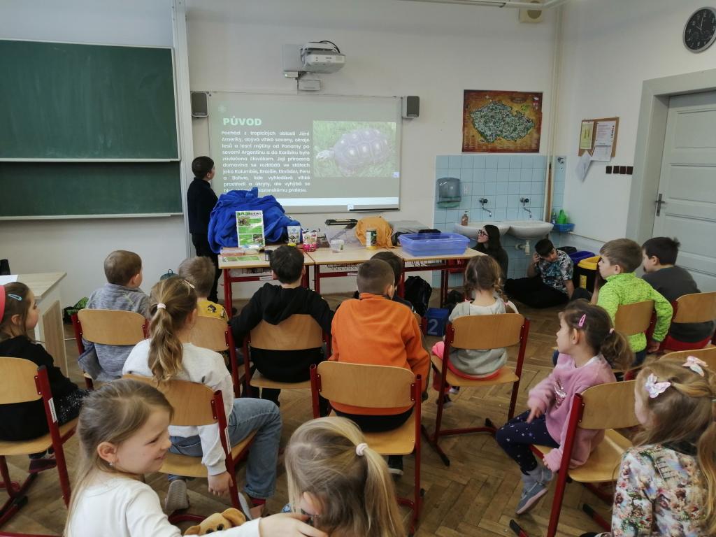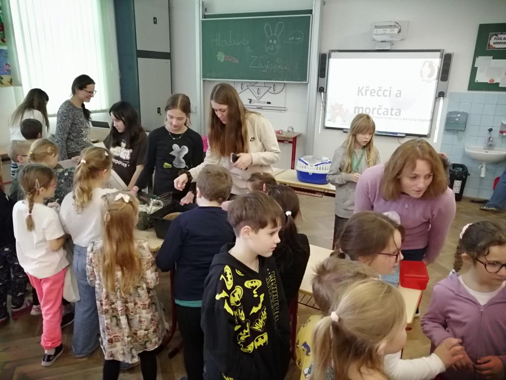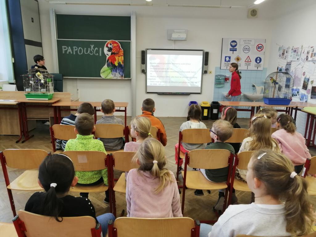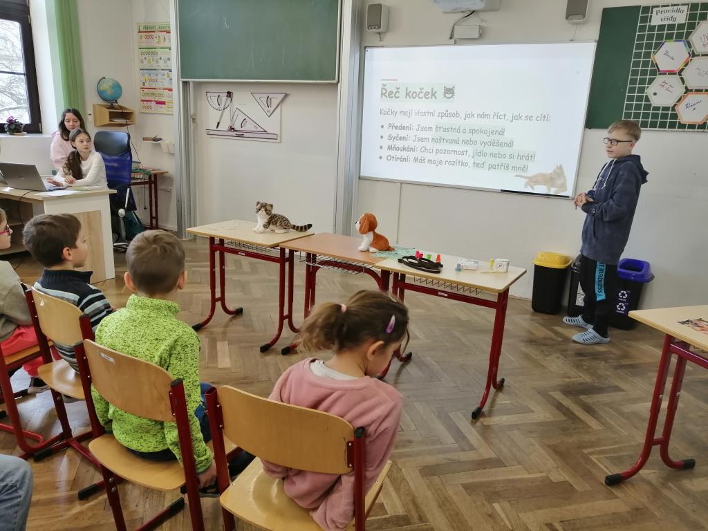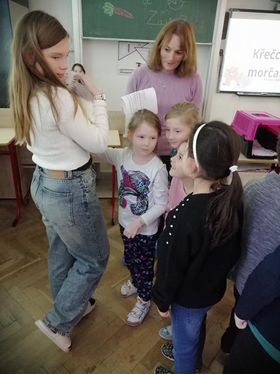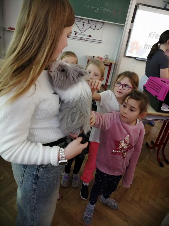 Druhý lednový týden byl u nás ve znamení projektu "Máme rádi zvířata". Tento den jsme jako školáci zažili poprvé. Žáci z druhého stupně si pro nás připravili povídání o svých domácích mazlíčcích a některé z nich také s sebou do školy i přinesli! Byl to pro nás netradiční den a moc se nám líbil. Dozvěděli jsme se spoustu zajímavostí a vidět některá zvířata naživo a mít možnost si dokonce na některá i sáhnout - to bylo něco!!! Zaujalo nás i povídání o cenných kamenech, nebo o digitálních mikroskopech s ukázkou práce s nimi. Už se těšíme, až budeme velcí v roli našich starších spolužáků, kteří nás tím vším provázeli a obohacovali nás o samé novoty, a budeme takto učit jiné malé děti.