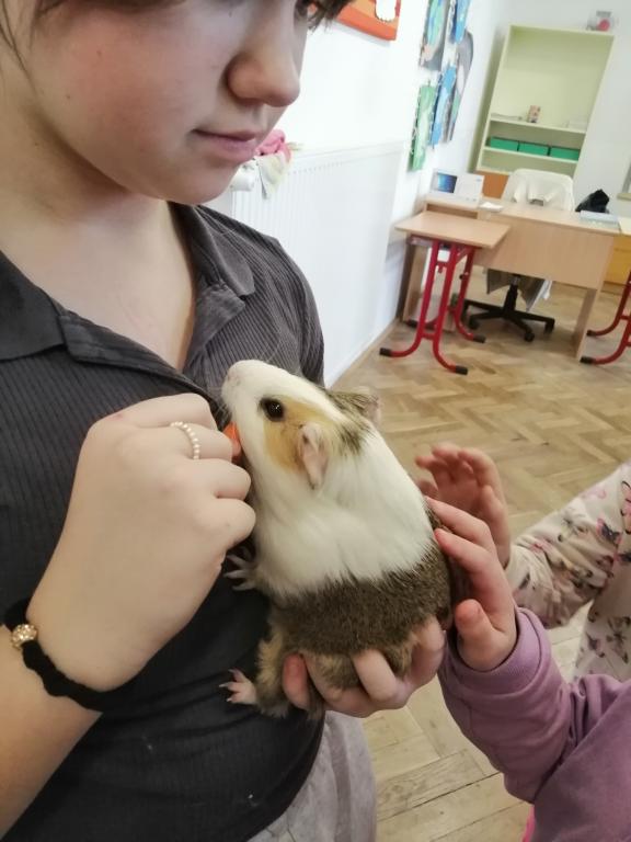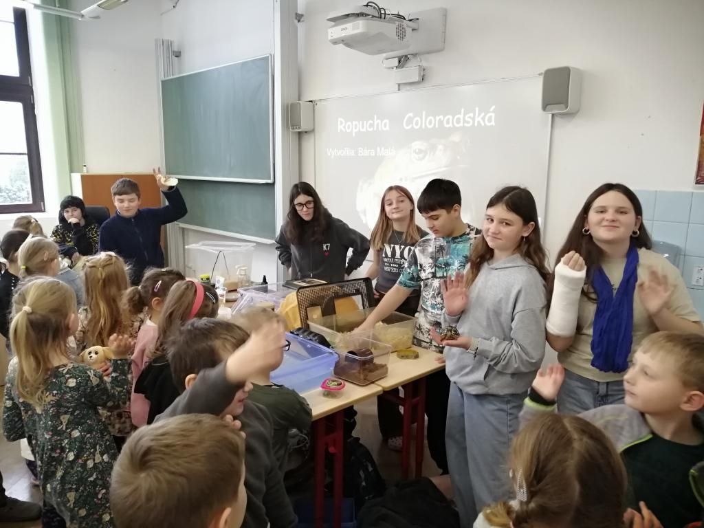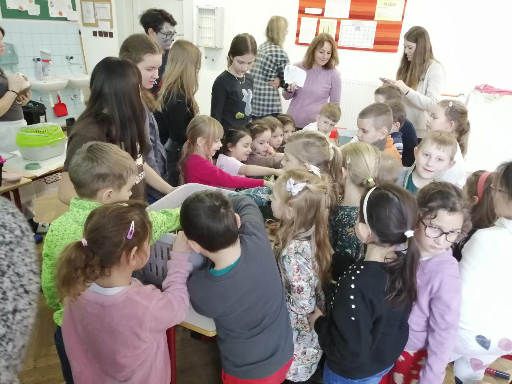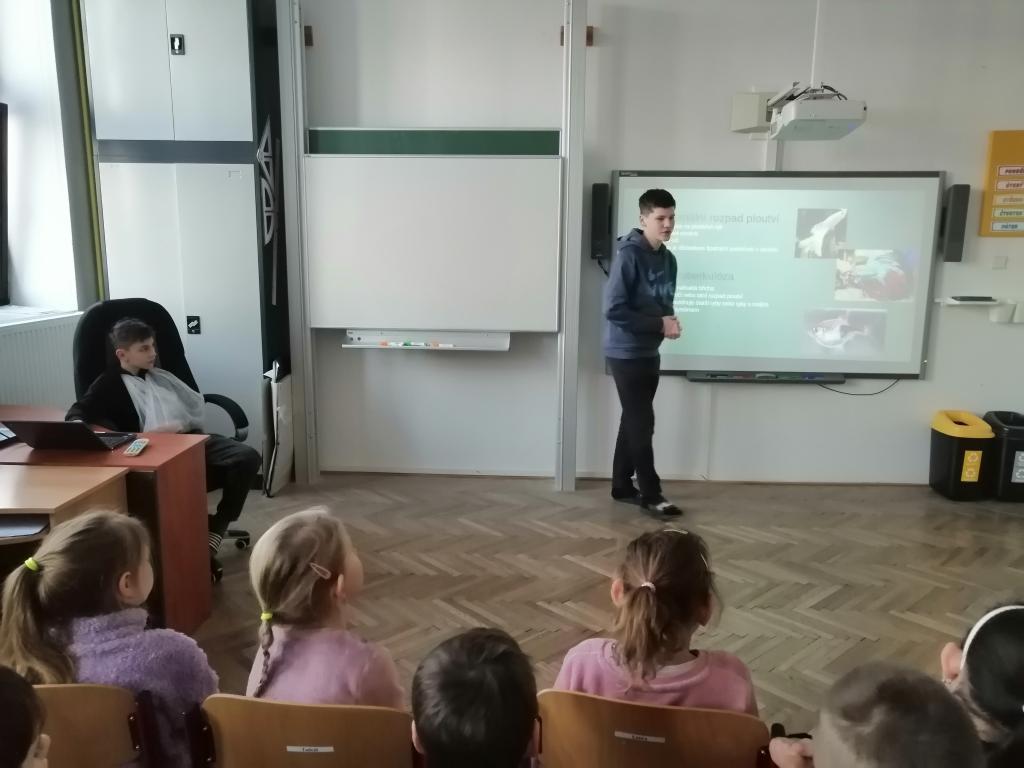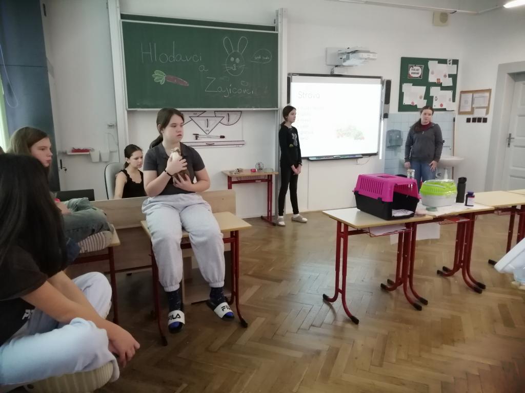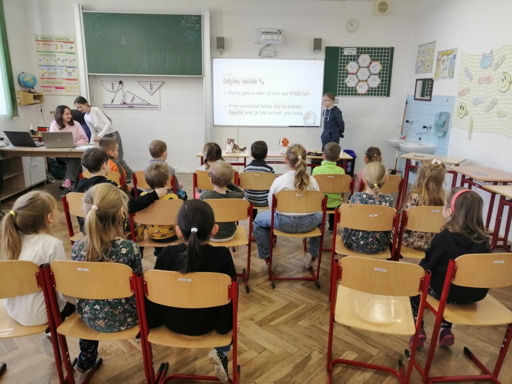 Druhý lednový týden byl u nás ve znamení projektu "Máme rádi zvířata". Tento den jsme jako školáci zažili poprvé. Žáci z druhého stupně si pro nás připravili povídání o svých domácích mazlíčcích a některé z nich také s sebou do školy i přinesli! Byl to pro nás netradiční den a moc se nám líbil. Dozvěděli jsme se spoustu zajímavostí a vidět některá zvířata naživo a mít možnost si dokonce na některá i sáhnout - to bylo něco!!! Zaujalo nás i povídání o cenných kamenech, nebo o digitálních mikroskopech s ukázkou práce s nimi. Už se těšíme, až budeme velcí v roli našich starších spolužáků, kteří nás tím vším provázeli a obohacovali nás o samé novoty, a budeme takto učit jiné malé děti.