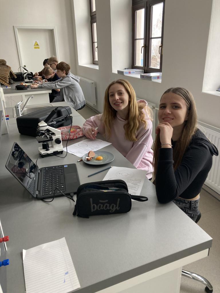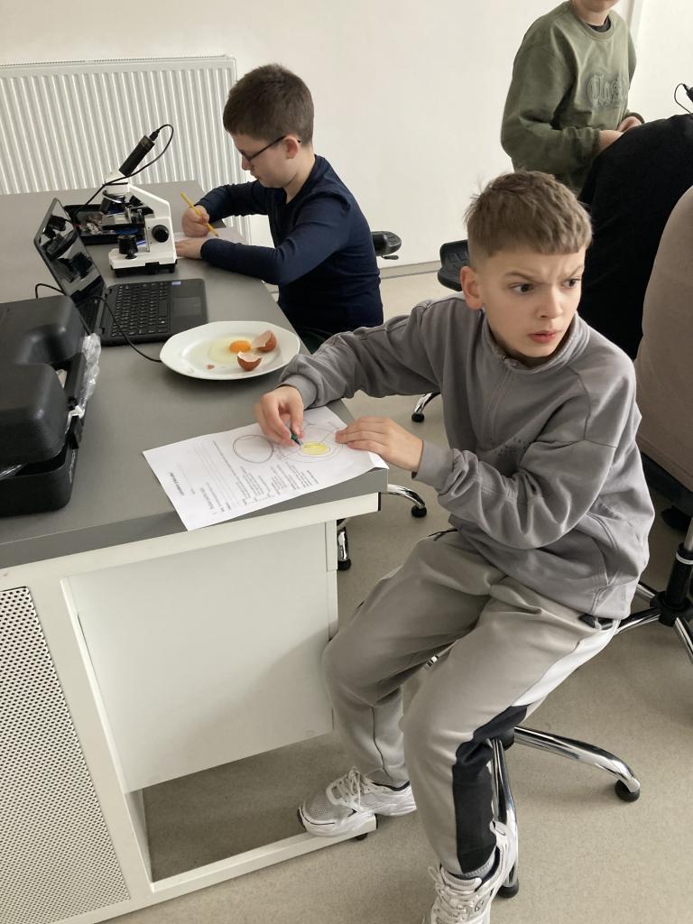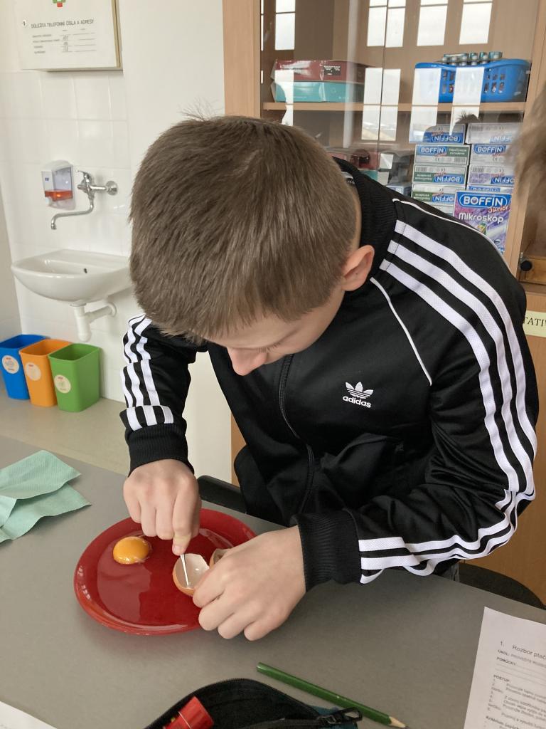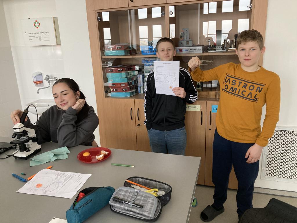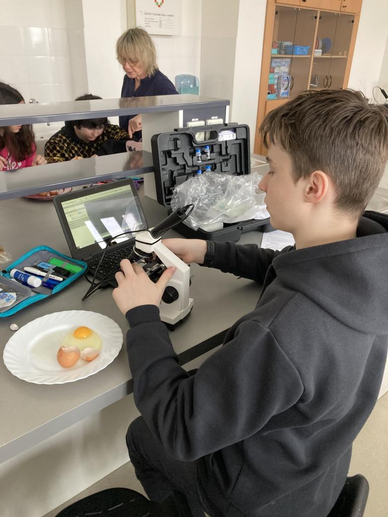 V rámci laboratorních prací v přírodopisu jsme pozorovali a popisovli stavbu ptačího vejce a na elektronovém mikroskopu jsme pozorovali stavbu vápenité skořápky.
