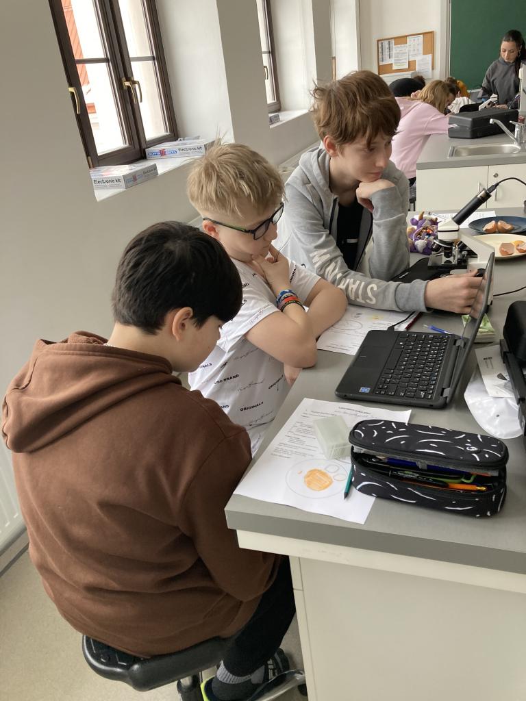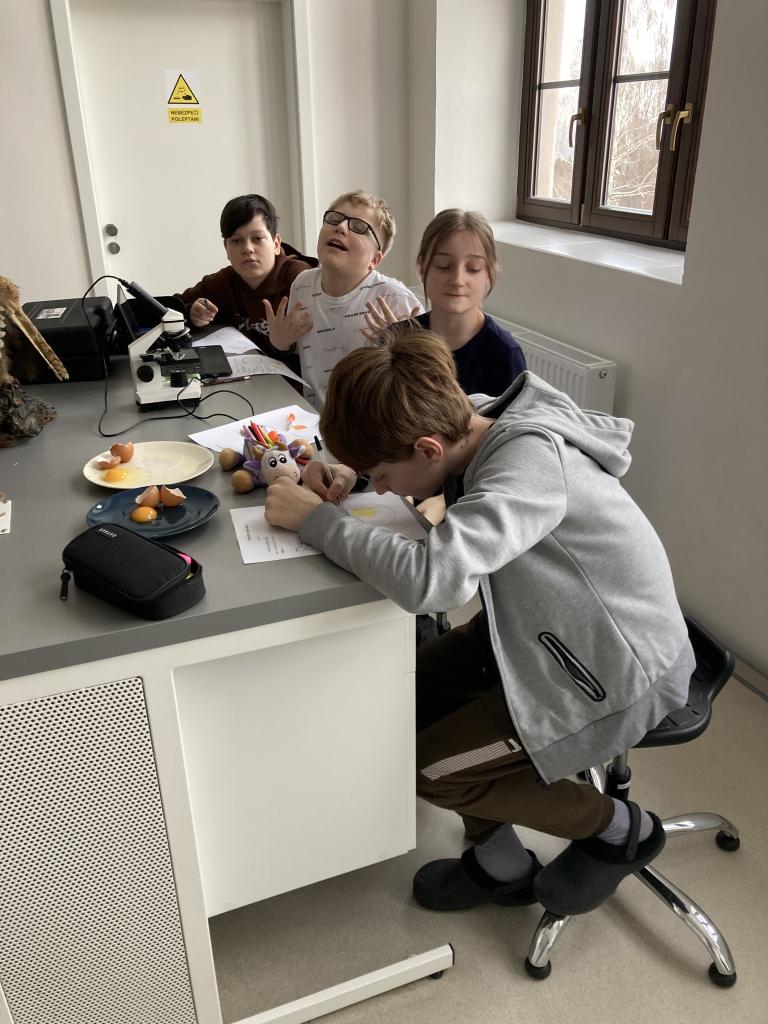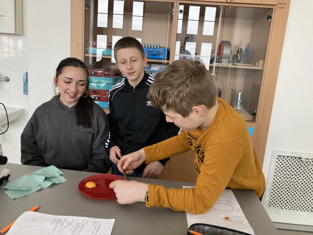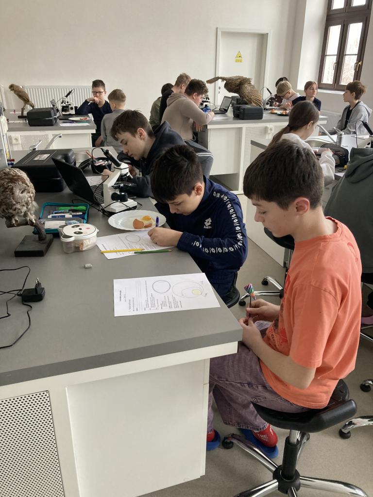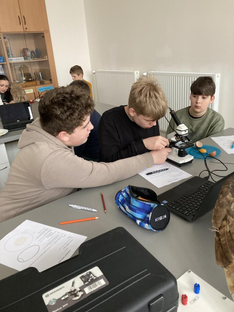 V rámci laboratorních prací v přírodopisu jsme pozorovali a popisovli stavbu ptačího vejce a na elektronovém mikroskopu jsme pozorovali stavbu vápenité skořápky.