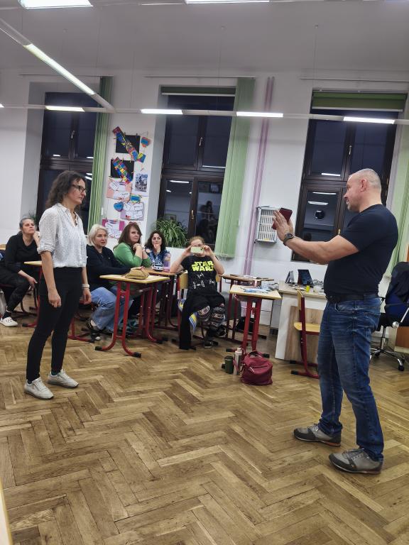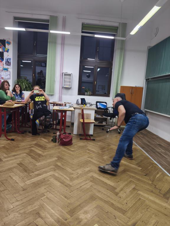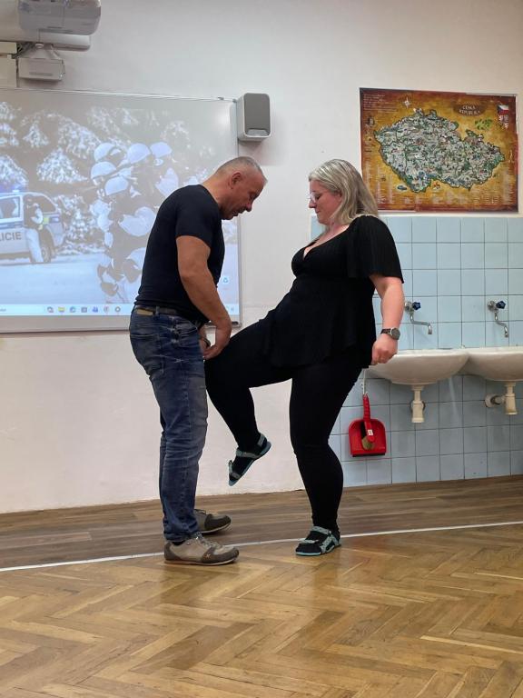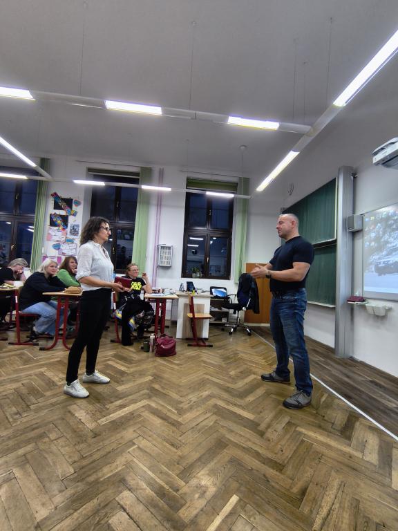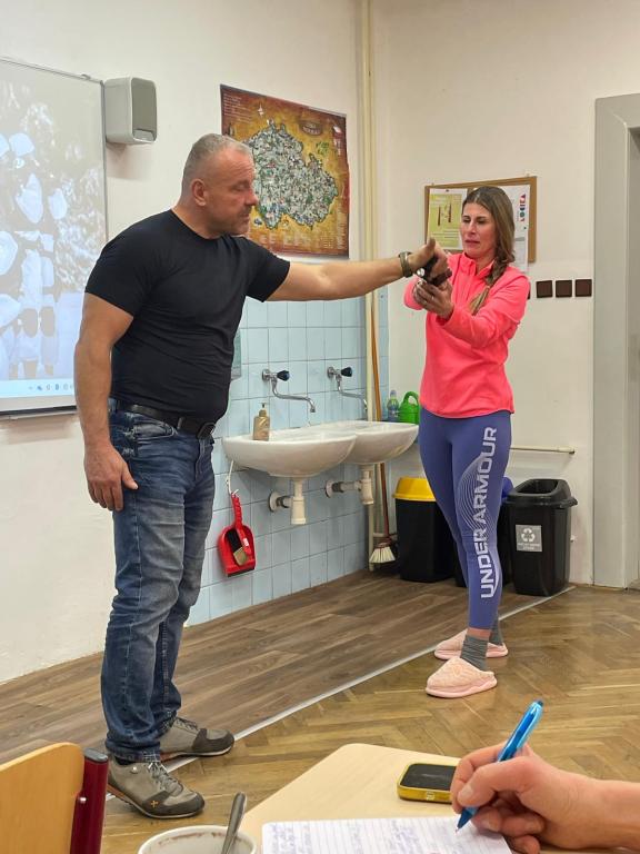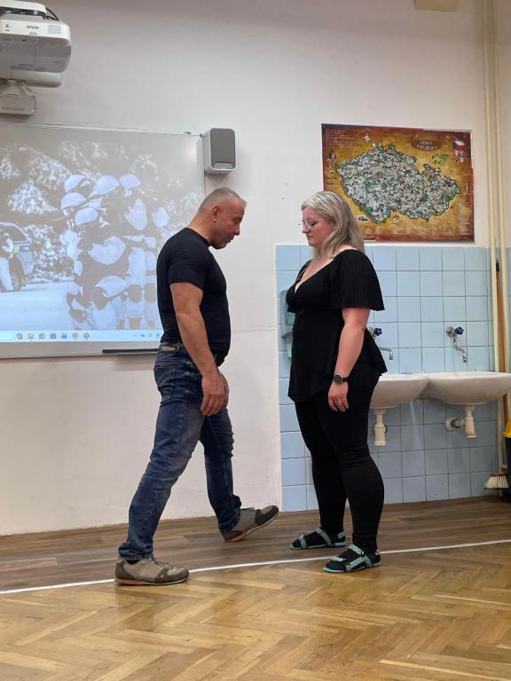 * Praktické ukázky: Velká část semináře byla věnována simulacím. Pedagogové si přímo v prostorách třídy vyzkoušeli techniky sebeobrany, bezpečné zvládání agresivního jedince a správné postupy při barikádování se v místnosti.