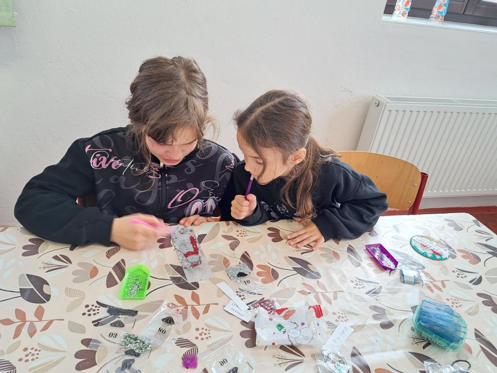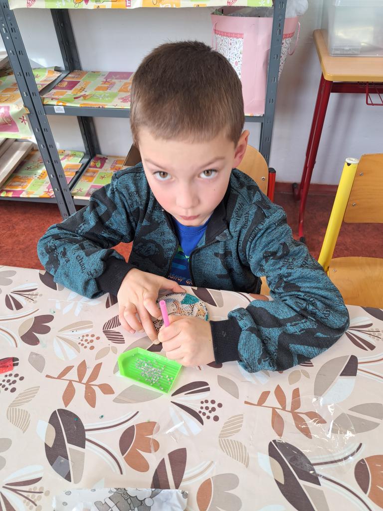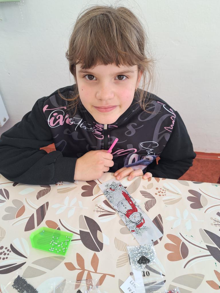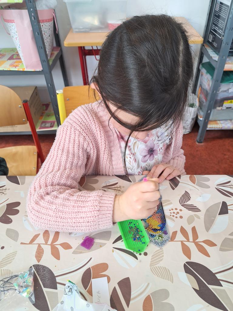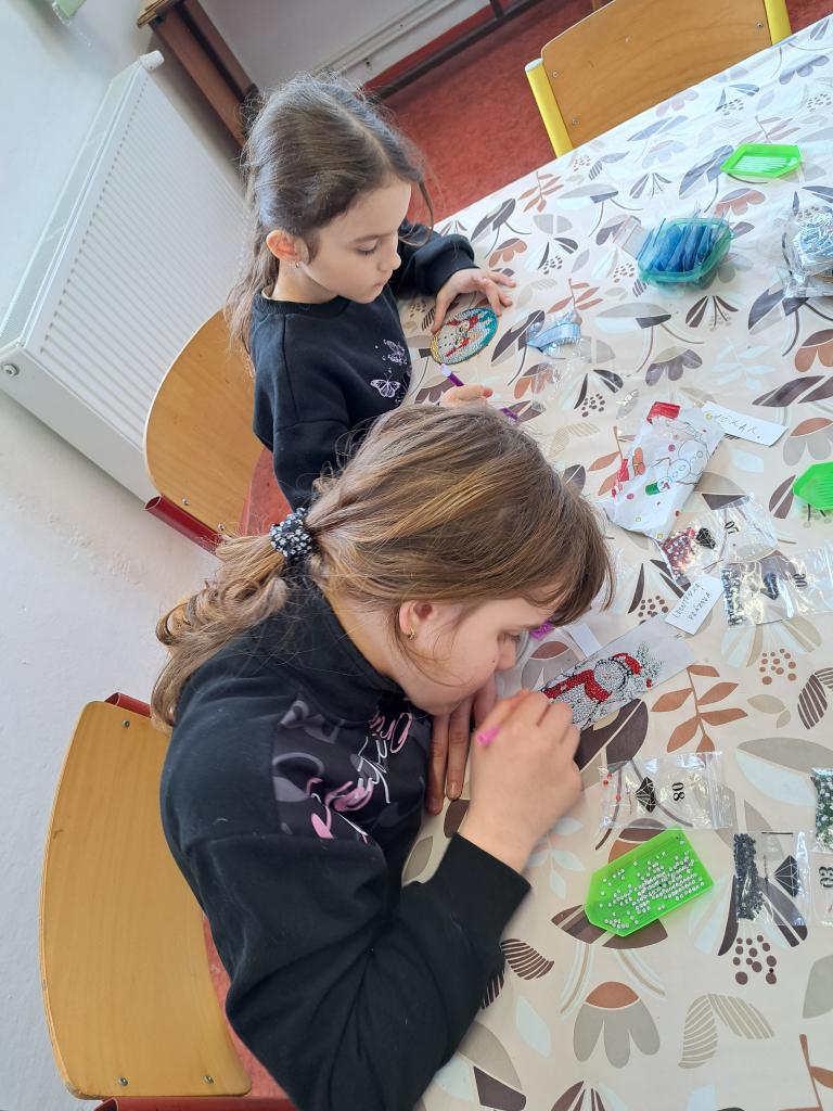 Na kroužku jsme tvořili záložky do knížek a podtácky technikou diamantového malování.