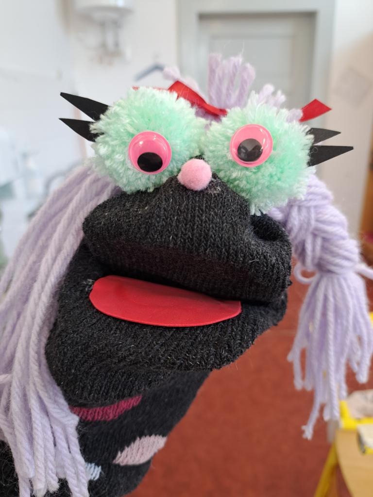 Také jsme začali vyrábět ponožkového maňáska.