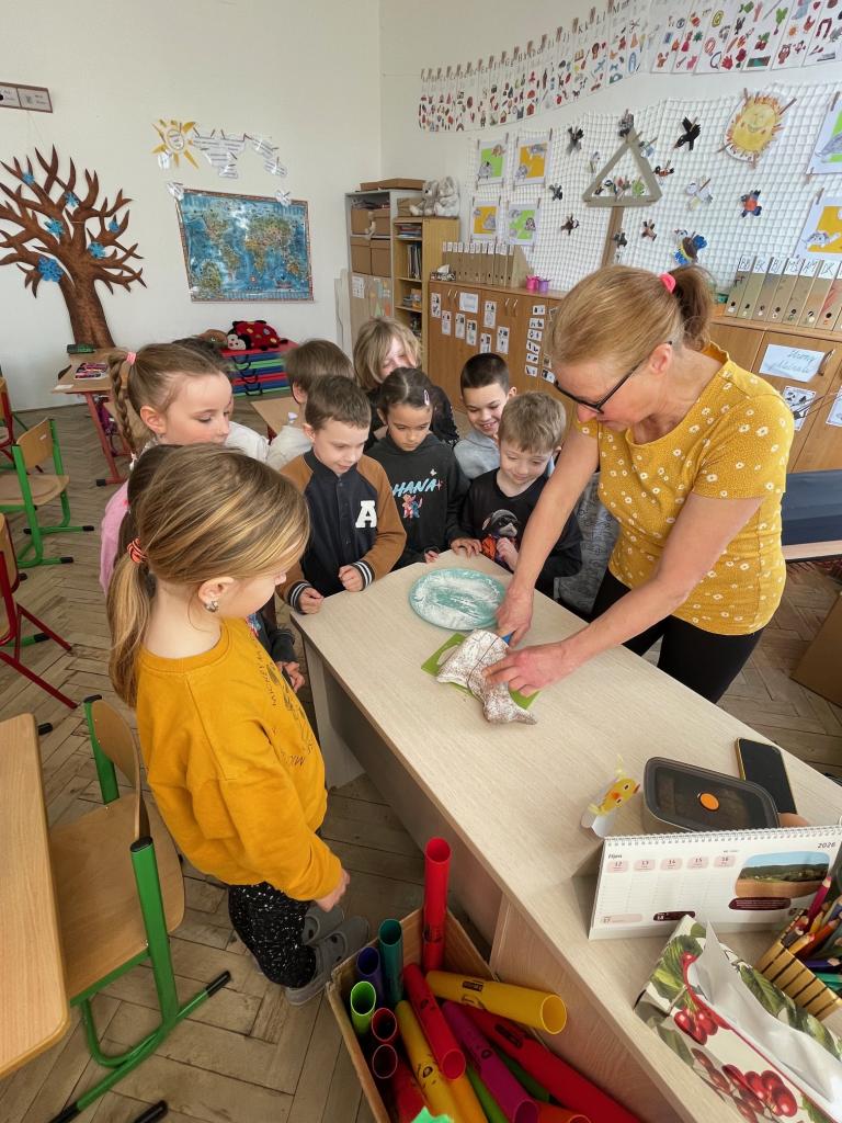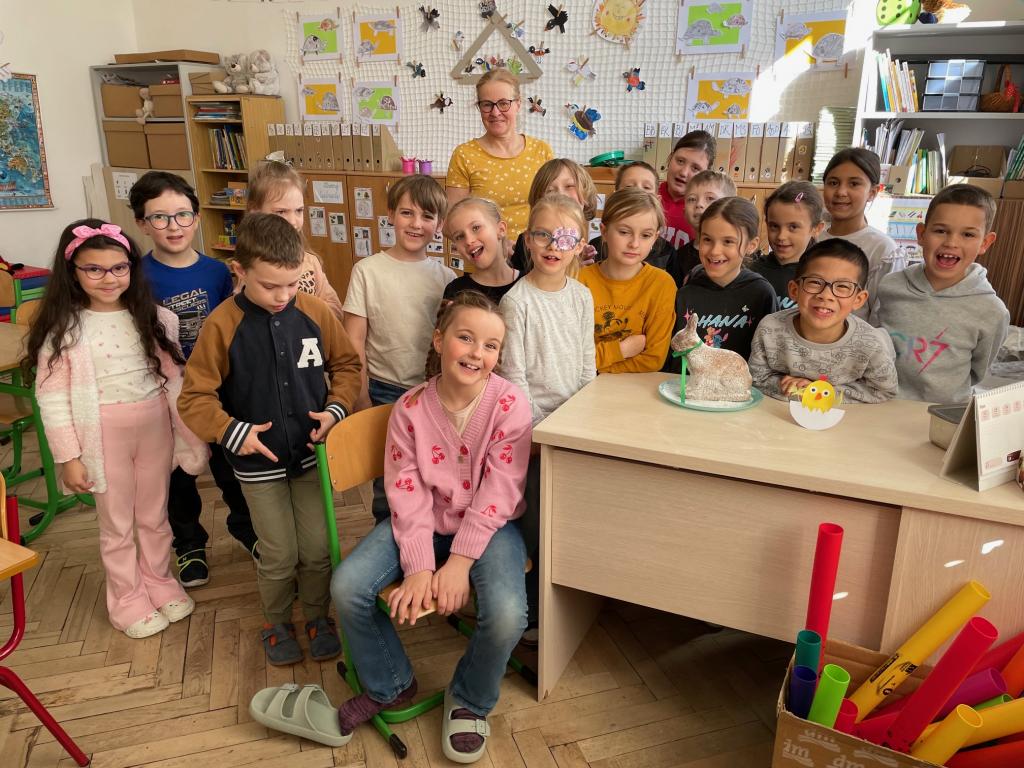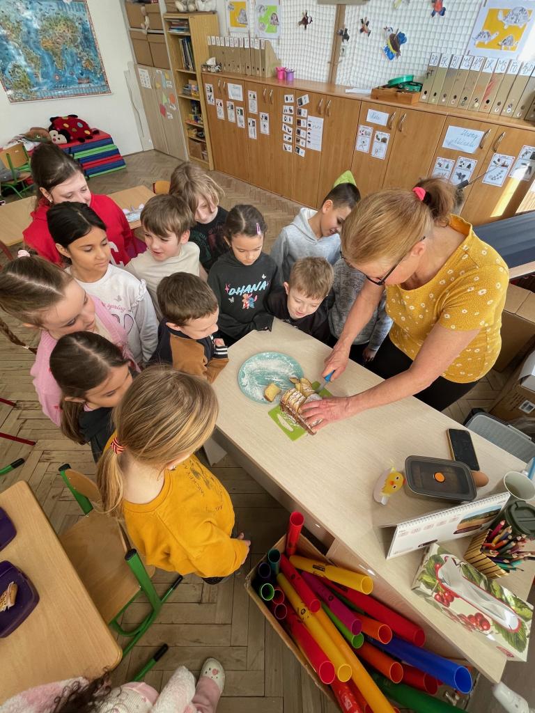 Paní asistentka nám na středu upekla velikonočního zajíčka. Děkujeme