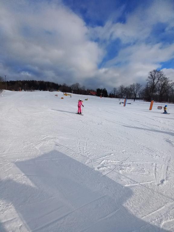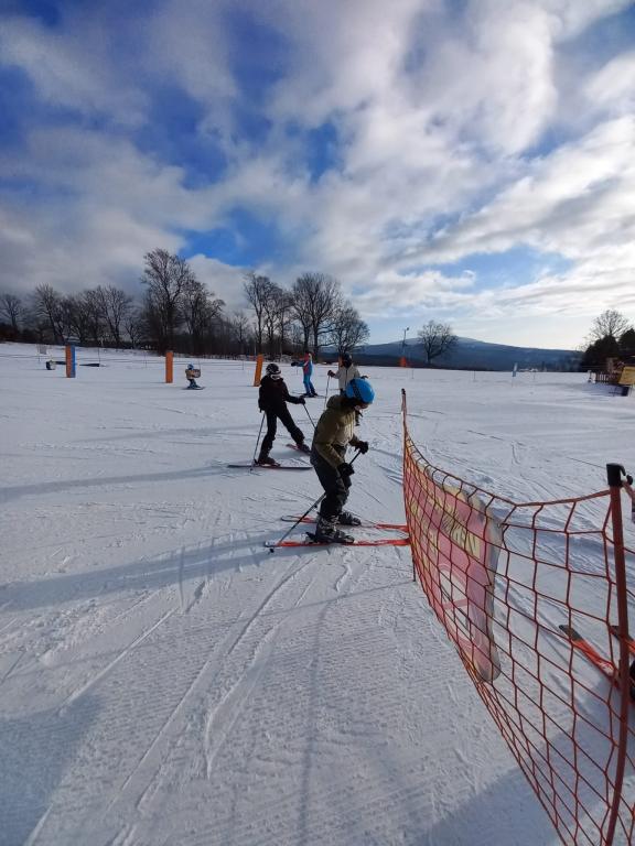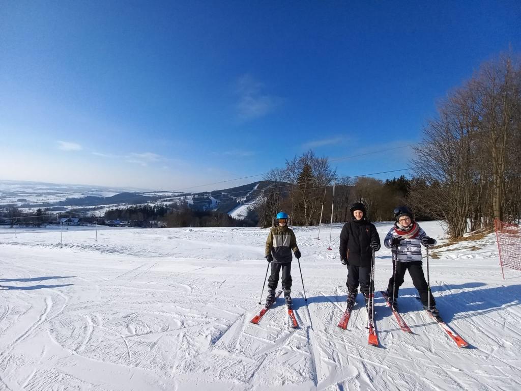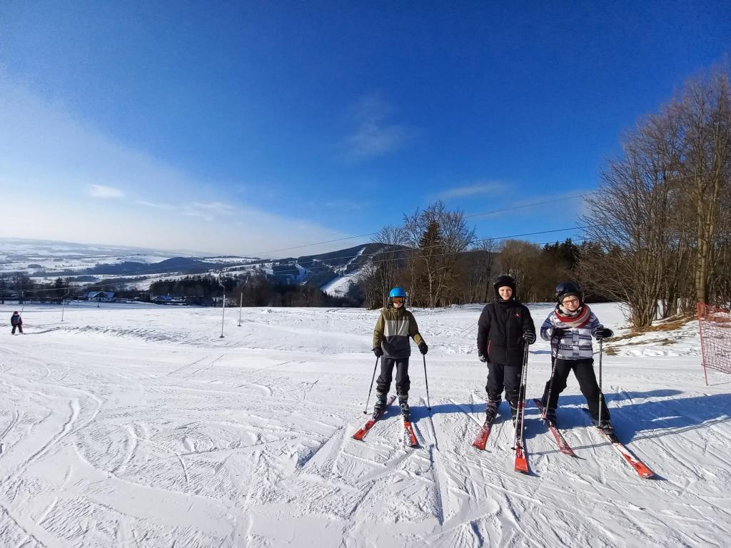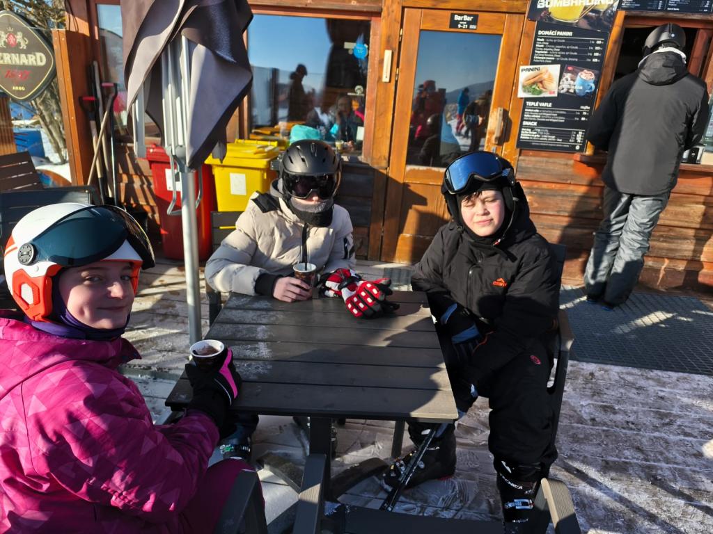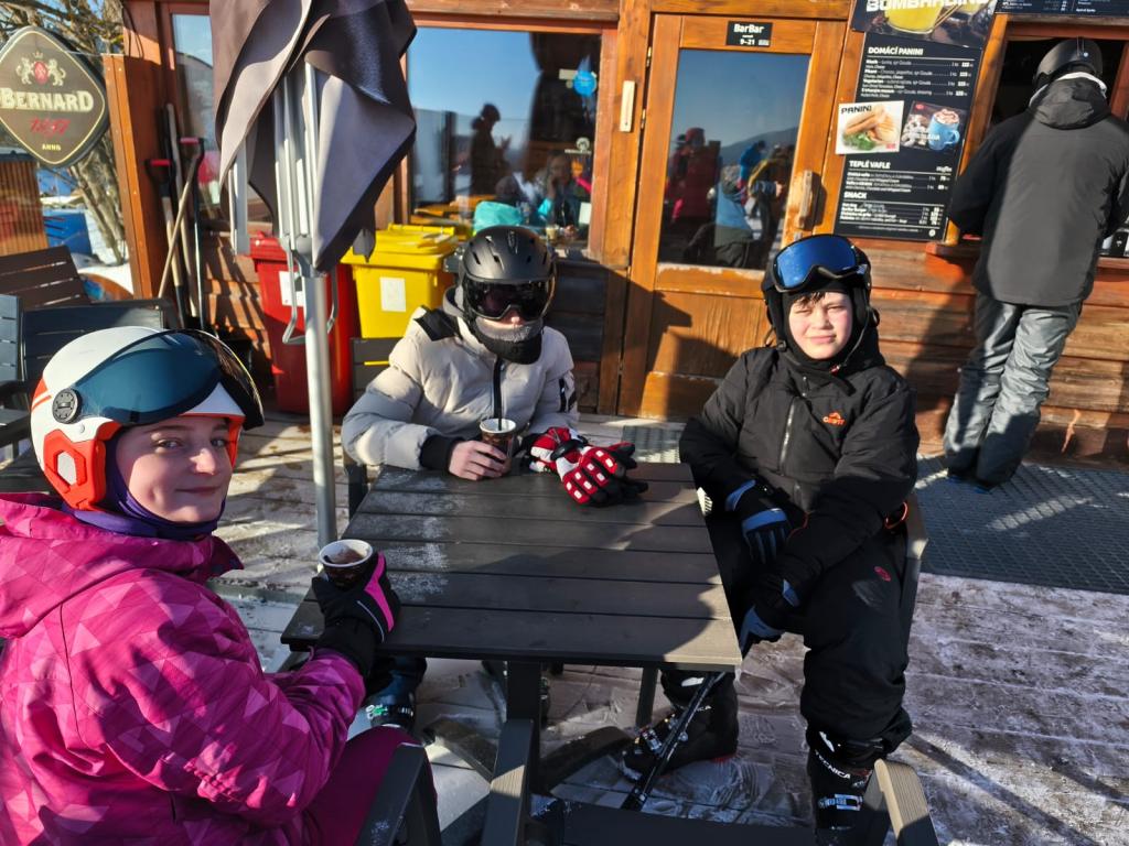 Dopoledne patřilo sjezdovkám, které byly čerstvě zasněžené technickým sněhem a vyžehlené do dokonalého manšestru. Ten zvuk křupajícího sněhu pod hranami lyží byl prostě návykový! Krom toho nás na svahu také čekaly parádní kopečky na skákání, kde si ti odvážnější z nás vyzkoušeli první kontrolované lety, zatímco ostatní pilovali stabilitu v novém terénu. Radost z pohybu byla podtržena tím, že jsme měli sjezdovky v podstatě pro sebe.