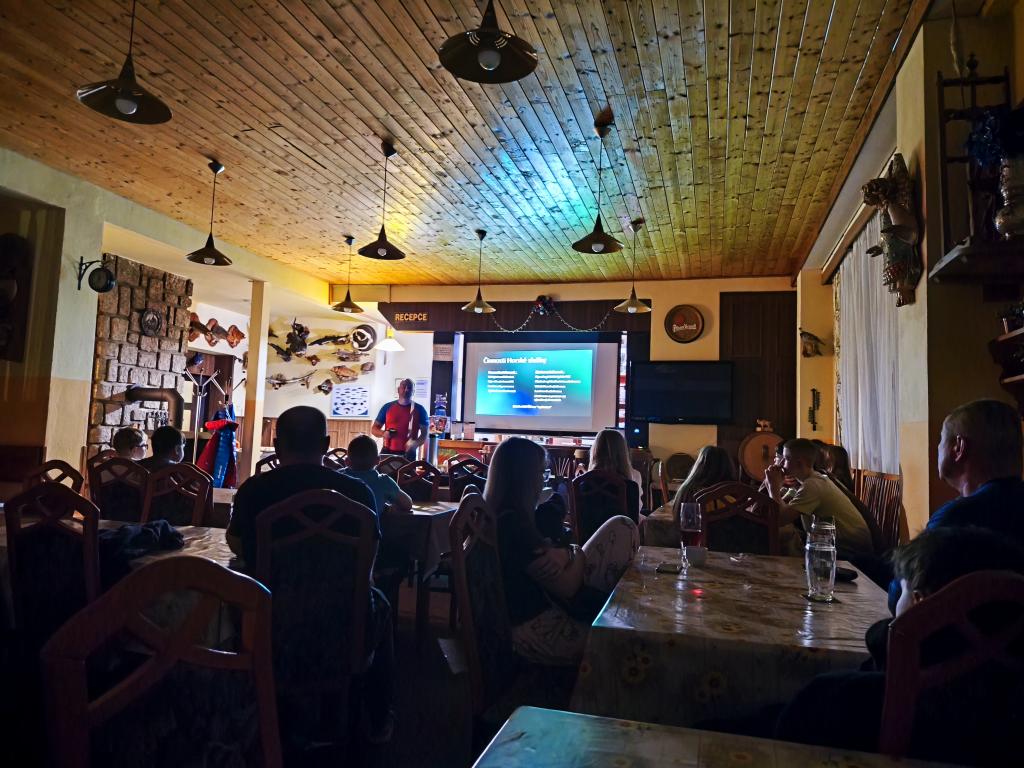 Večerní program byl sice klidnější, ale o to intenzivnější. Navštívil nás pracovník Horské služby, který nám připravil strhující přednášku. Nešlo o žádné suché poučky – vyprávěl nám reálné případy z praxe, které se dějí jen kousek od nás.