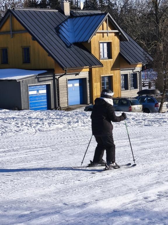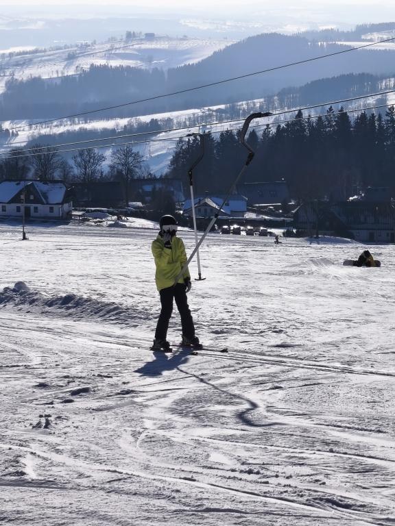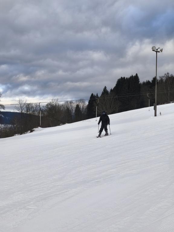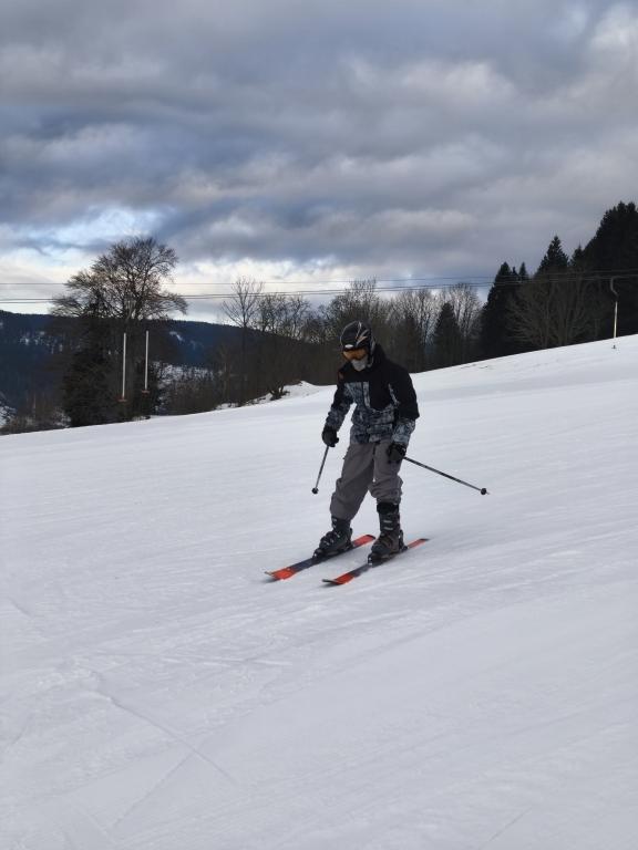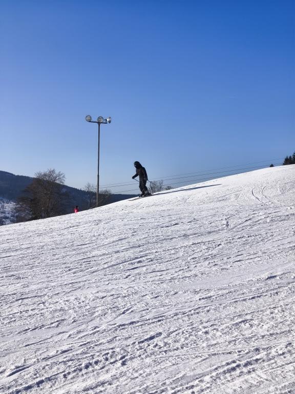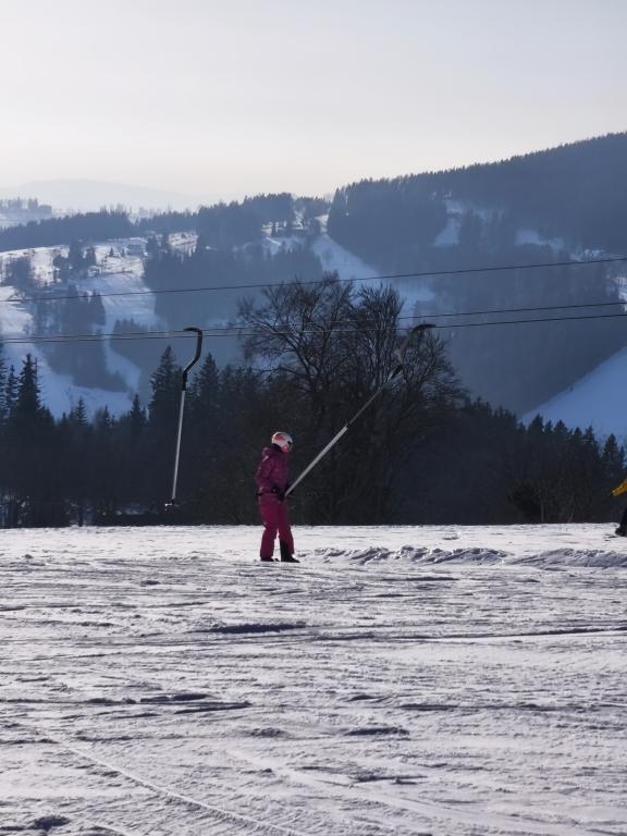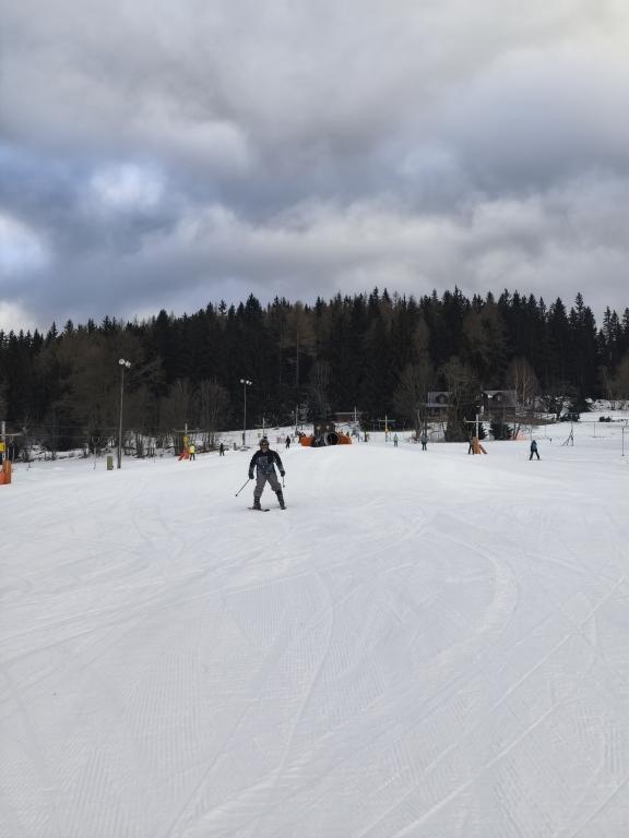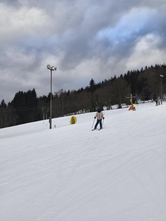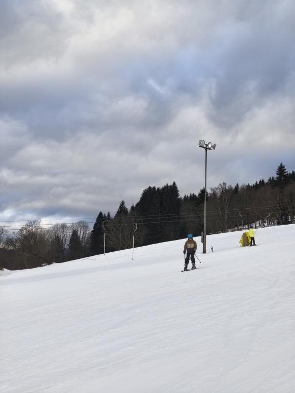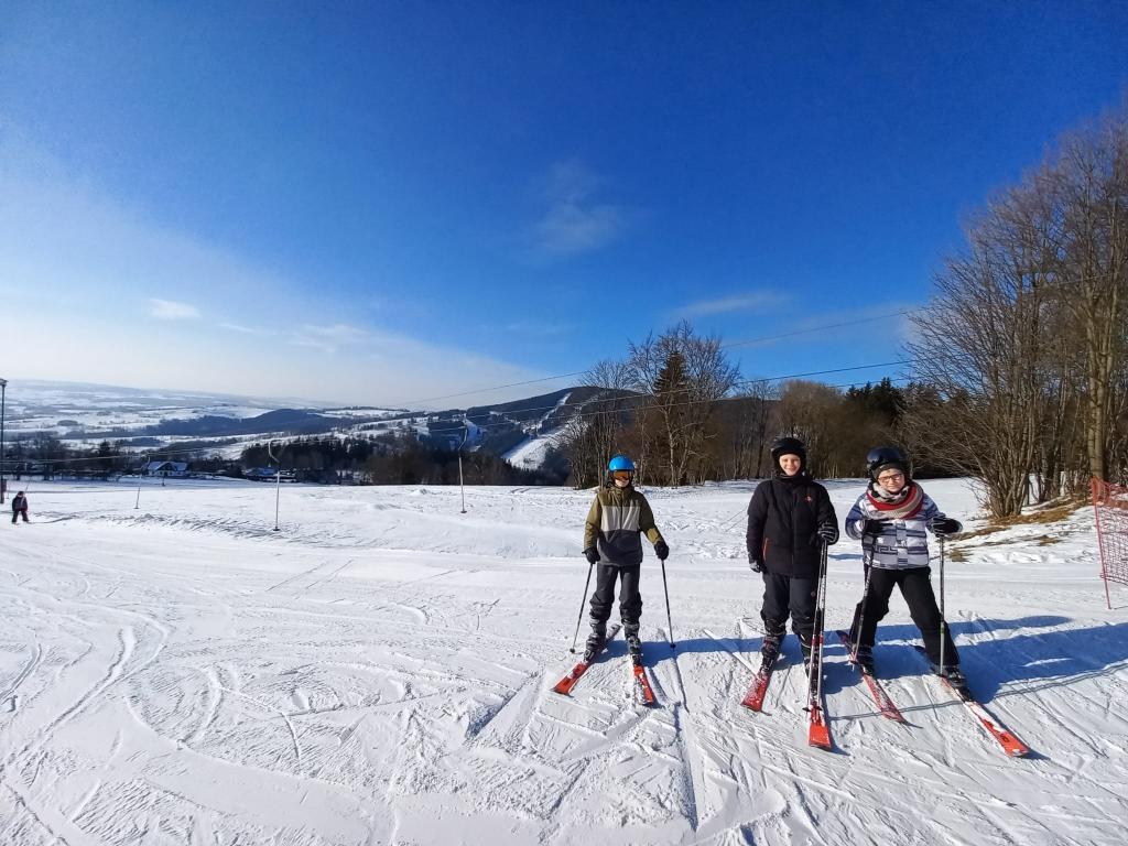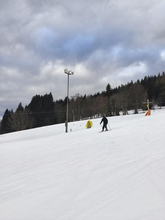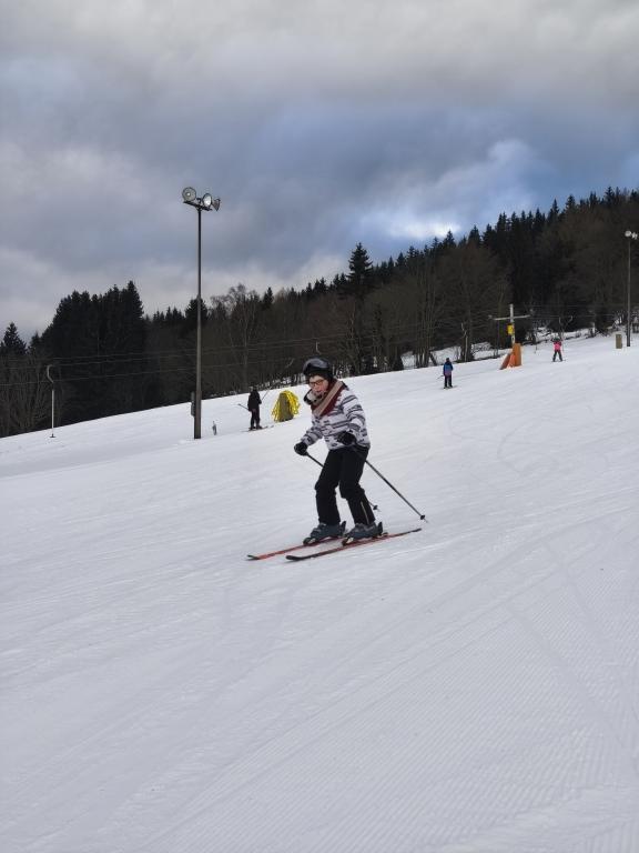 Dnes jsme se navíc přesunuli do nového terénu. Žáci se rozdělili podle svých schopností a odvahy na dvě sjezdovky: