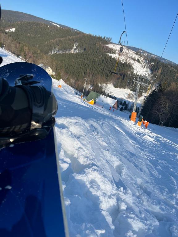 Modrá sjezdovka: Zde pilovali techniku ti, kteří si chtěli jízdu především užít v rytmu dlouhých oblouků a v klidu pracovat na stabilitě, nebo výzev v podobě kopečků a případných skoků.
