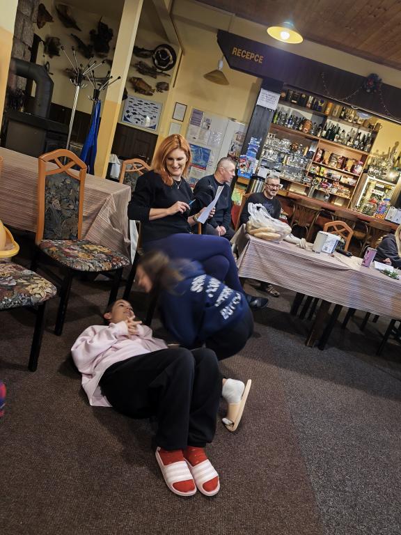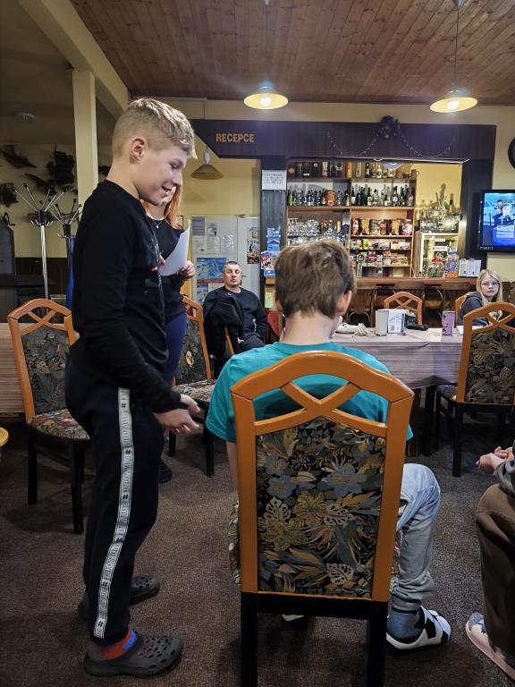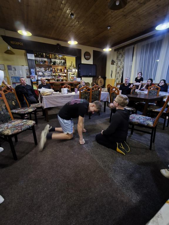 Po náročném dni na svahu jsme se večer sešli v teple chaty, ale rozhodně jsme nezaháleli. Program byl zaměřen na rozvoj komunikačních dovedností a kariérové poradenství, ovšem velmi netradiční formou.