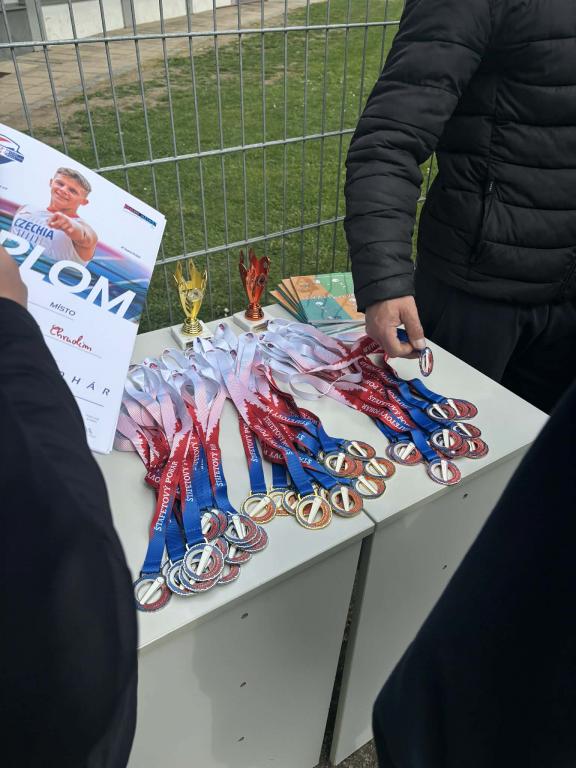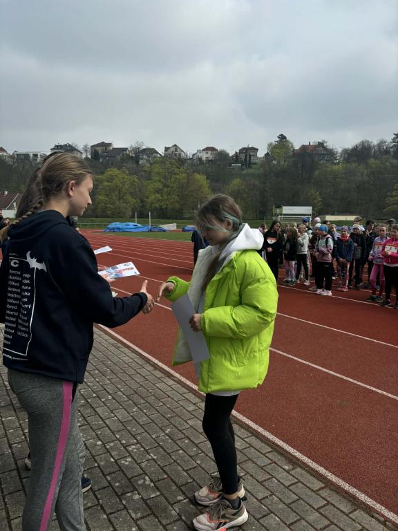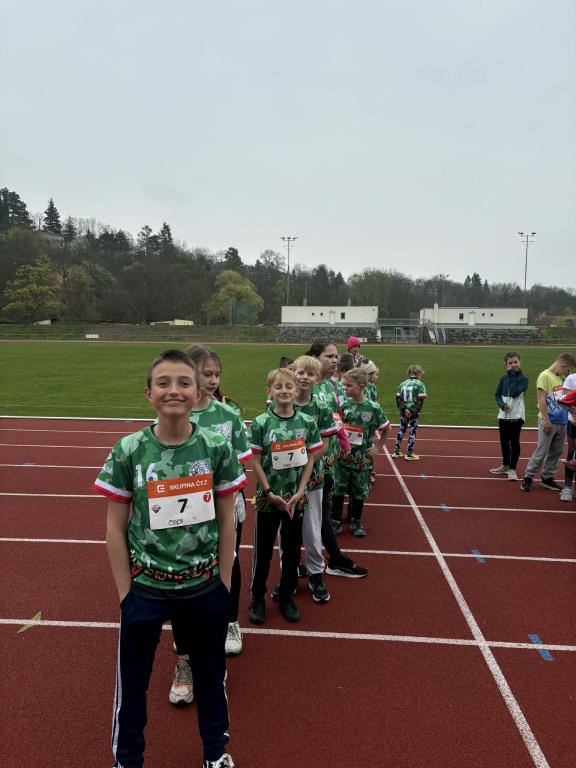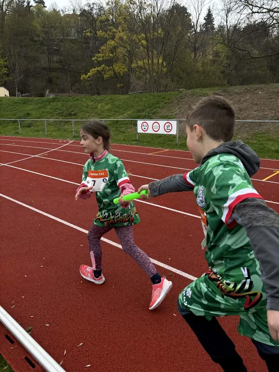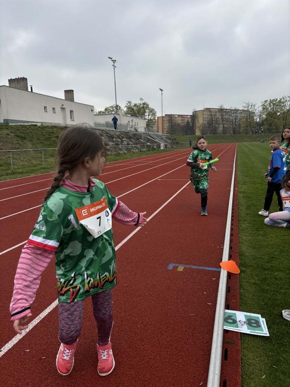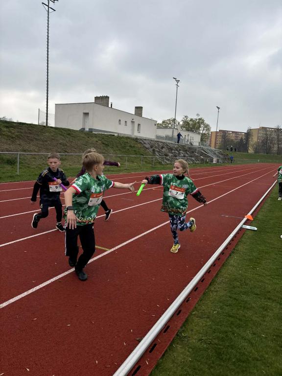 Štafetový běh 1. stupně na atletickém stadionu Emila Zátopka v Chrudimi