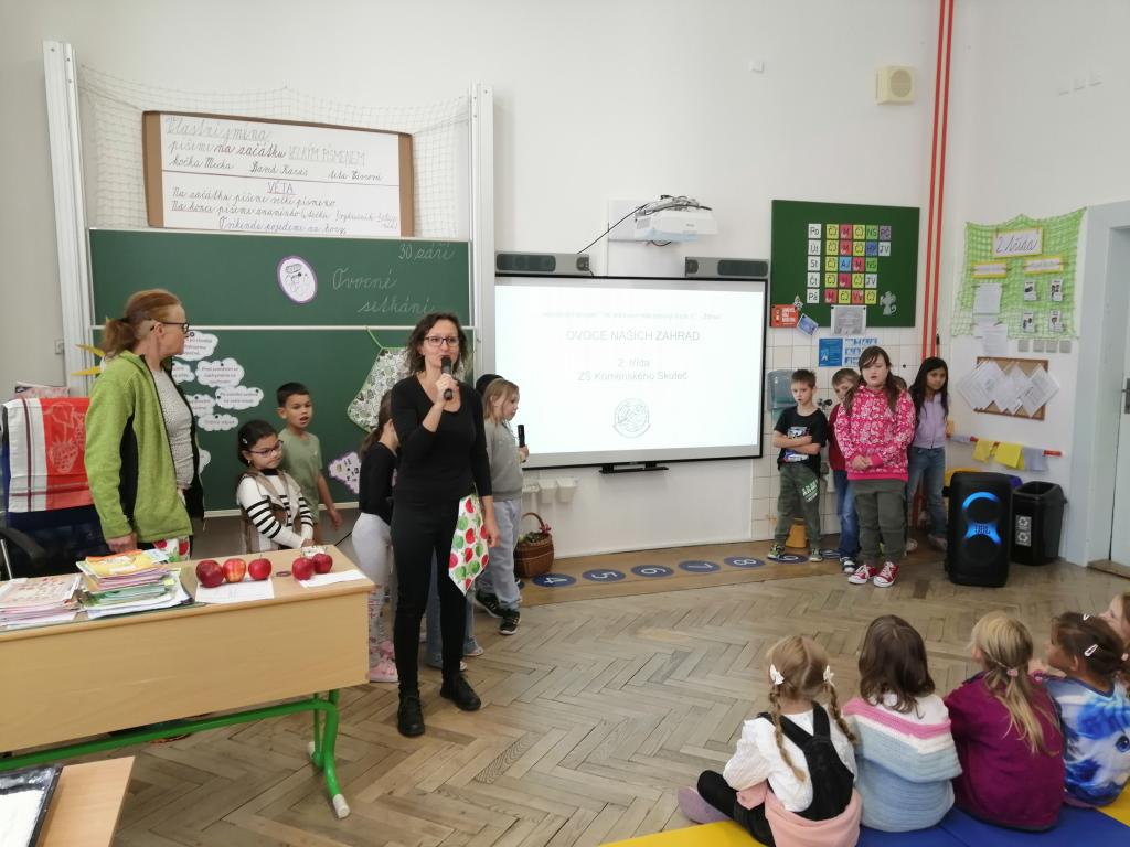 Pátý týden ve škole jsme začali programem u druháčků. Dozvěděli jsme spoustu zajímavých informací o ovoci, zahráli jsme si naučné hry, zkusili si poznávačku rostlin a hlavně jsme měli možnost okusit ochutnávku jak čerstvého a sušeného ovoce, tak i například pečených pokrmů z ovoce. Druháčkům i jejich paní učitelce moc děkujeme.