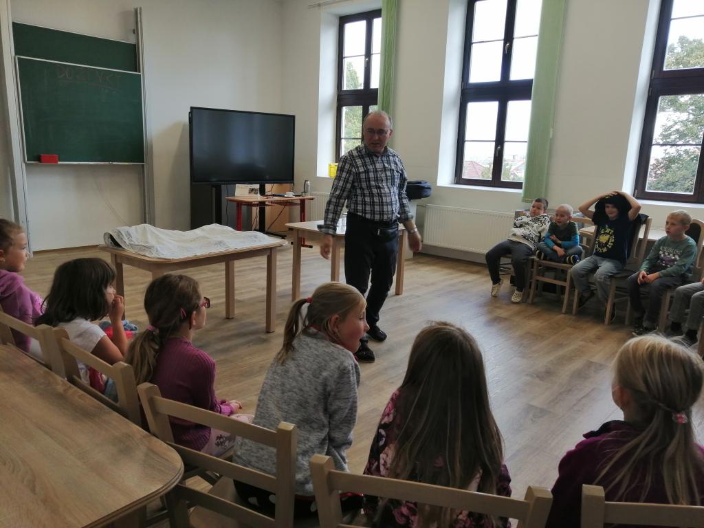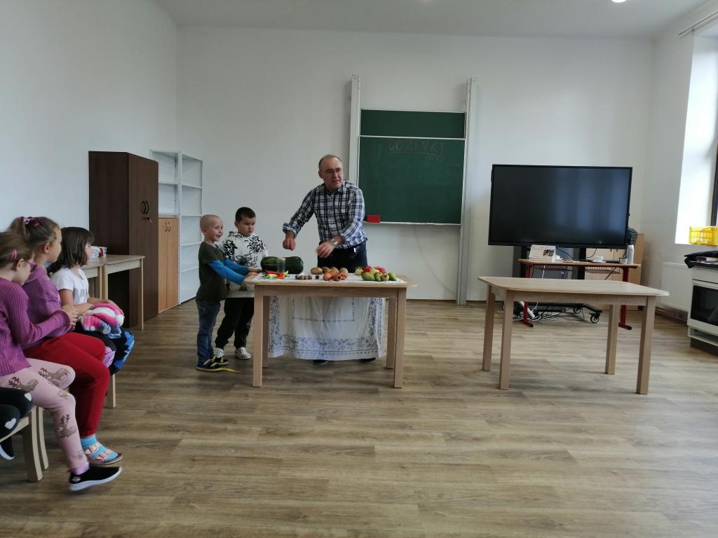 Svým programem o jídle nás obohatil i P. Matula. Dozvěděli jsme se, z čeho se vypěstují různé plody, s kterými se můžeme setkat na zahrádce, a jak je lze zužitkovat. Na závěr jsme si zazpívali písničku.