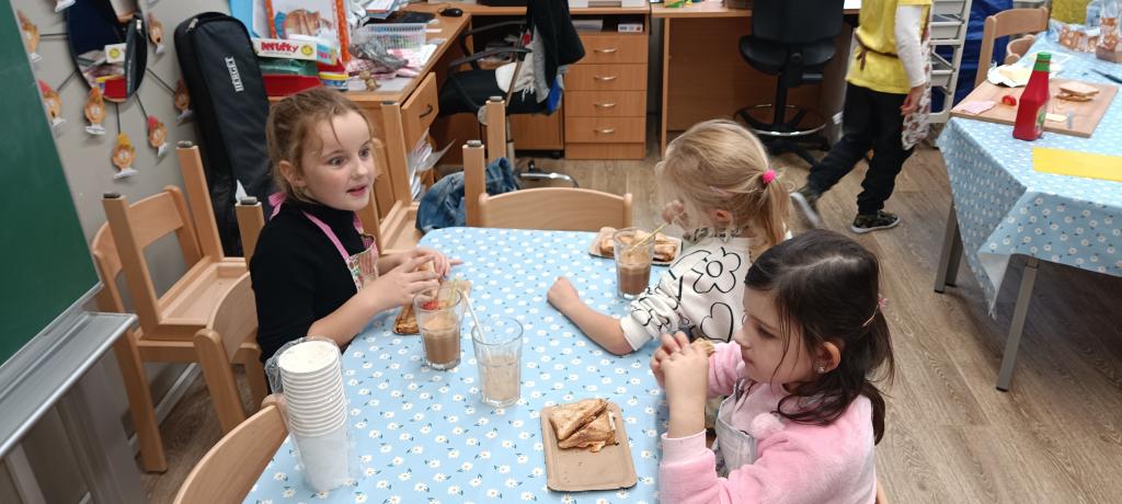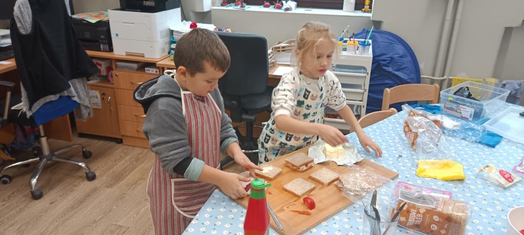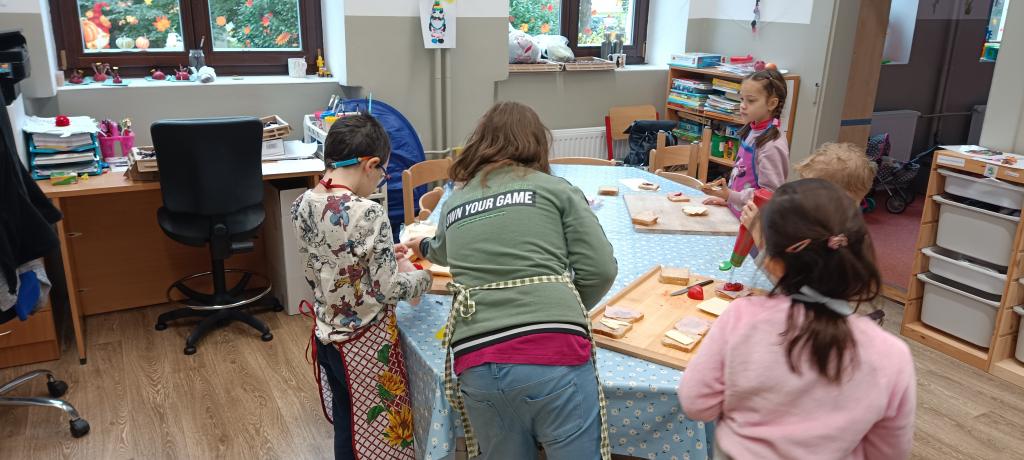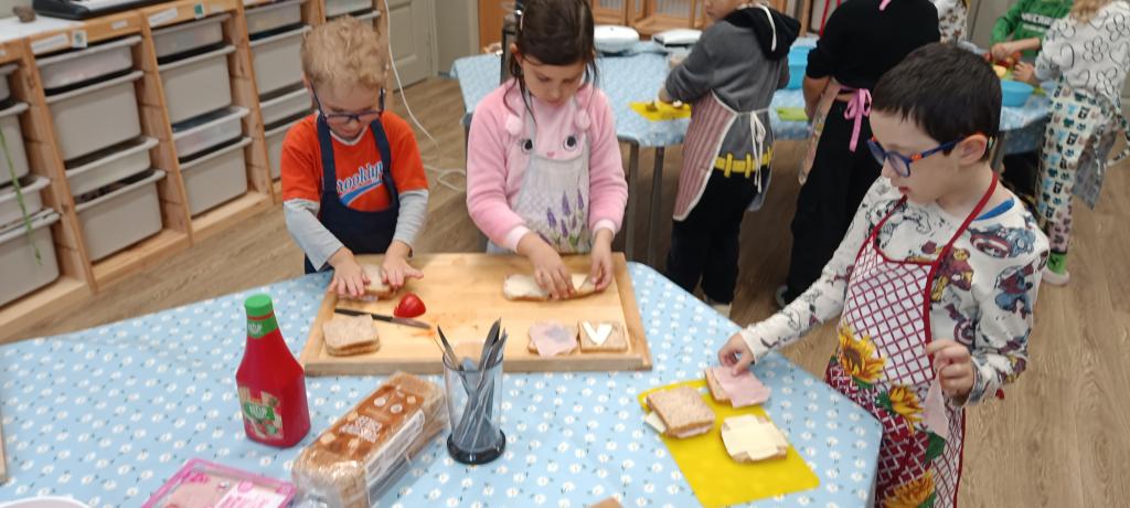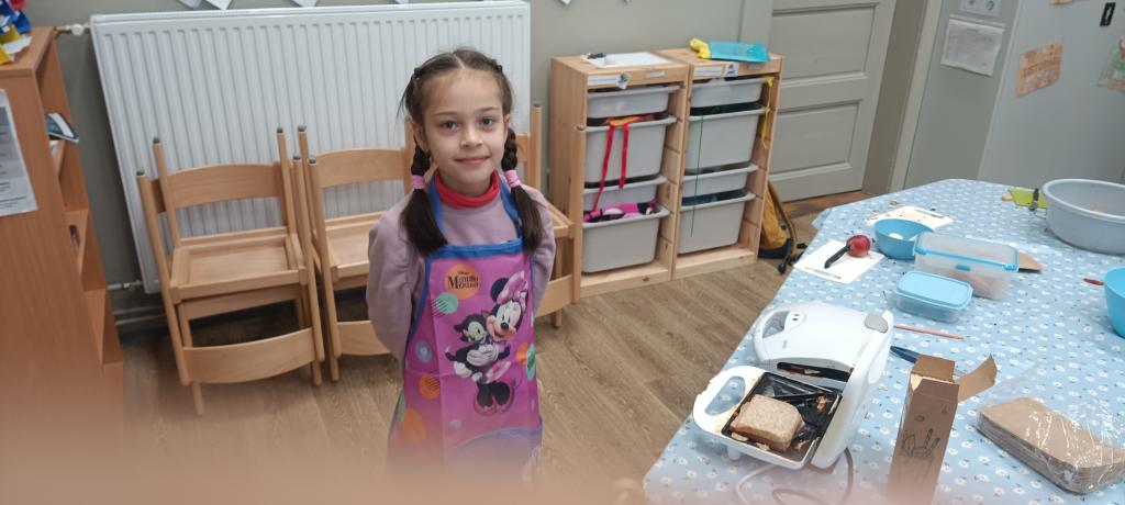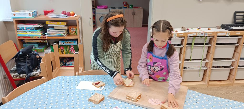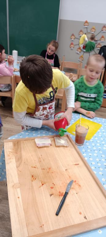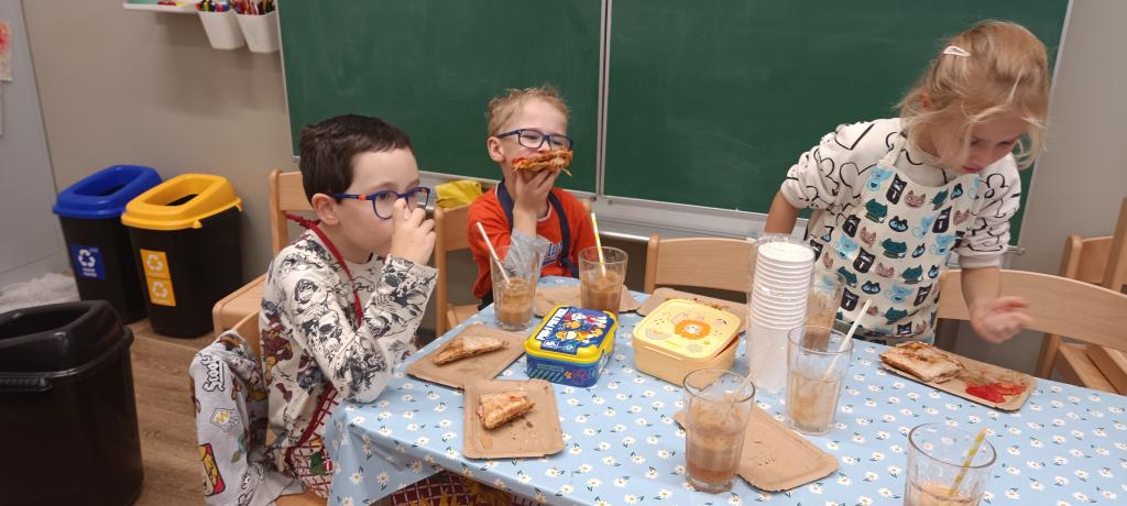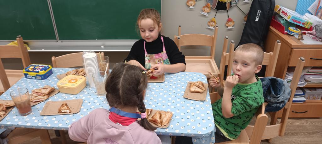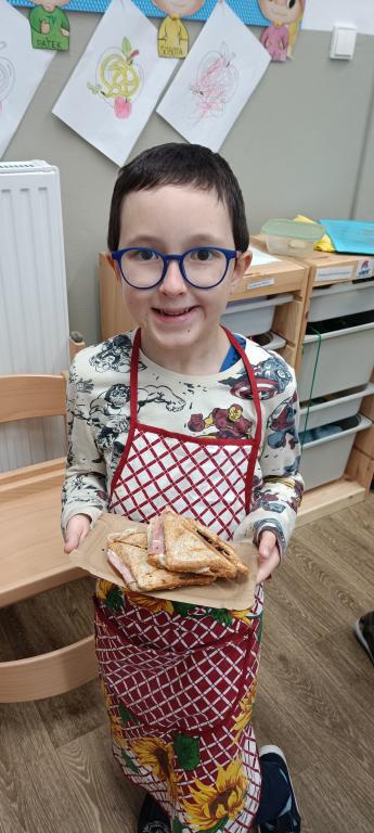 Dnes jsme si udělali celozrnné tousty se sýrem a šunkou a čerstvý jablečný mošt.