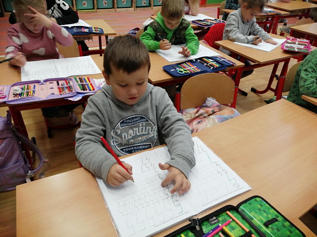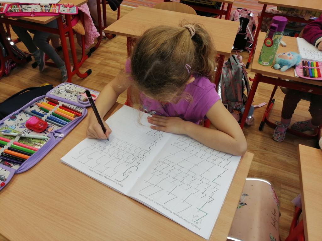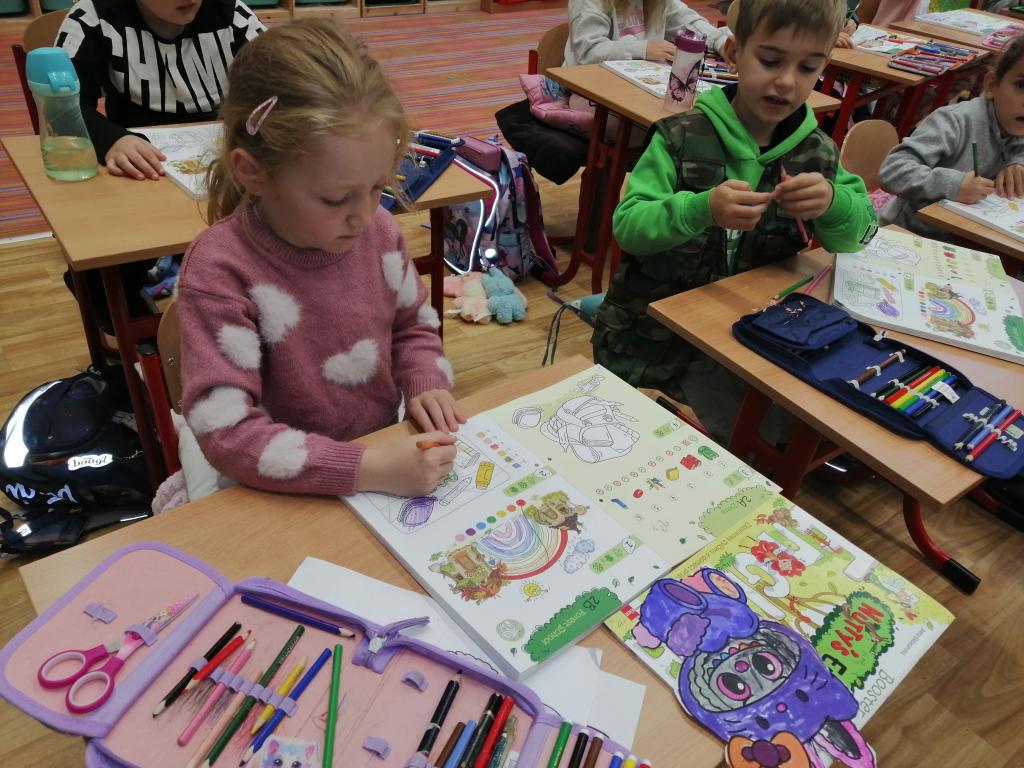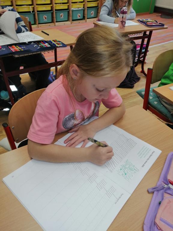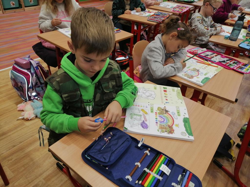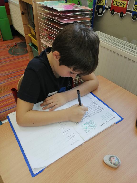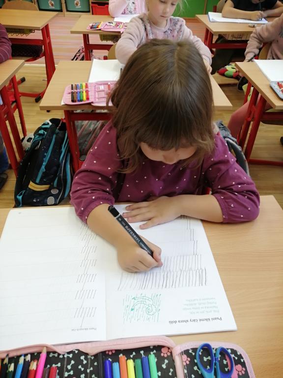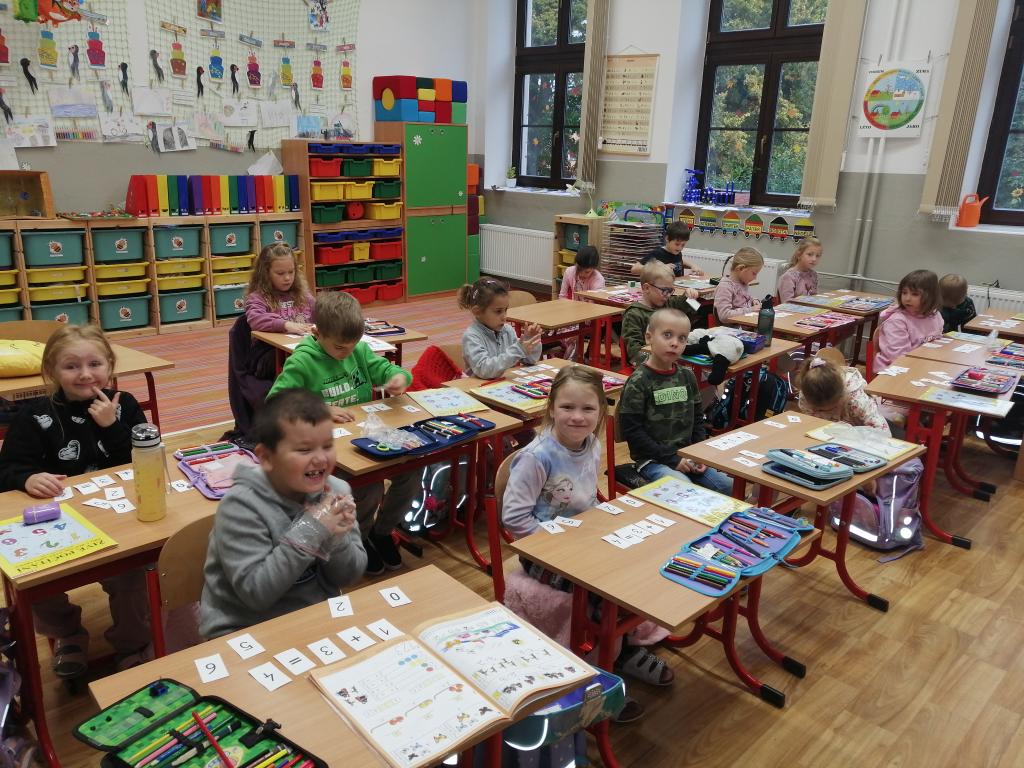 Nadále trénujeme čtení, psaní i počítání. V angličtině procvičujeme barvy. Ve všem nám pomáhá i interaktivní tabule.