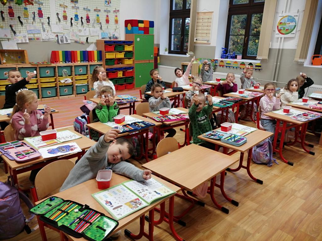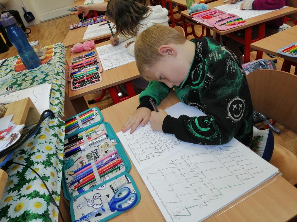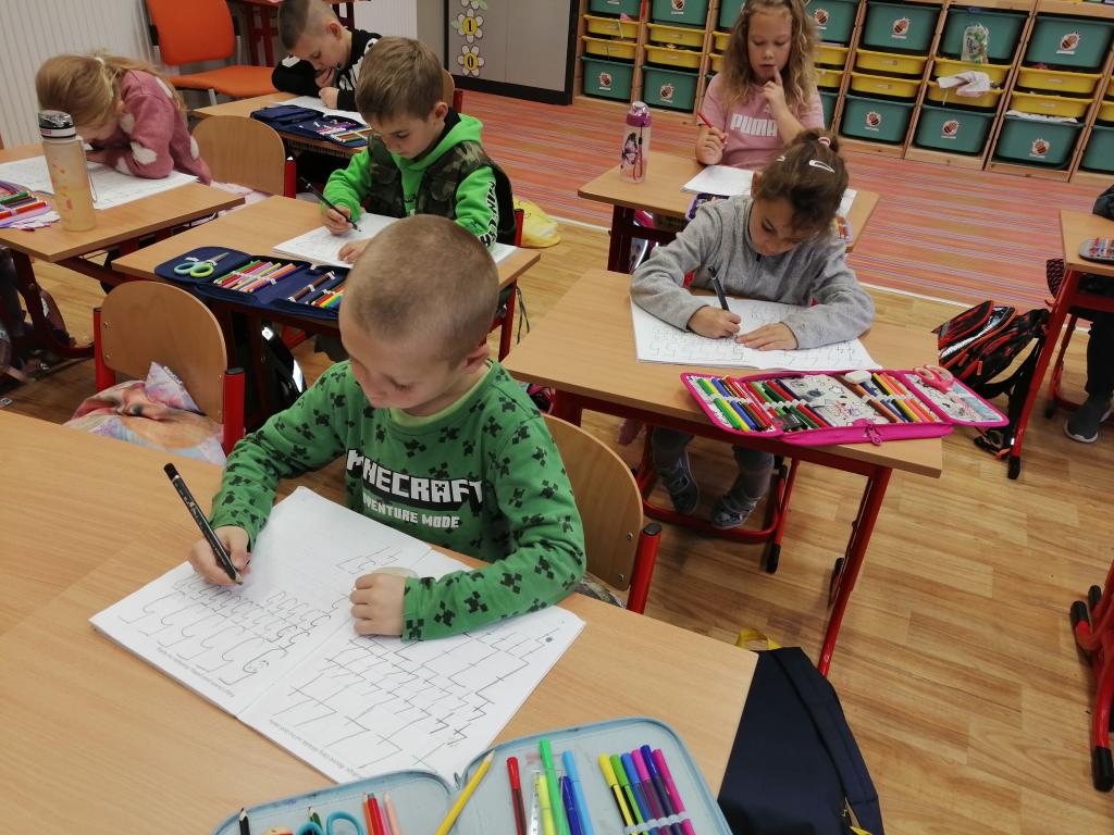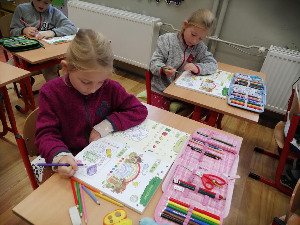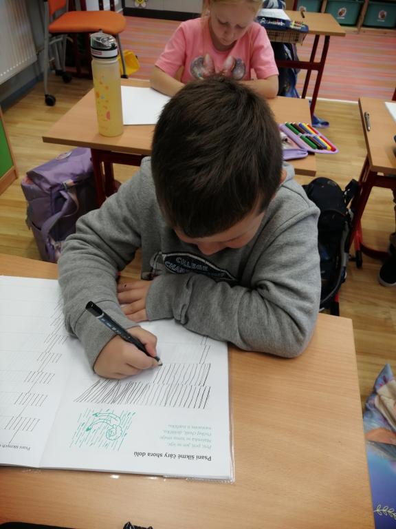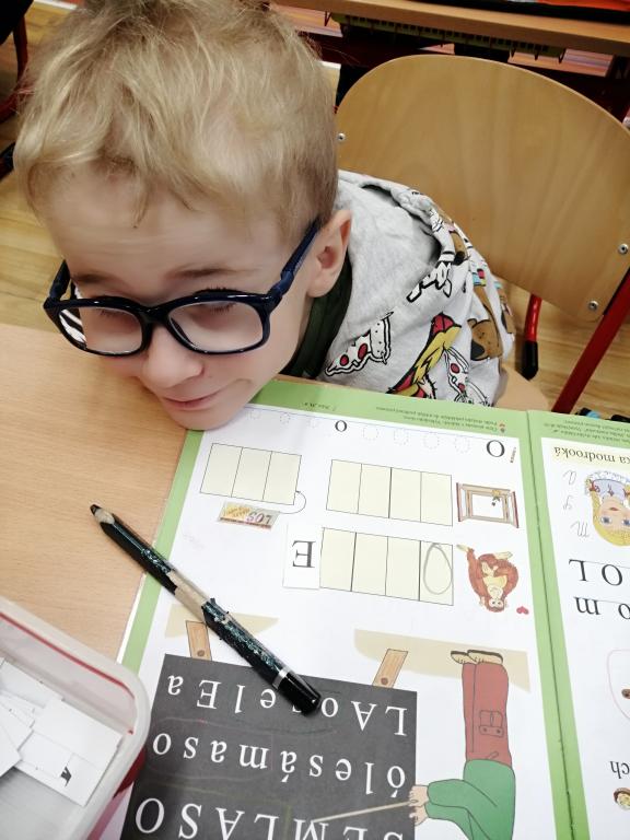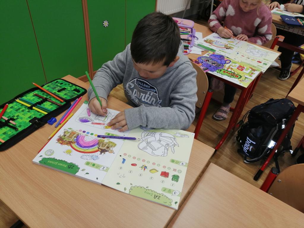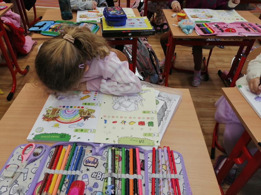 Nadále trénujeme čtení, psaní i počítání. V angličtině procvičujeme barvy. Ve všem nám pomáhá i interaktivní tabule.
