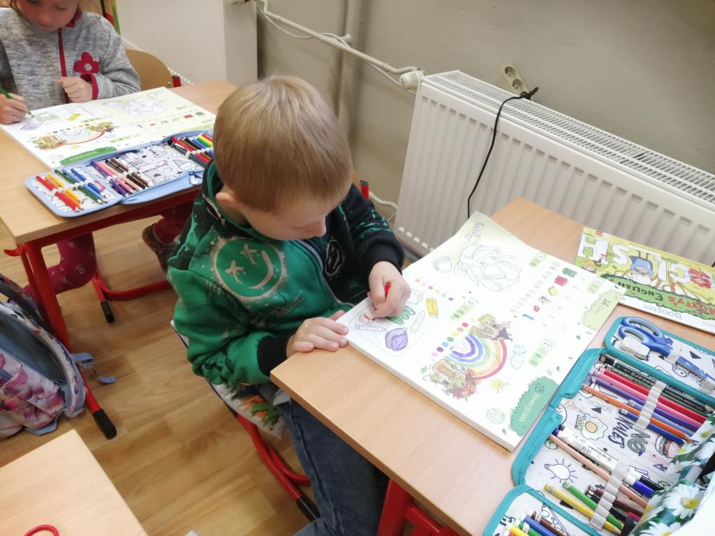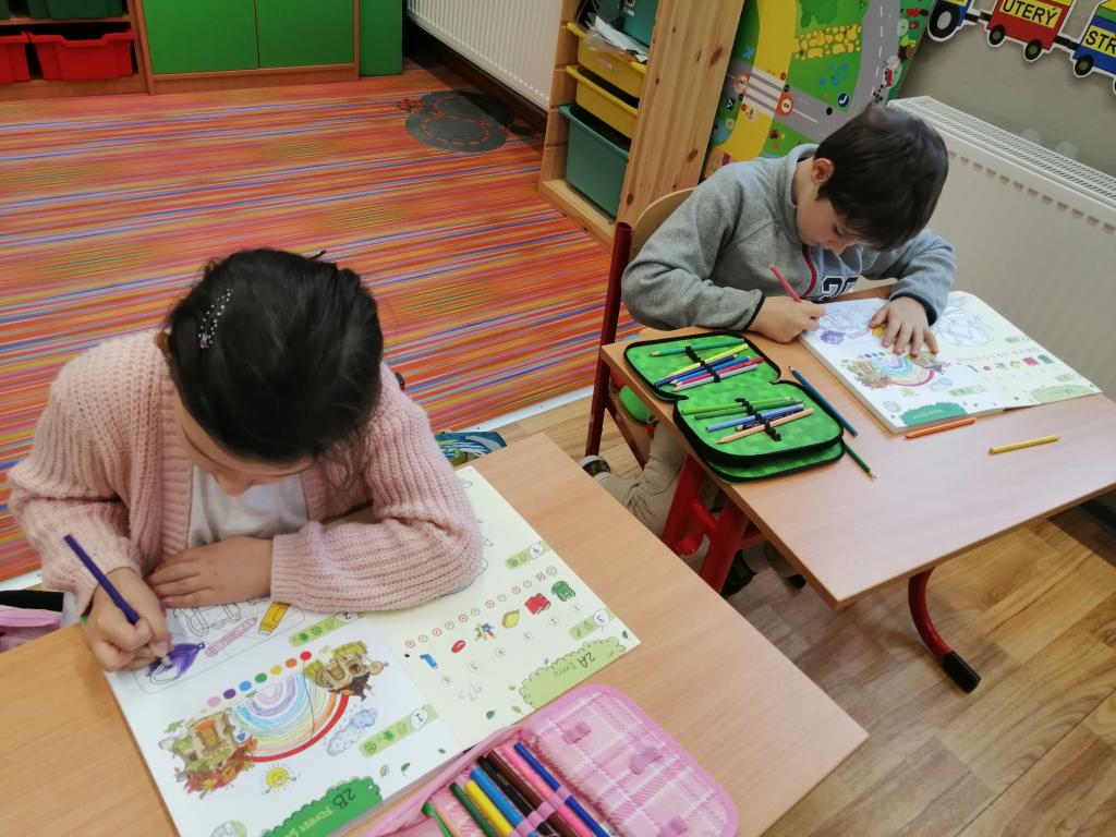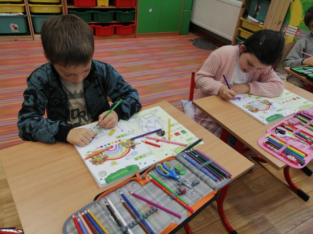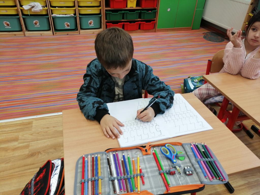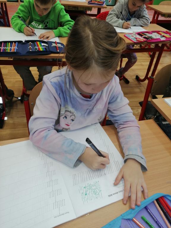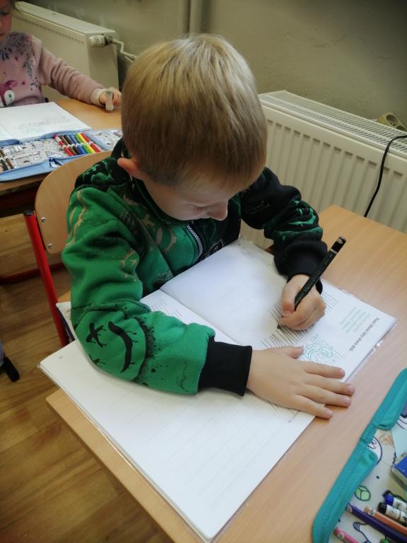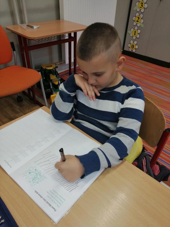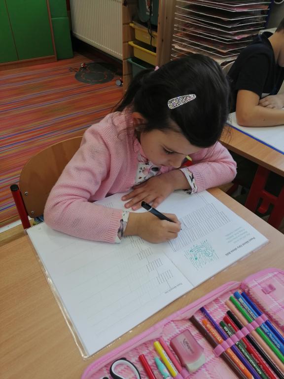 Nadále trénujeme čtení, psaní i počítání. V angličtině procvičujeme barvy. Ve všem nám pomáhá i interaktivní tabule.