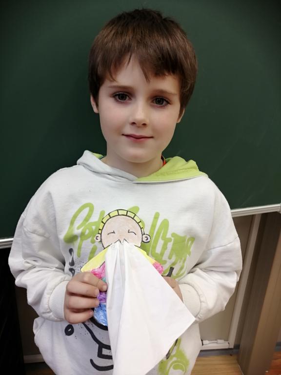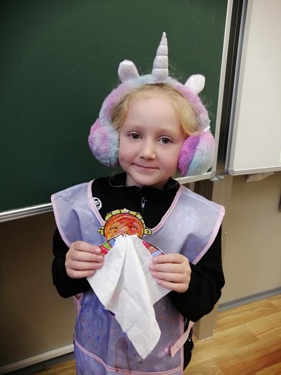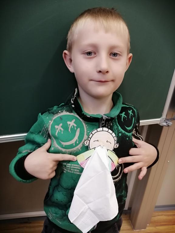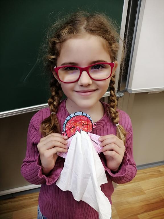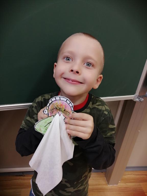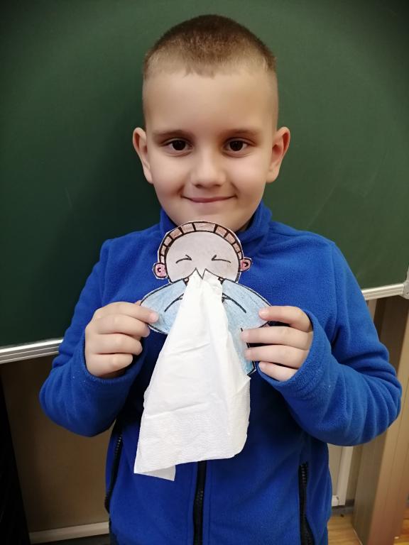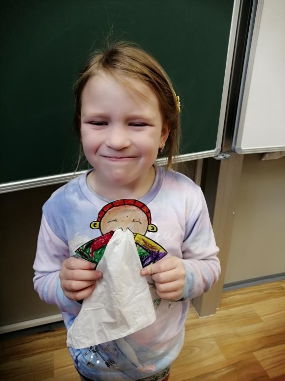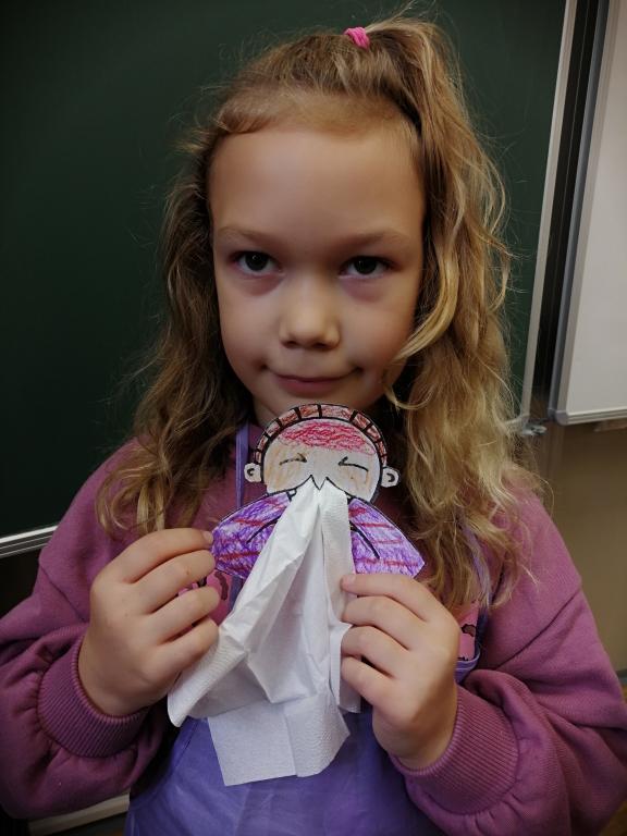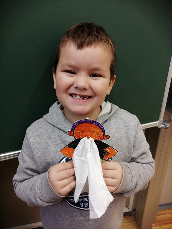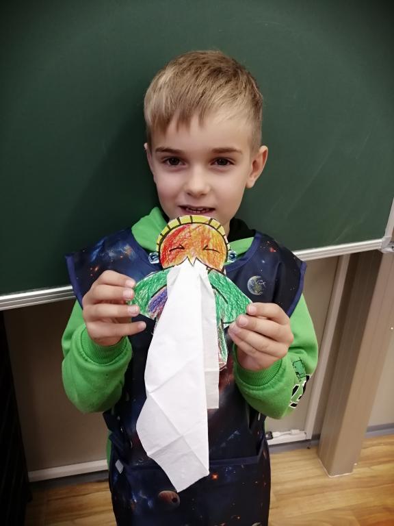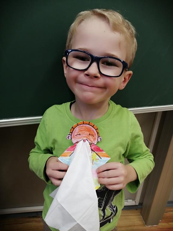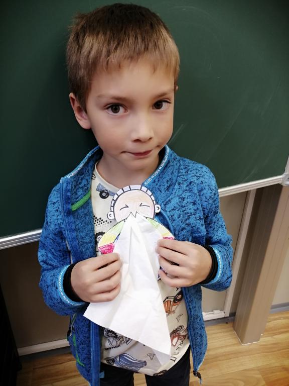 Na podzim nastává "sezóna" rýmy. Kdo je připraven, není překvapen. Povídali jsme si o zdravém životním stylu, prevenci, o správném kašlání, kýchání (zakrývat si pusu), ale i smrkání. Na závěr jsme si vyrobili i smrkajícího panáčka.