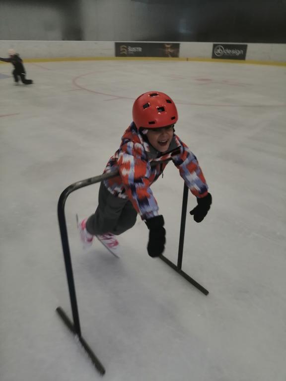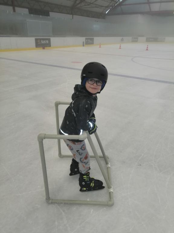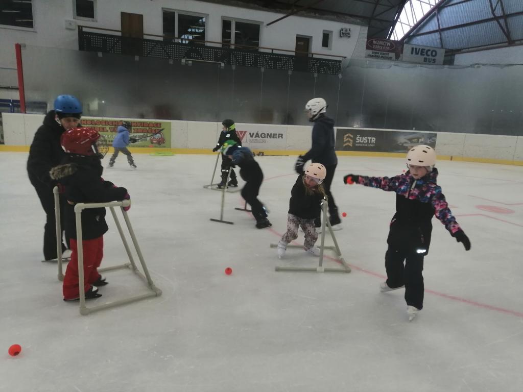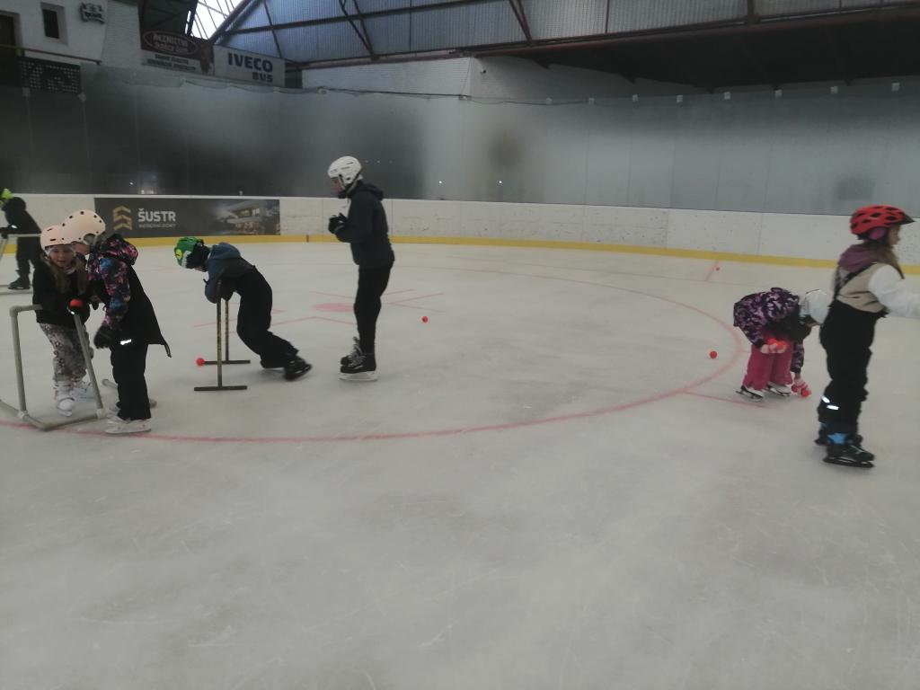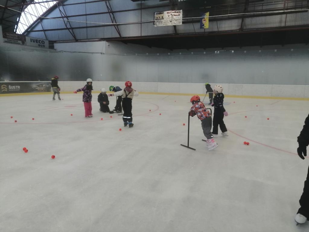 Sedmý týden byl pro nás opravdu výjimečný. Dočkali jsme se toho, na co jsme se už dlouho těšili. Bylo to naše první bruslení! Pro někoho to nebyla úplná premiéra postavit se na led v bruslích, ale ani byste nevěřili, jaký pokrok lze udělat za 45 minut. Do konce bruslení více jak polovina dětí už hrazdičku odložila a zkoušela jezdit bez ní! A i když jsme někteří padali na led jak zralé hrušky ze stromu, byla to sranda. Protože naučit se dobře padat je stejně důležité, jako naučit se bruslit. Už se těšíme na další hodinu.