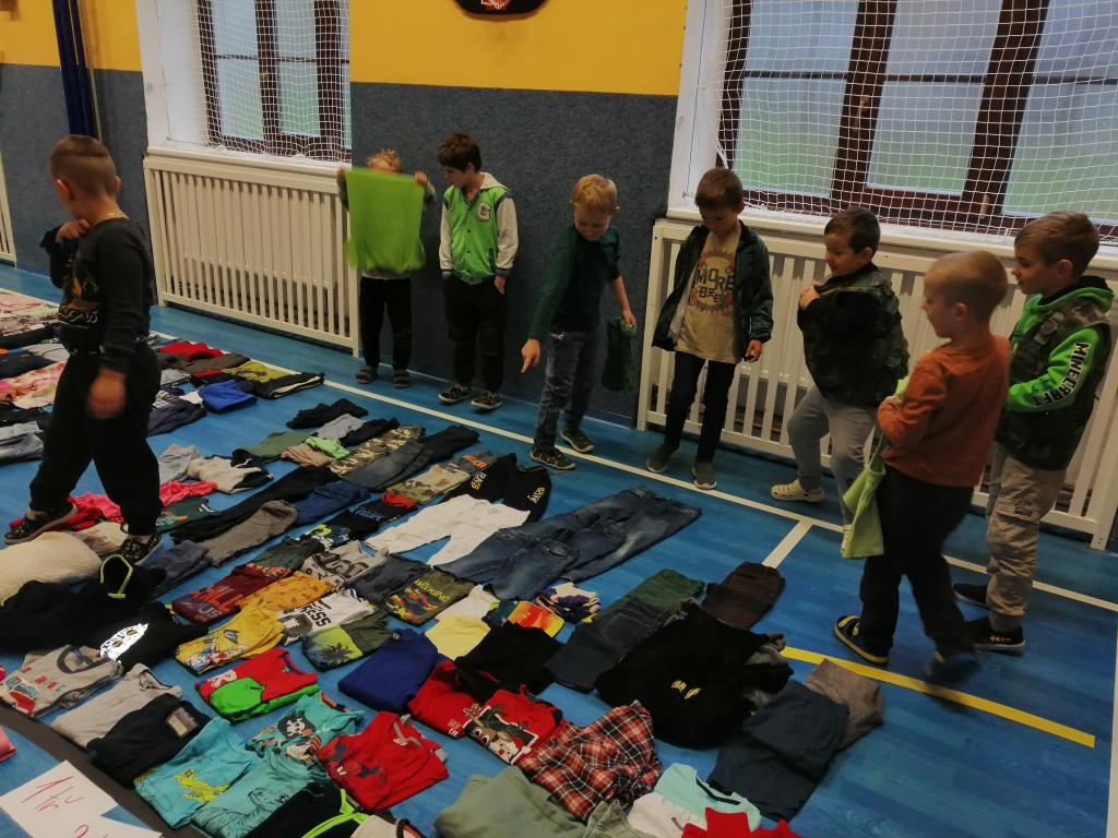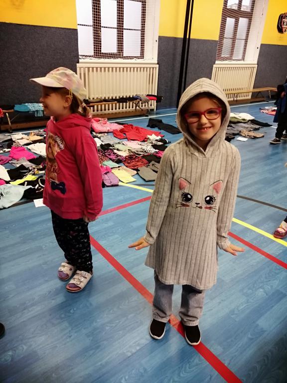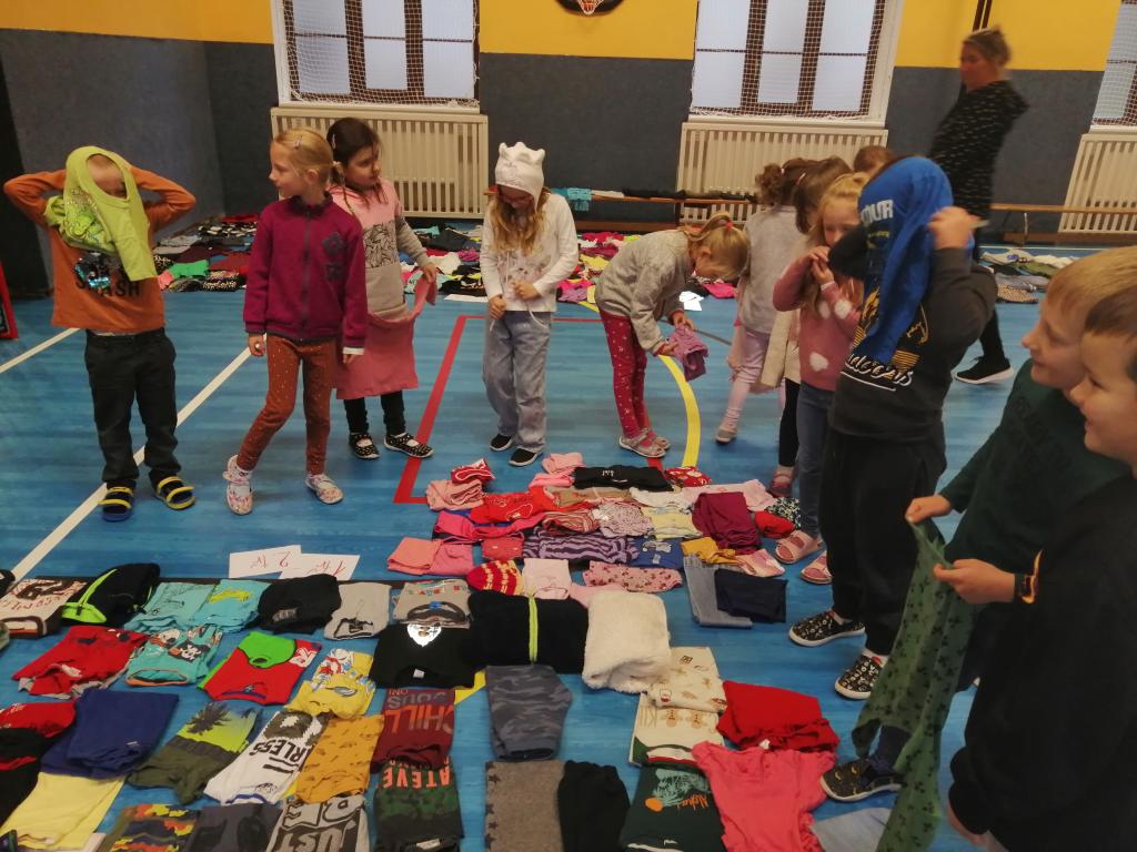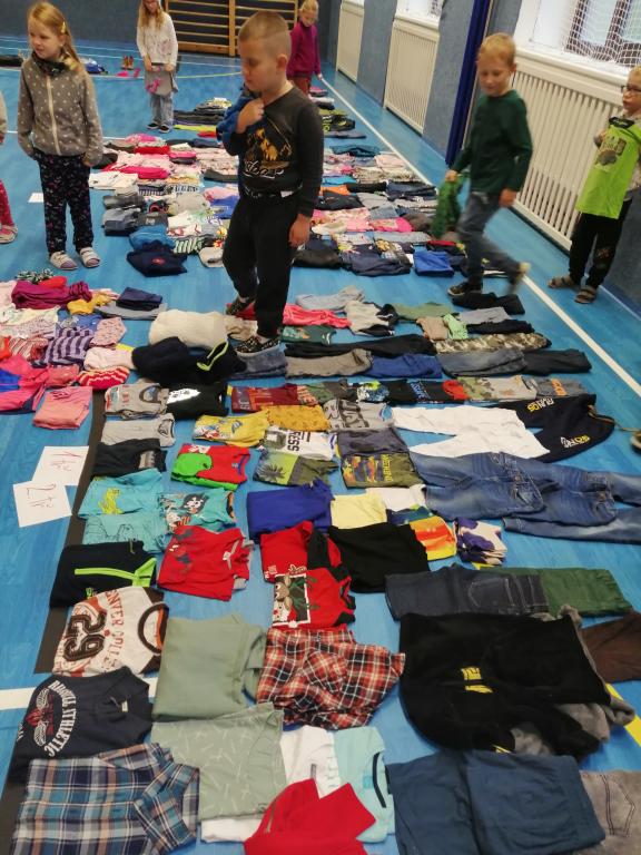 Na závěr týdne nás čekala naše první burza oblečení v tělocvičně, kde bylo rozdělo oblečení od starších spolužáků podle velikosti. Mohli jsme si zadarmo vyzkoušet a vybrat oblečení, které se nám libilo. Musím říct, že někteří mají v krvi talent na výběr svých outfitů.