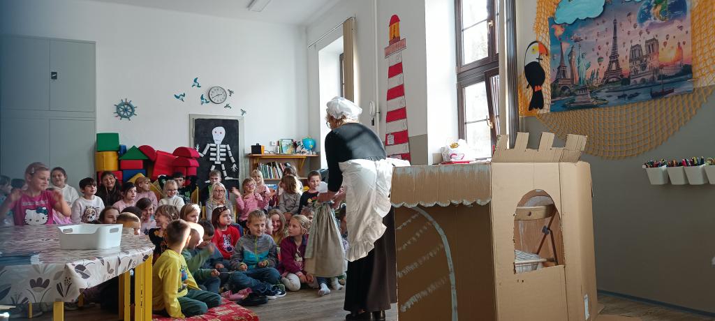 Ve školní družině jsme si užili divadelní představení ,,Jak kuchtička Bertička připálila vajíčka". Poté děti připravily královskou hostinu, kterou si s chutí snědy.