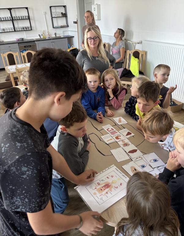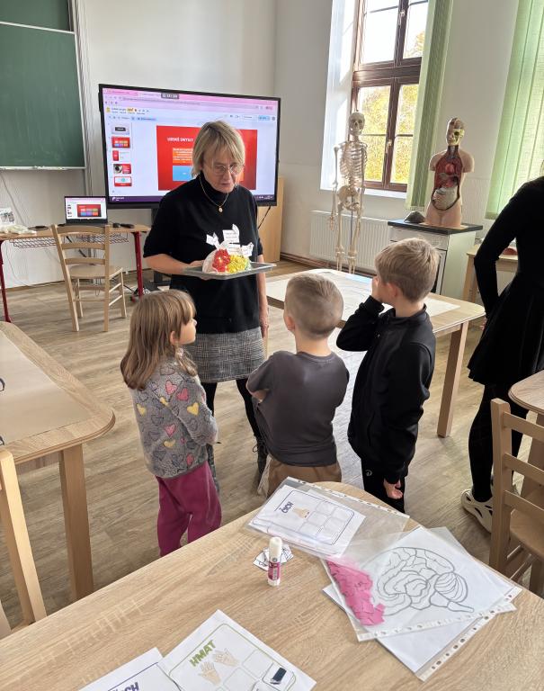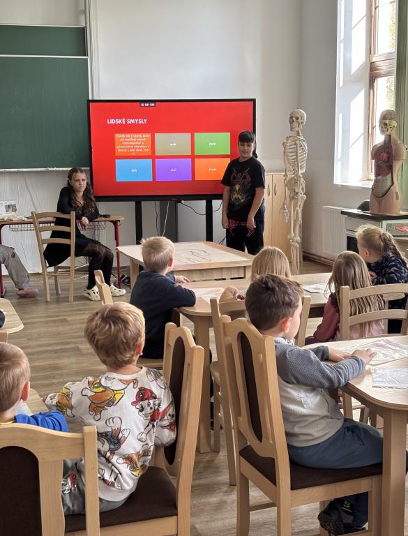 Naše třída vytvořila pro děti z mateřské školy Projekt o lidském těle. Předškoláčci museli sestavit lidské tělo z jednotlivých orgánů, vytvořit koláž o našich orgánech, naučit se písničku o lidském těle, atd. Nechyběla ani pohybová hra o našich bílých krvinkách. Všichni jsme si společný projekt užili.