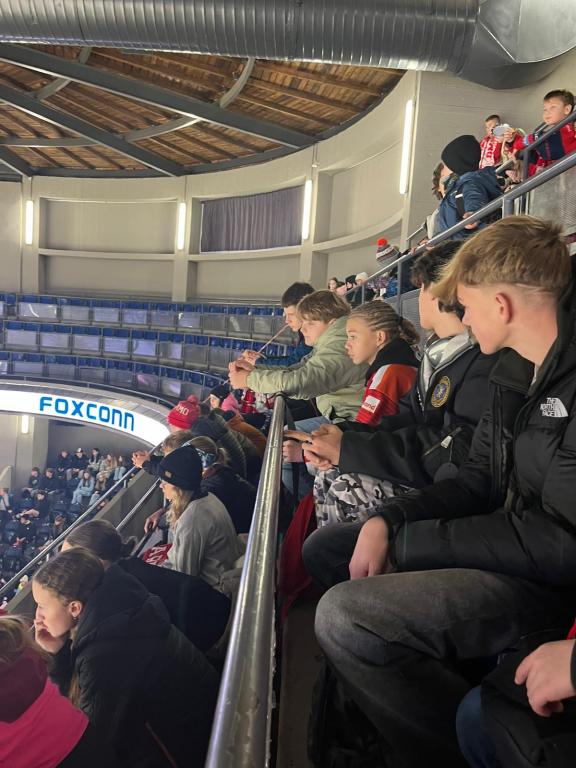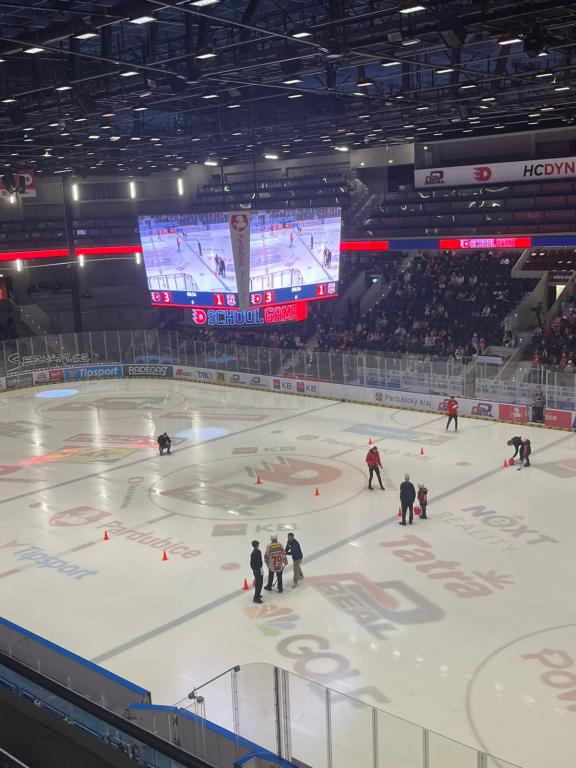 Ve středu 12. listopadu jsme měli tu čest zúčastnit se speciální akce SCHOOL GAME v pardubické enteria areně, kde jsme měli možnost naživo sledovat hokejové utkání. Cesta do Pardubic proběhla v pohodě a už od vstupu do arény nás obklopila ta pravá sportovní atmosféra. Již při rozbruslení a slavnostním zahájení bylo jasné, že to nebude jen obyčejný den. Abychom podpořili hráče a vytvořili co nejlepší atmosféru, tak jsme si přinesli fanouškovské předměty, oblíkli si dresy, mikiny, čepice, … a okamžitě se chopili role skalních fanoušků a s nadšením se zapojili do předzápasového programu. S prvním dopadem puku na led, začalo utkání plné napětí, rychlých akcí a skvělých hokejových momentů.